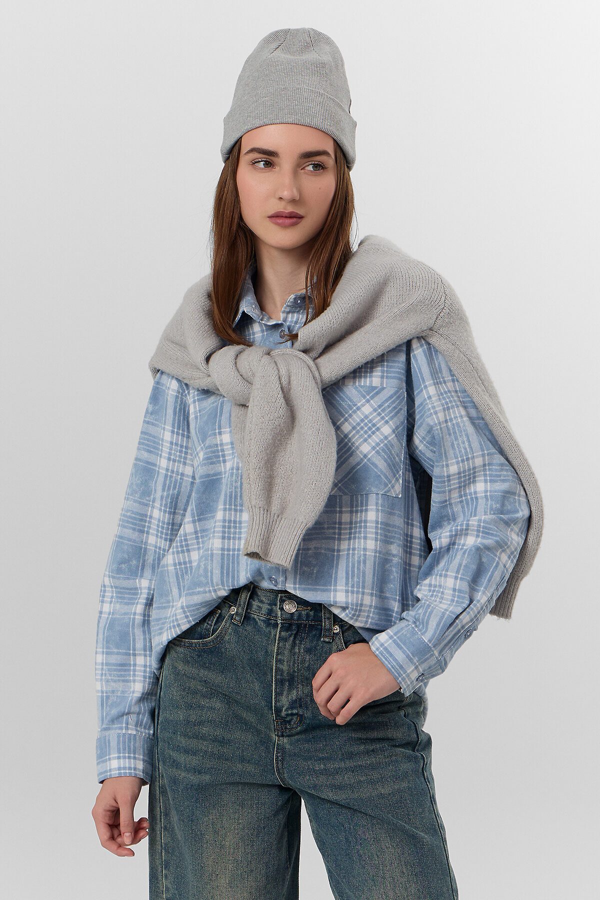Эта модель легко сочетается с джинсами, брюками современных фасонов и юбками, позволяя создавать стильные комбинации. Графичная клетка делает рубашку самостоятельным акцентом в луке, который органично дополнит как расслабленные, так и собранные образы.