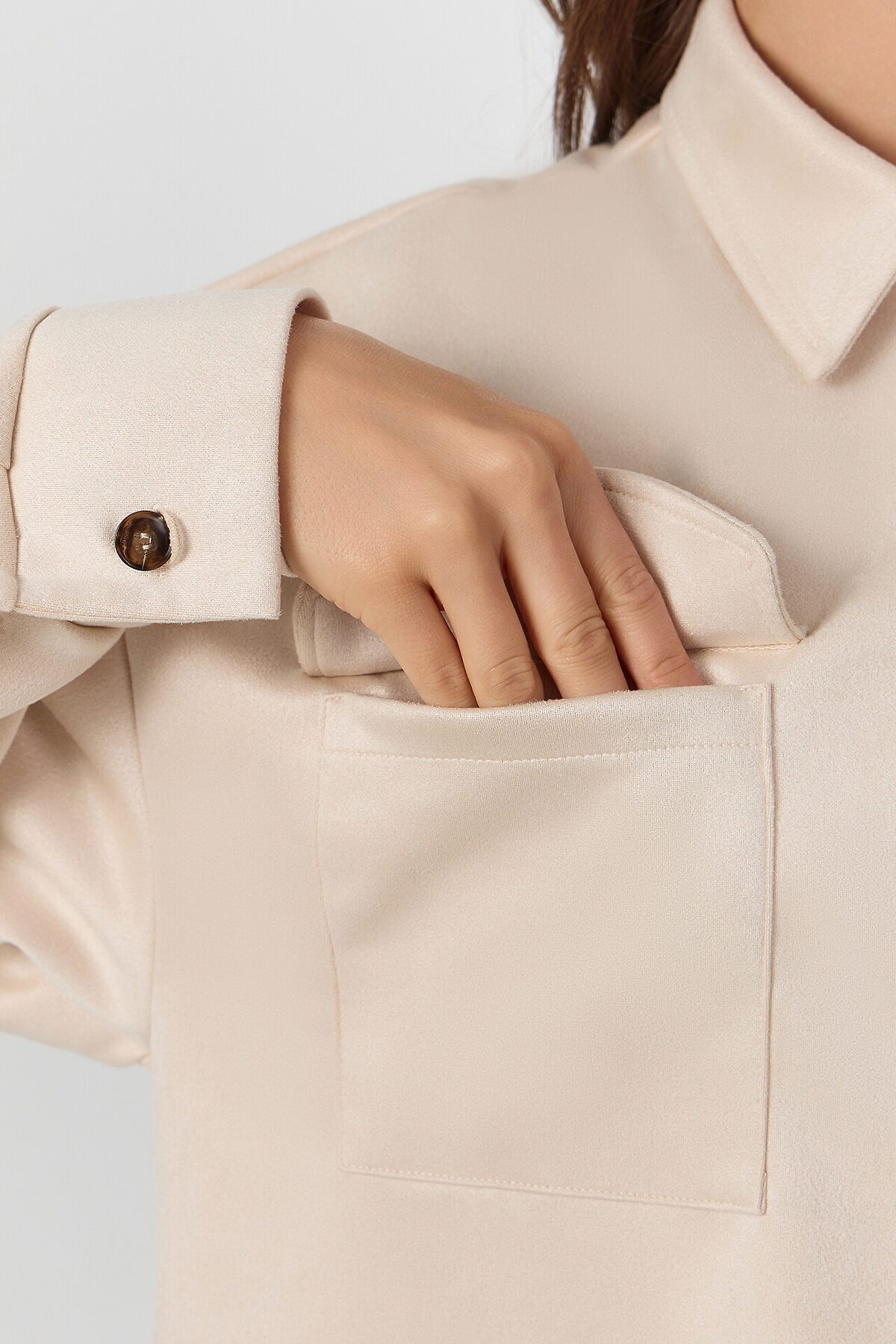 Материал с добавлением спандекса мягко тянется, не сковывая движений, а плотный полиэстер хорошо держит форму и не мнется в течение дня.
