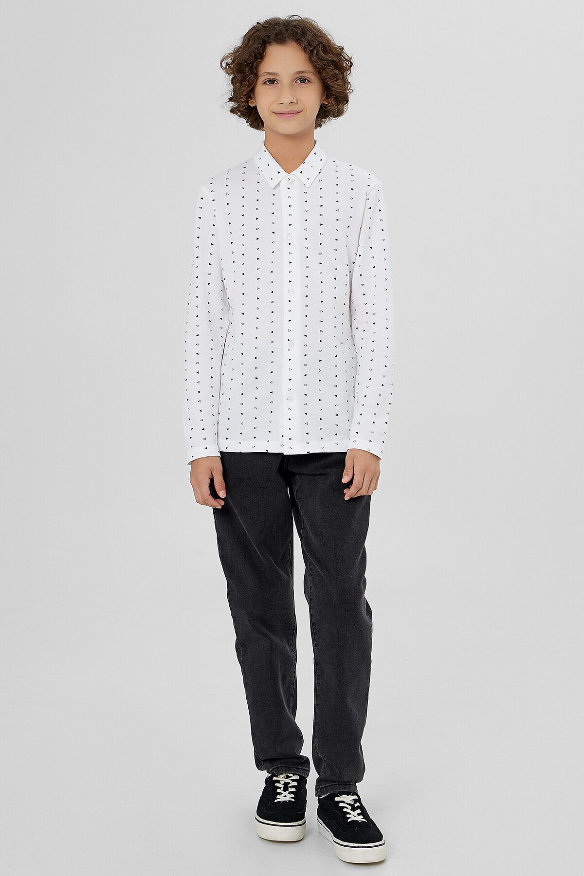 Сорочка прямого силуэта с воротником. Рукава длинные, втачные. По переду обработана застежка на пуговицы и петли. Низ изделия и рукавов обработаны на 2-х игольной плоскошовной машине швом в подгибку.