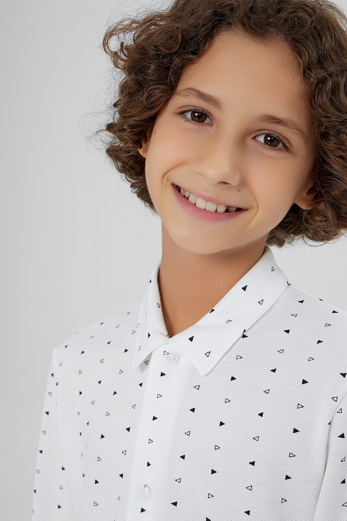 Сорочка прямого силуэта с воротником. Рукава длинные, втачные. По переду обработана застежка на пуговицы и петли. Низ изделия и рукавов обработаны на 2-х игольной плоскошовной машине швом в подгибку.