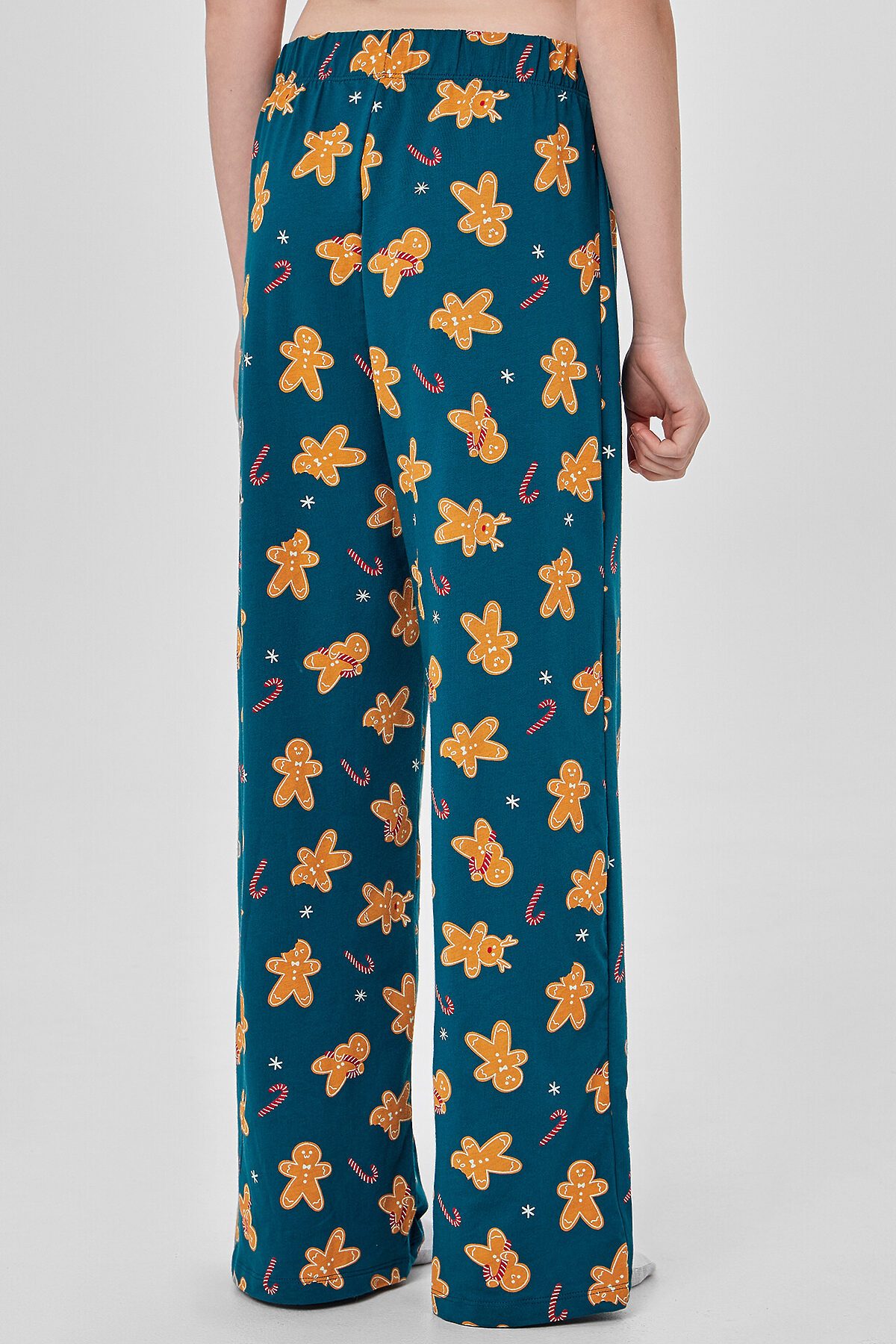 Новогодний принт создает праздничное настроение, а универсальный зеленый цвет легко сочетается с любой домашней одеждой. Эти брюки отлично подойдут для отдыха, подготовки к праздникам или уютных семейных вечеров.