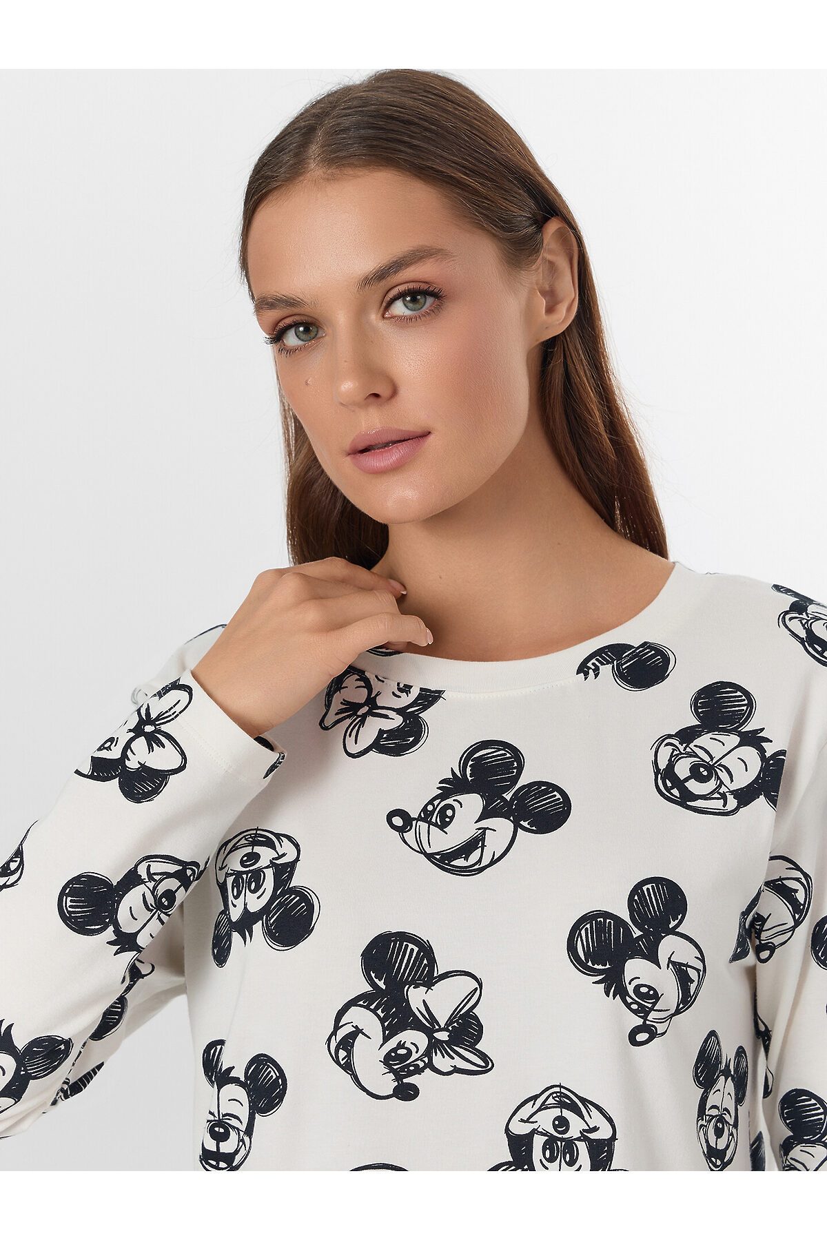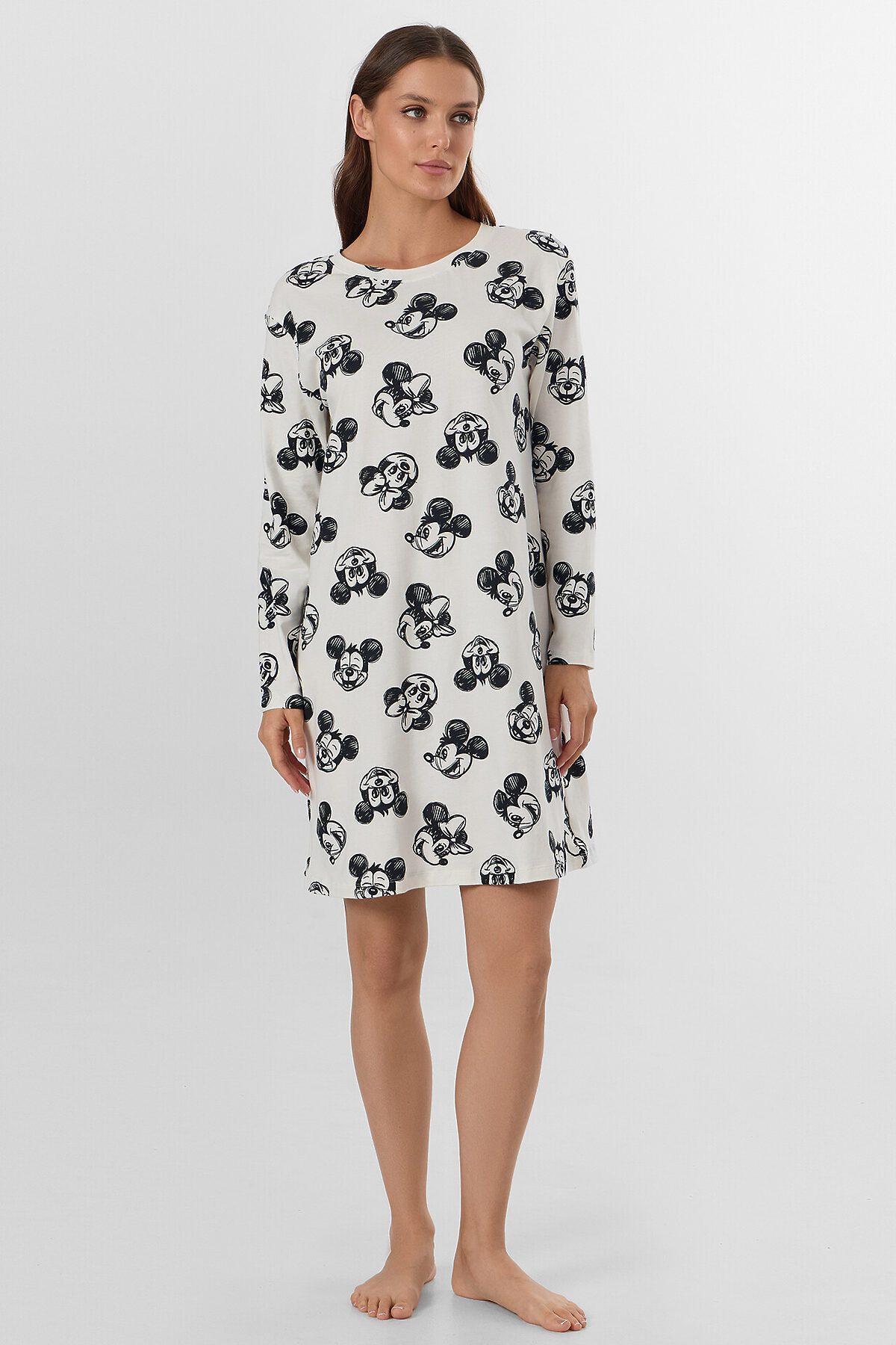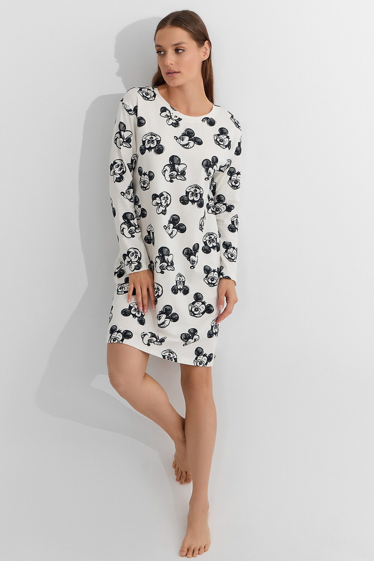 Платье женское свободного силуэта. Горловина круглой формы с обтачкой из основного полотна. Рукав втачной длинный, линия плеча немного спущена, рукав обработан вподгибку. Низ застрочен швом в подгибку.