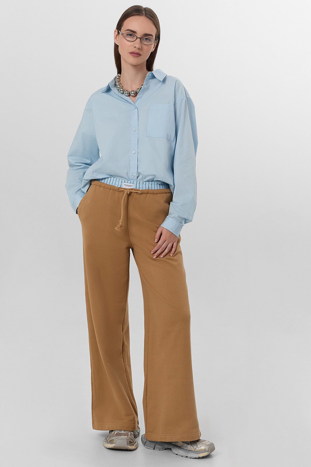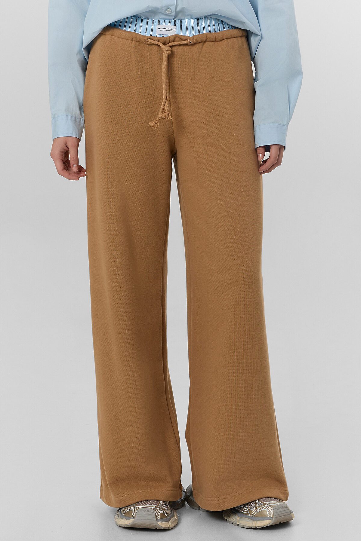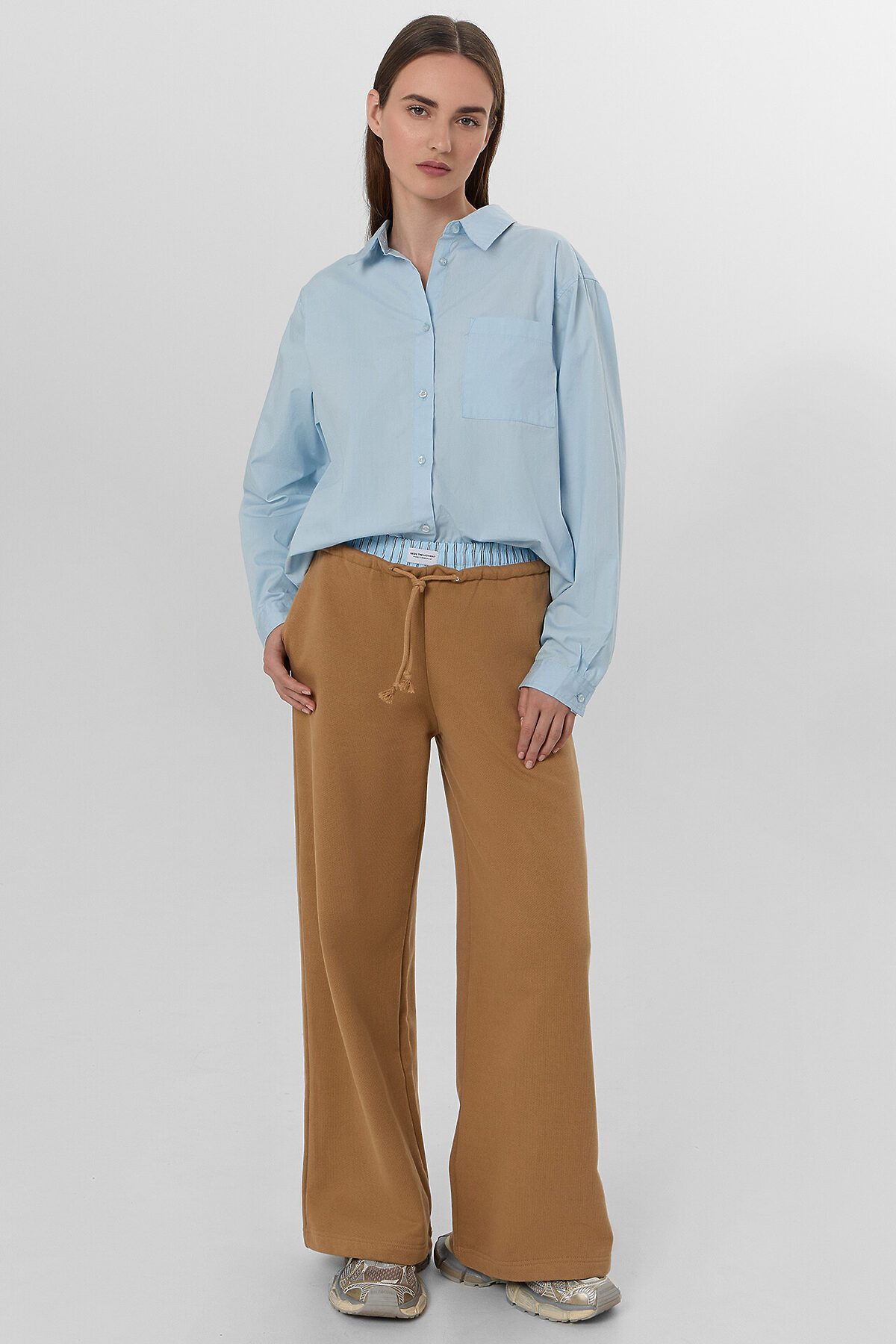 Пояс брюк оформлен практичным шнурком с аккуратными узелками для регулировки посадки. В боковых швах расположены удобные карманы с мягкой подкладкой из кулирки. Натуральный хлопок мягко заботится о вашей коже, обеспечивая воздухообмен и сохраняя комфорт на протяжении всего дня. Эти брюки станут гармоничным дополнением как для повседневных образов с футболками и свитшотами, так и для более элегантных луков.