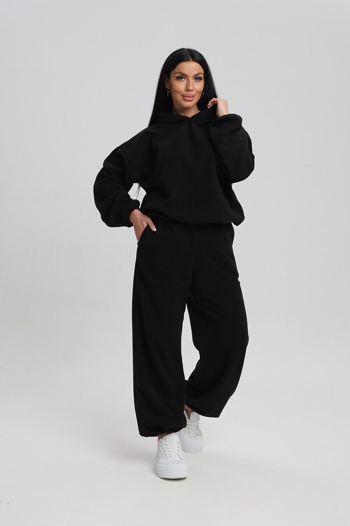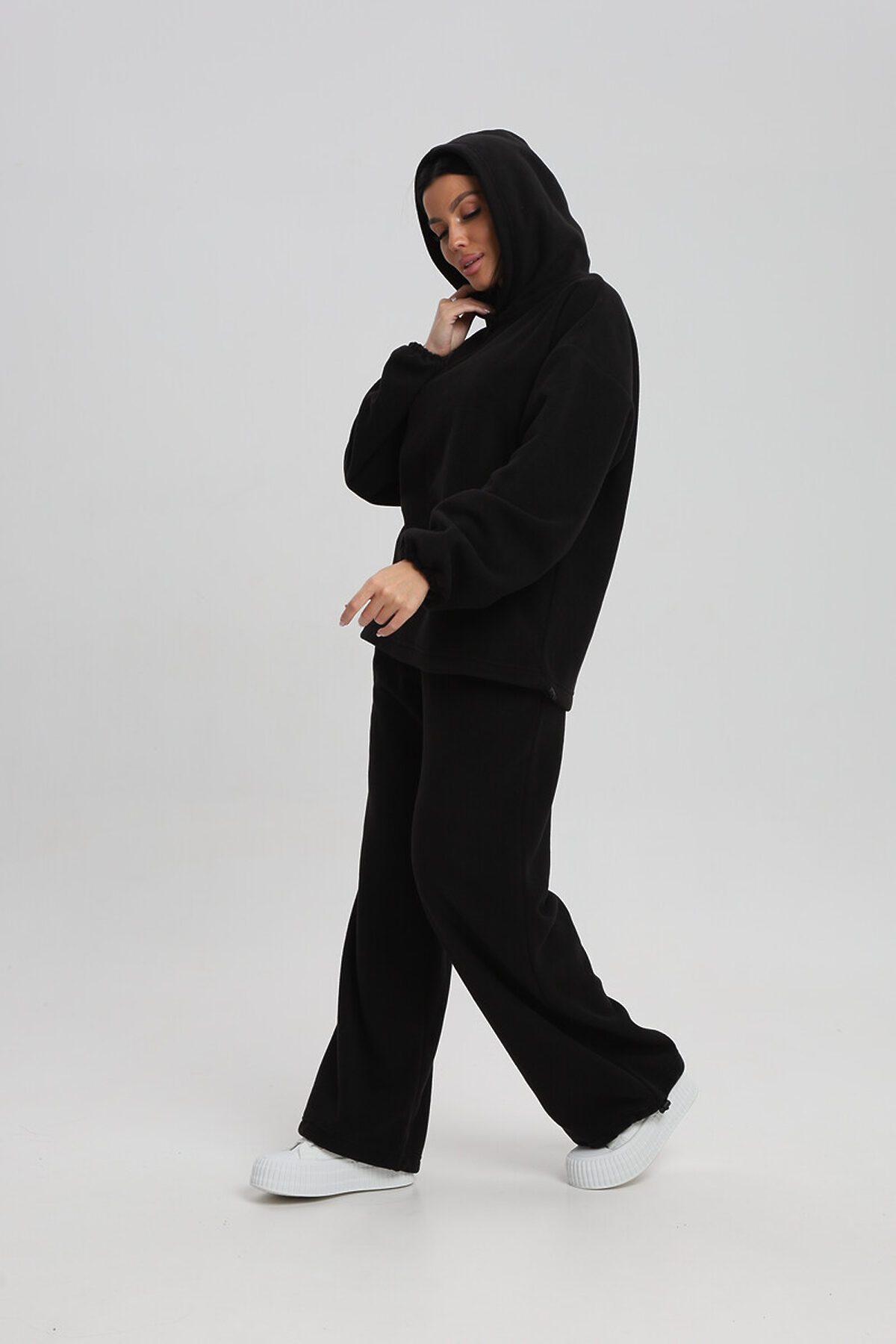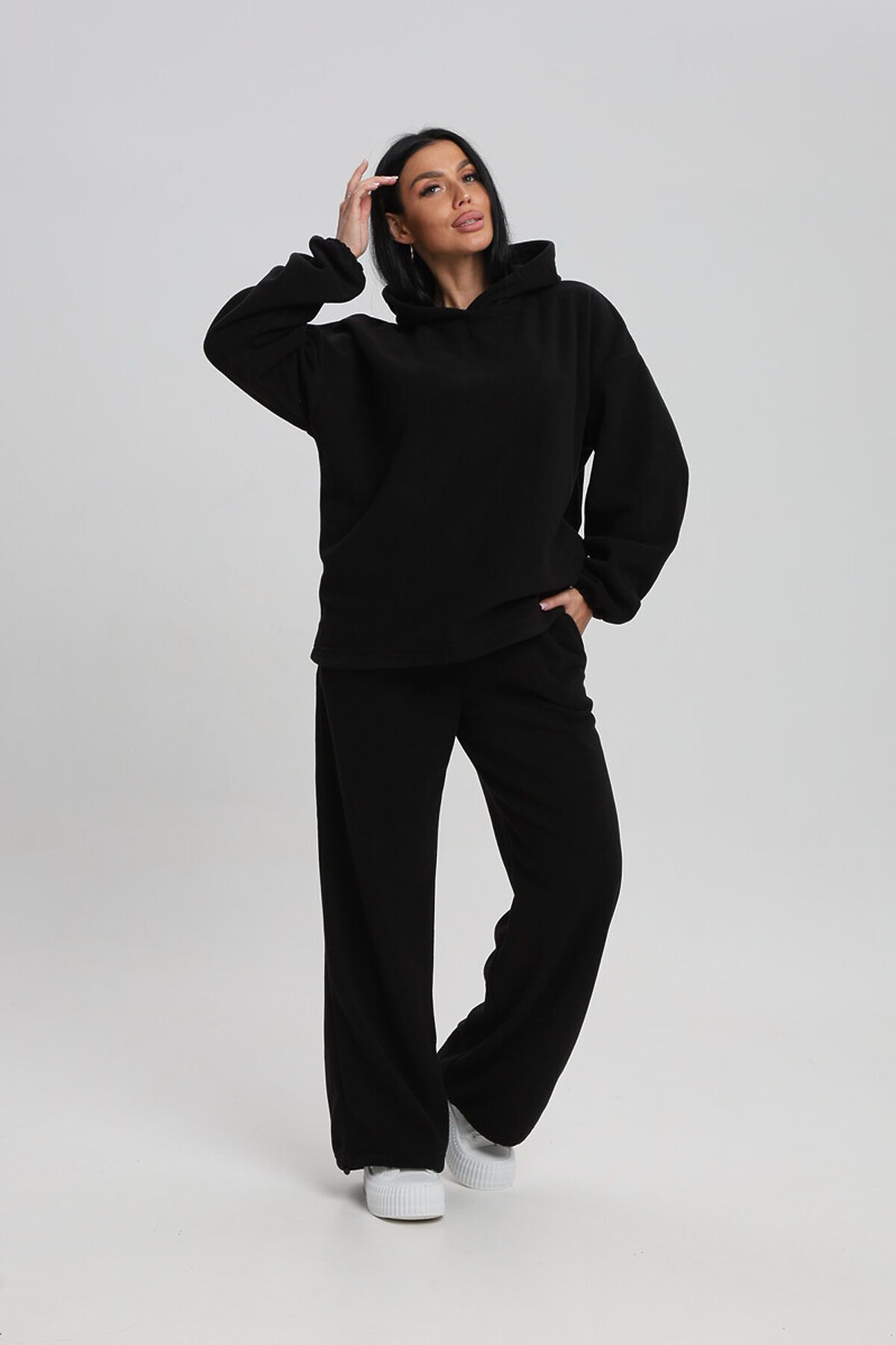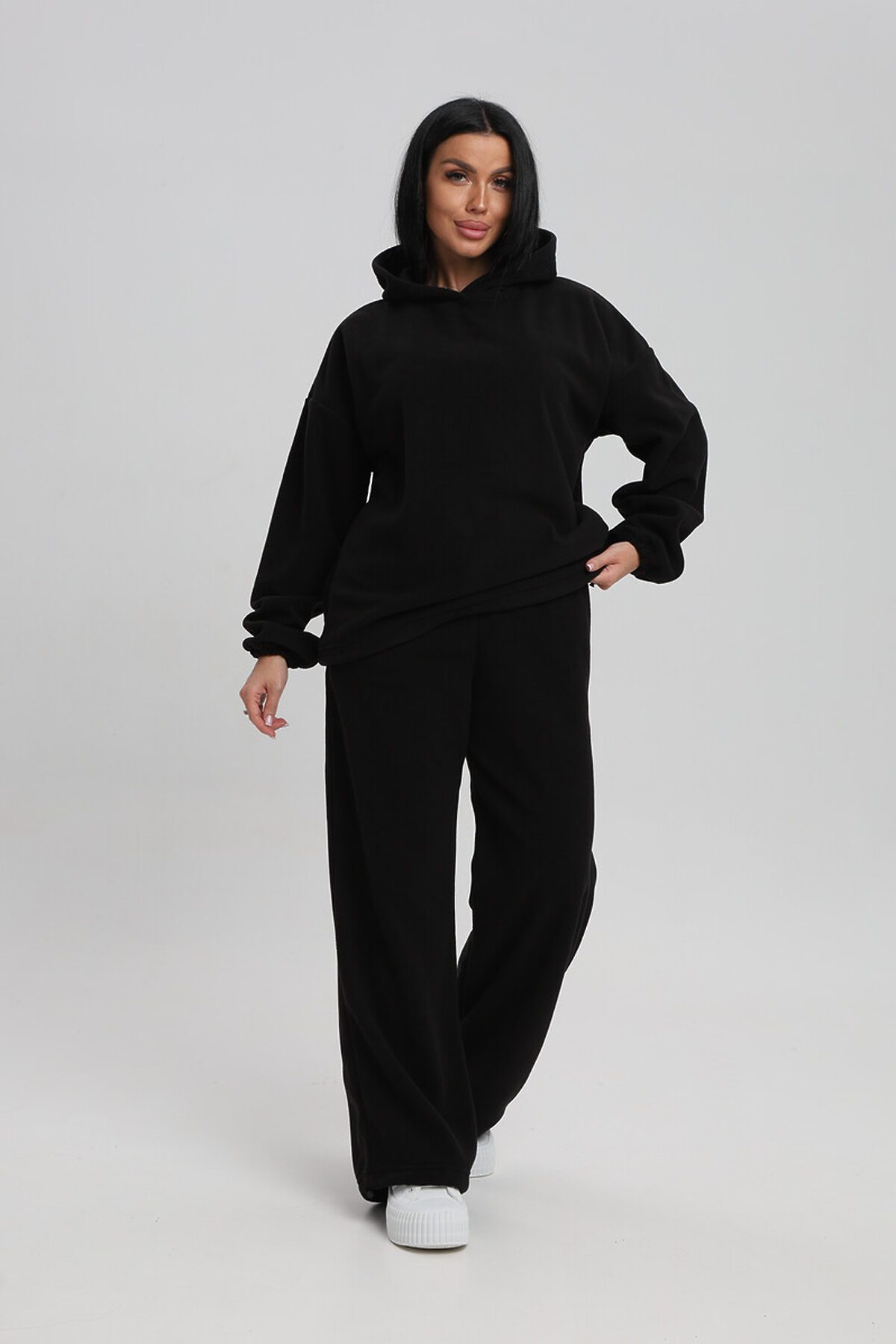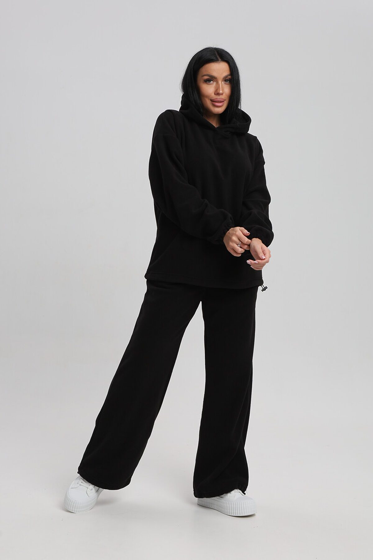 Этот костюм идеально впишется в ваш гардероб для активного отдыха и повседневных прогулок. Все элементы продукта выполнены из 100% полиэстера, что обеспечивает легкость и комфорт в носке. Материал без утеплителя и подкладки позволяет чувствовать себя свободно даже при длительном ношении. Изготовленный из флиса, он мягок на ощупь и приятен к телу, а капюшон добавляет дополнительную защиту от ветра. Модель без застежки легко надевается и снимается, что особенно удобно для будущих мам. Быстросохнущая ткань подходит для активностей на свежем воздухе. Высоко оценимая эластичность материала дарит свободу движений, сохраняя форму изделия после многочисленных стирок. Свободный крой делает его комфортным варианта для высоких женщин или обладательниц больших размеров. Никакие узоры здесь не отвлекают внимание от основного вашего личного стиля и образа жизни. Худи женское оверсайз с капюшоном и мягкой резинкой на рукавах, капюшон с подкладкой из хлопка, по низу худи шляпная резинка с фиксатором, брюки женские с высокой посадкой на резинке прямого кроя с прорезными карманами по низу брюк шляпная резинка с фиксатором.