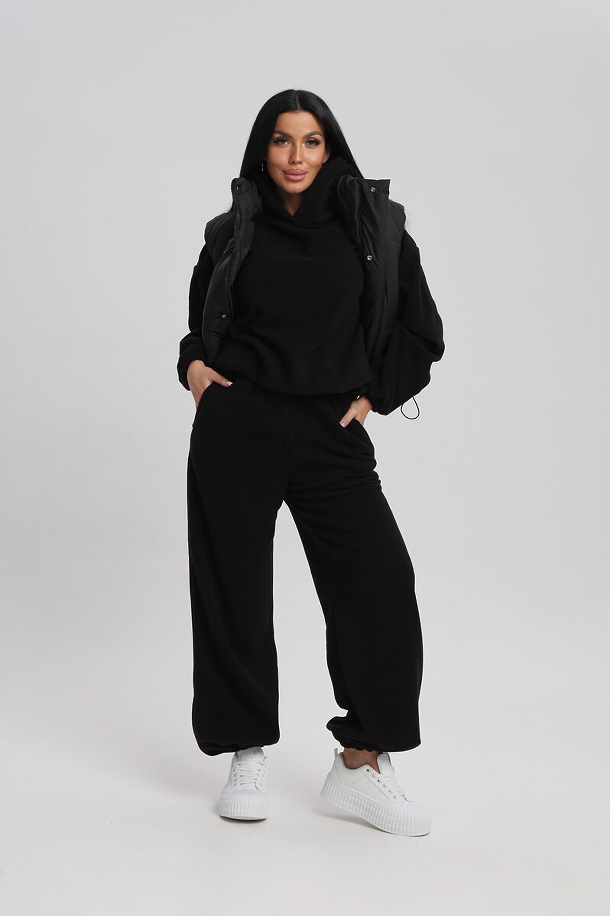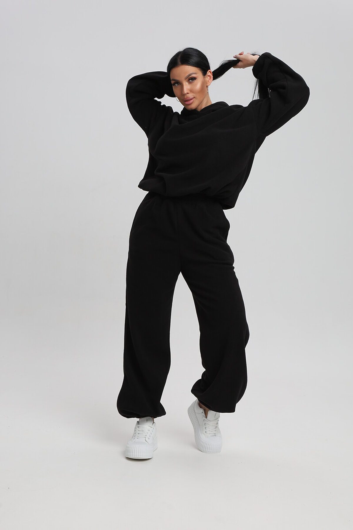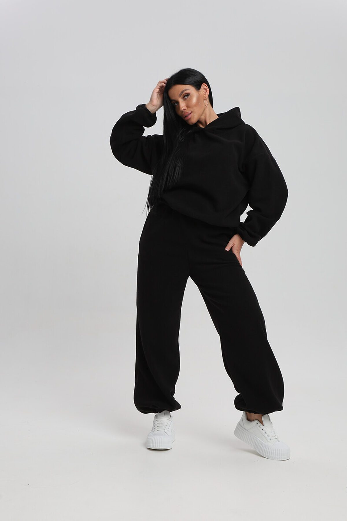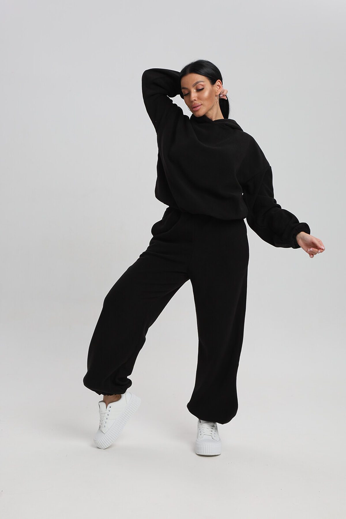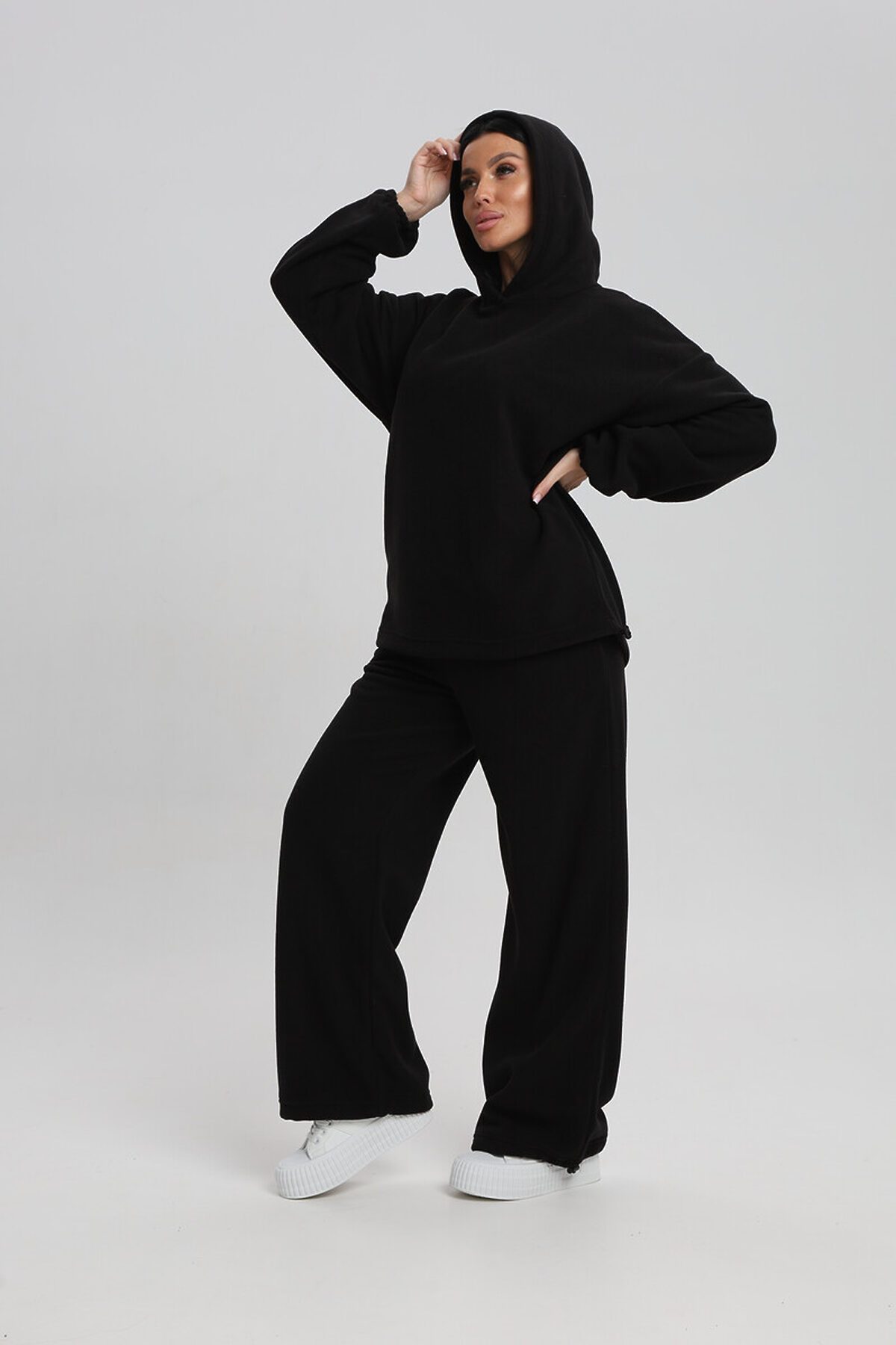 Этот костюм идеально впишется в ваш гардероб для активного отдыха и повседневных прогулок. Все элементы продукта выполнены из 100% полиэстера, что обеспечивает легкость и комфорт в носке. Материал без утеплителя и подкладки позволяет чувствовать себя свободно даже при длительном ношении. Изготовленный из флиса, он мягок на ощупь и приятен к телу, а капюшон добавляет дополнительную защиту от ветра. Модель без застежки легко надевается и снимается, что особенно удобно для будущих мам. Быстросохнущая ткань подходит для активностей на свежем воздухе. Высоко оценимая эластичность материала дарит свободу движений, сохраняя форму изделия после многочисленных стирок. Свободный крой делает его комфортным варианта для высоких женщин или обладательниц больших размеров. Никакие узоры здесь не отвлекают внимание от основного вашего личного стиля и образа жизни. Худи женское оверсайз с капюшоном и мягкой резинкой на рукавах, капюшон с подкладкой из хлопка, по низу худи шляпная резинка с фиксатором, брюки женские с высокой посадкой на резинке прямого кроя с прорезными карманами по низу брюк шляпная резинка с фиксатором.