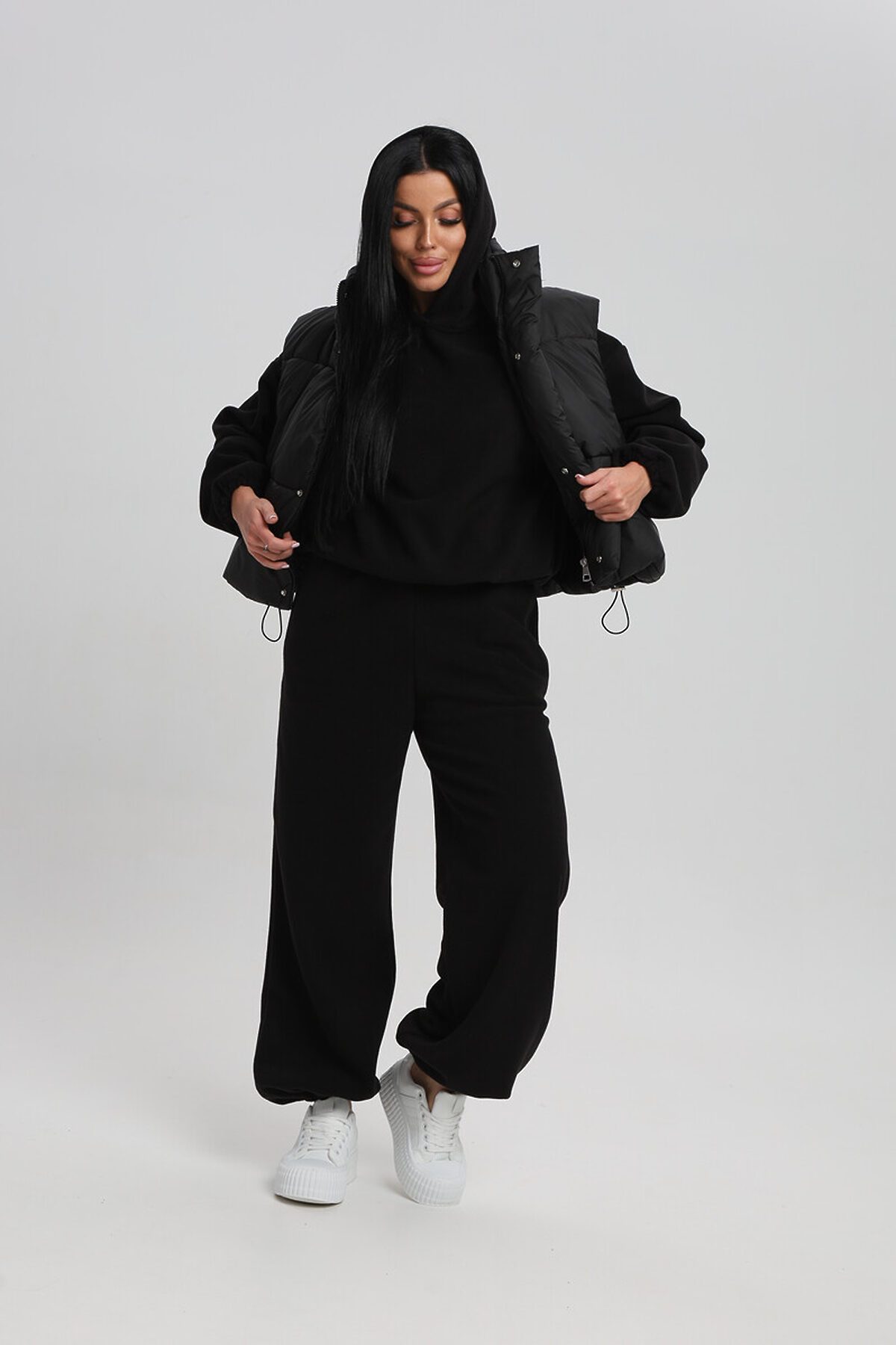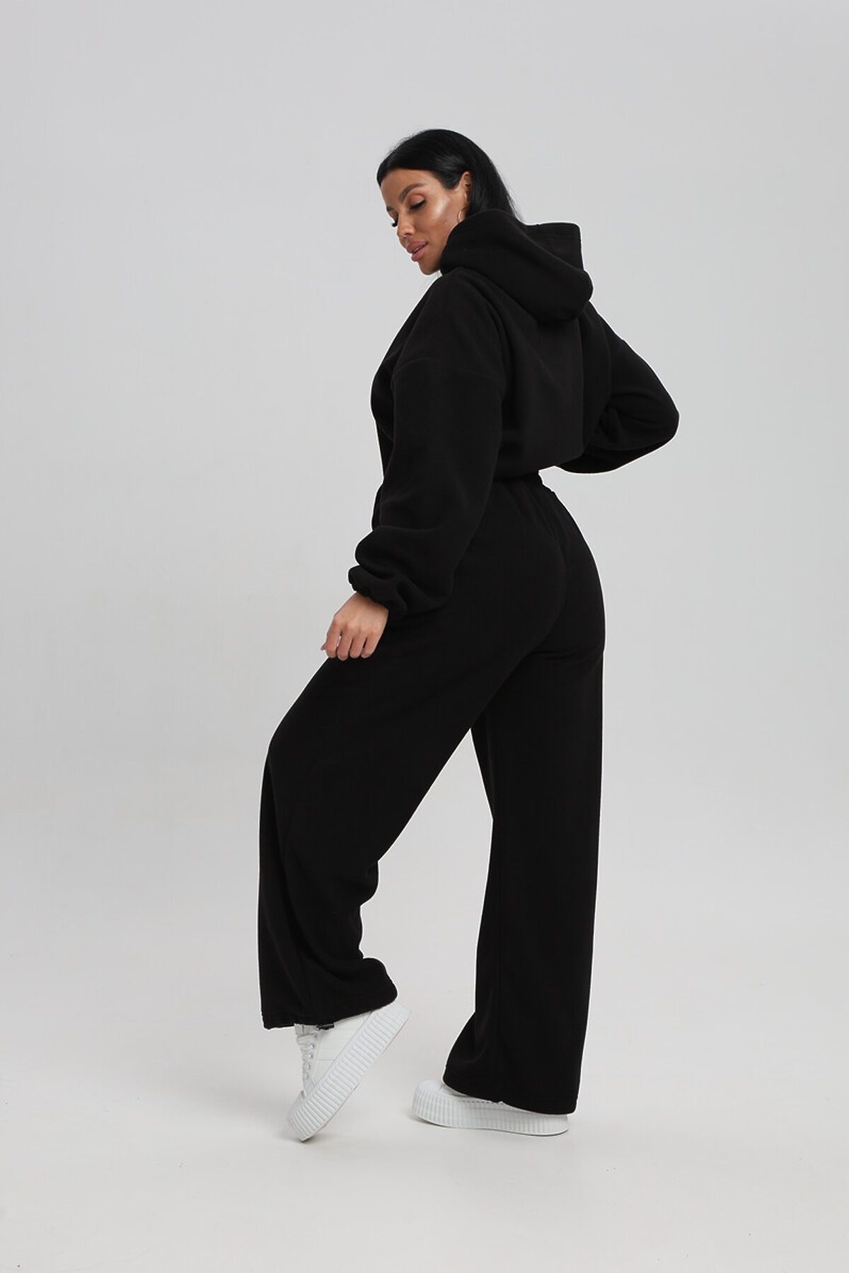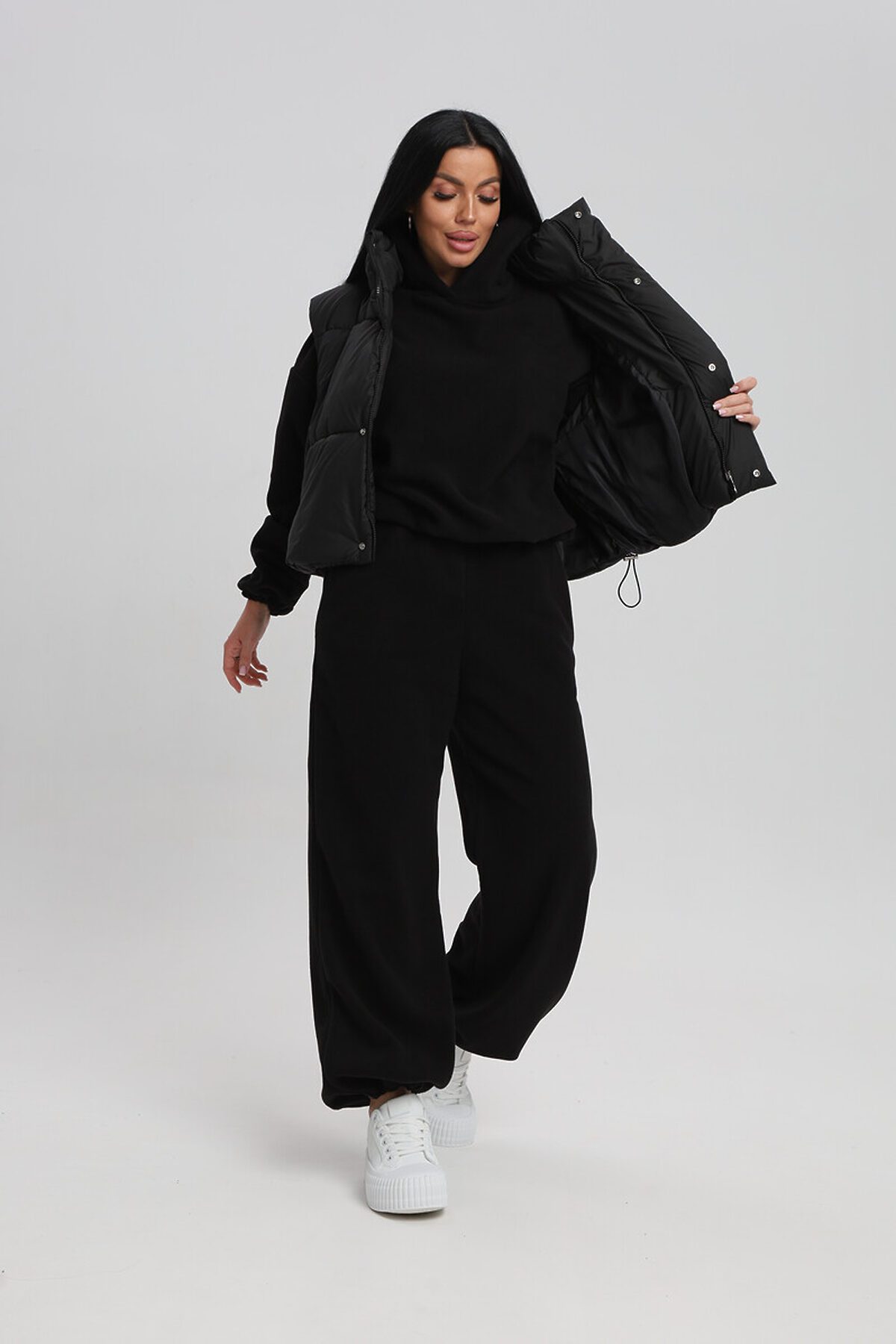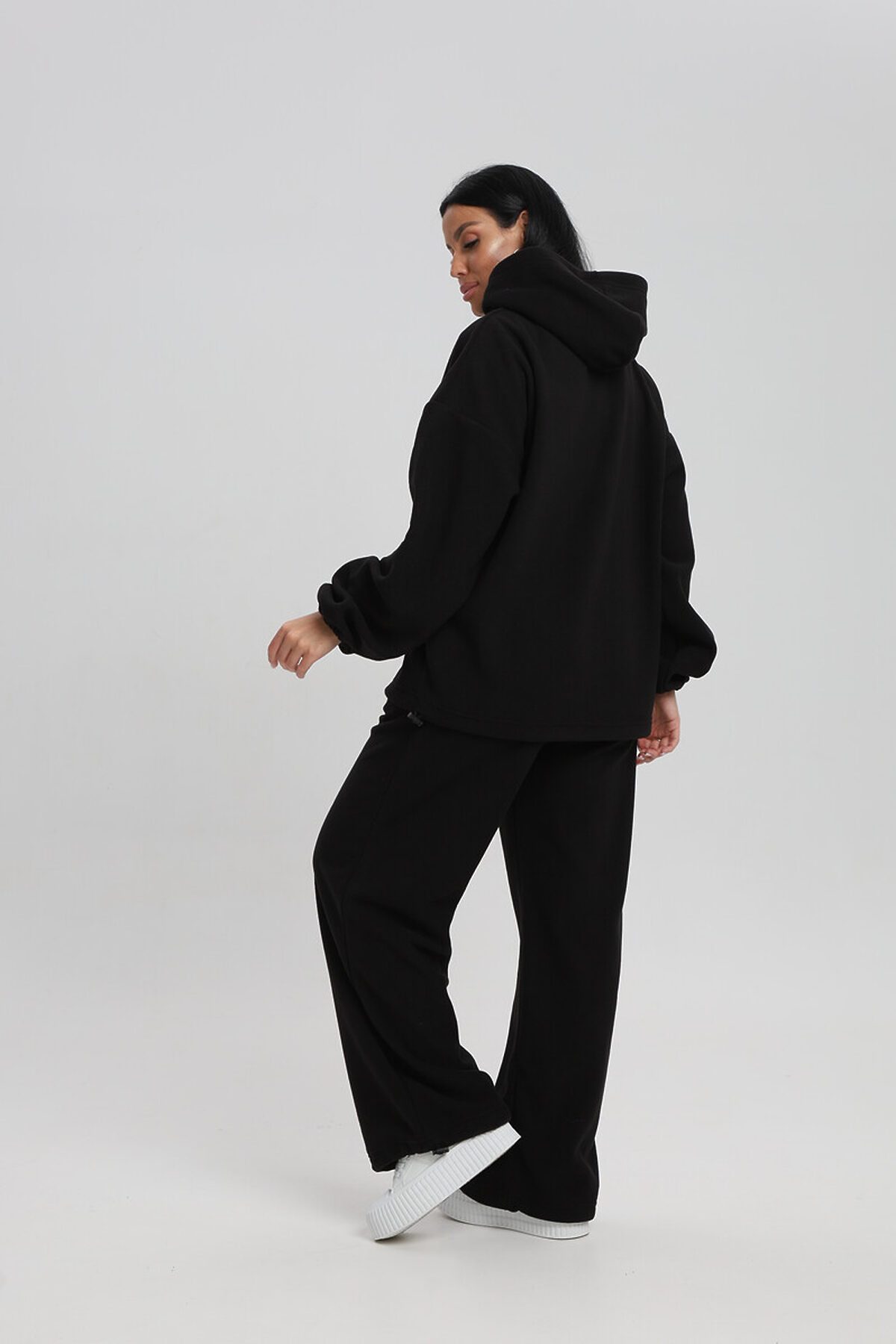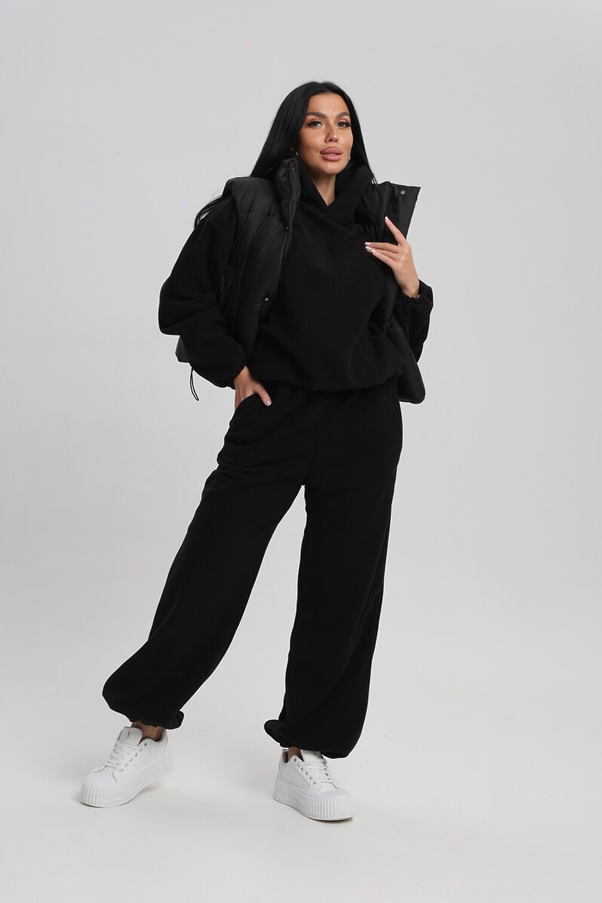 Этот костюм идеально впишется в ваш гардероб для активного отдыха и повседневных прогулок. Все элементы продукта выполнены из 100% полиэстера, что обеспечивает легкость и комфорт в носке. Материал без утеплителя и подкладки позволяет чувствовать себя свободно даже при длительном ношении. Изготовленный из флиса, он мягок на ощупь и приятен к телу, а капюшон добавляет дополнительную защиту от ветра. Модель без застежки легко надевается и снимается, что особенно удобно для будущих мам. Быстросохнущая ткань подходит для активностей на свежем воздухе. Высоко оценимая эластичность материала дарит свободу движений, сохраняя форму изделия после многочисленных стирок. Свободный крой делает его комфортным варианта для высоких женщин или обладательниц больших размеров. Никакие узоры здесь не отвлекают внимание от основного вашего личного стиля и образа жизни. Худи женское оверсайз с капюшоном и мягкой резинкой на рукавах, капюшон с подкладкой из хлопка, по низу худи шляпная резинка с фиксатором, брюки женские с высокой посадкой на резинке прямого кроя с прорезными карманами по низу брюк шляпная резинка с фиксатором.