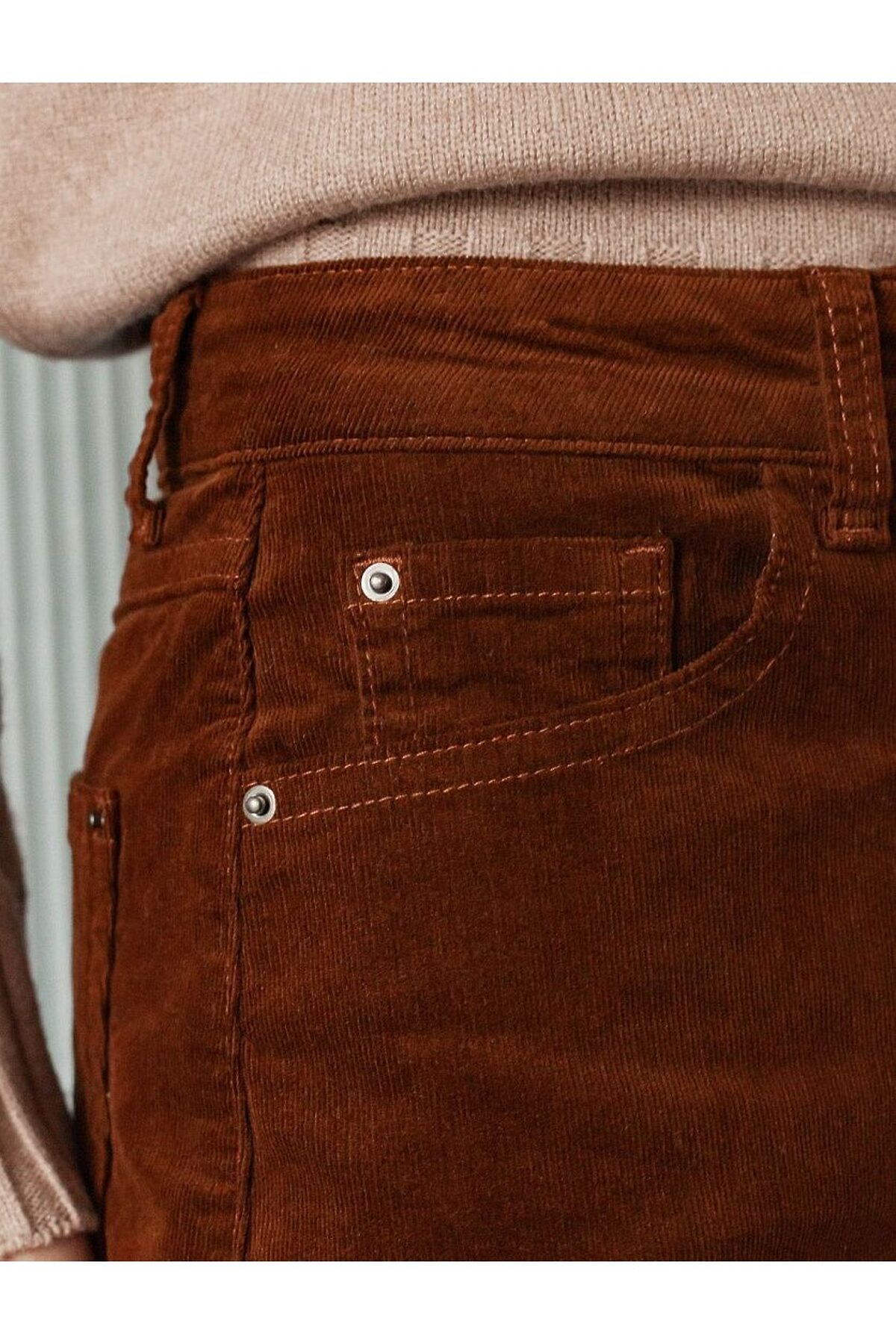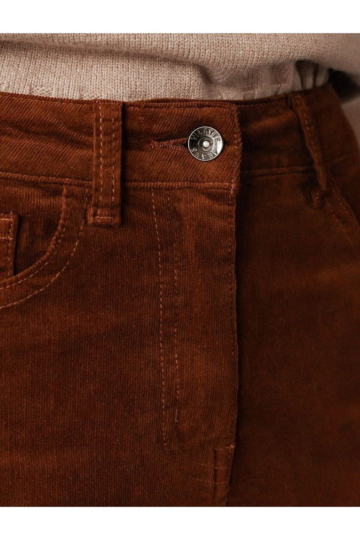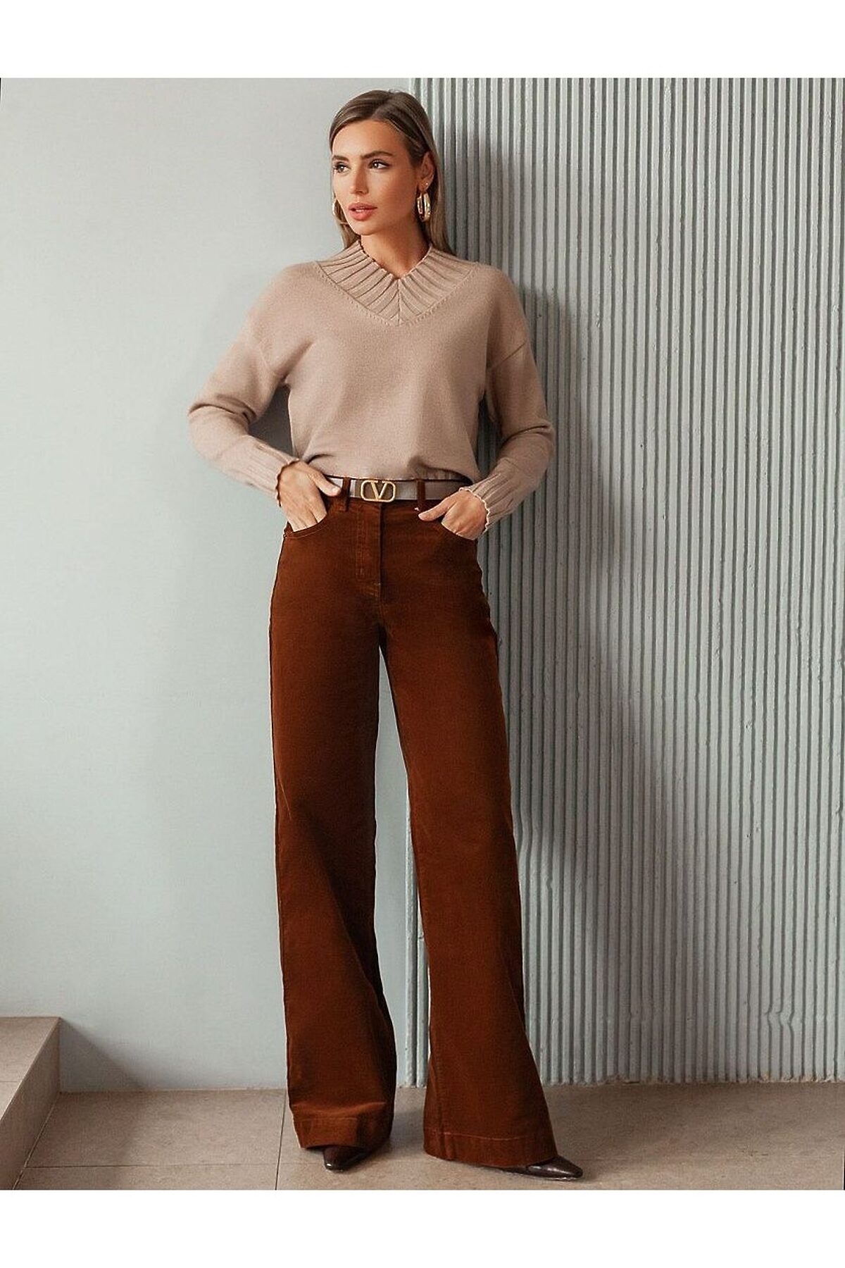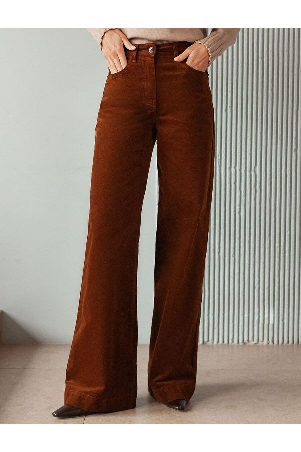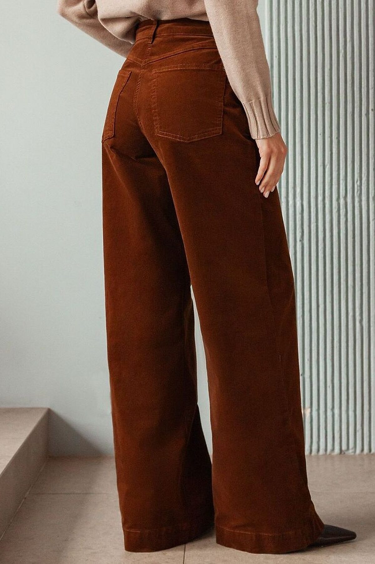 Брюки свободного кроя «трубы» выполнены из мягкого хлопкового микро-вельвета с добавлением эластана. Изделие комфортно садится по фигуре и не сковывает движения. Модель с пятью карманами, как у джинсов дополнена высококачественной фурнитурой с фирменным логотипом бренда. Идеально впишутся в повседневный образ, со свитером крупной вязки, курткой-косухой, ботинками на грубой подошве, челси и казаками.