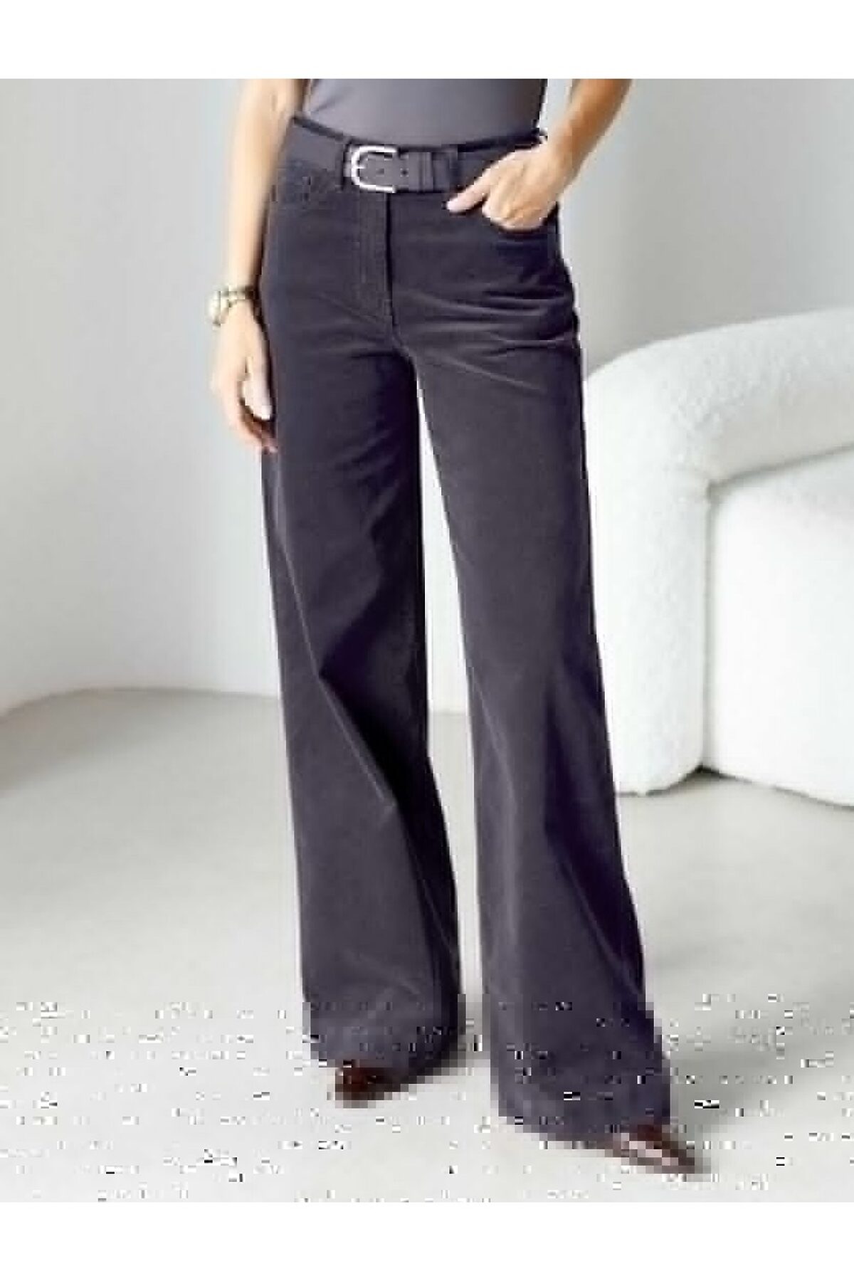 Брюки свободного кроя «трубы» выполнены из мягкого хлопкового микро-вельвета с добавлением эластана. Изделие комфортно садится по фигуре и не сковывает движения. Модель с пятью карманами, как у джинсов дополнена высококачественной фурнитурой с фирменным логотипом бренда. Идеально впишутся в повседневный образ, со свитером крупной вязки, курткой-косухой, ботинками на грубой подошве, челси и казаками.