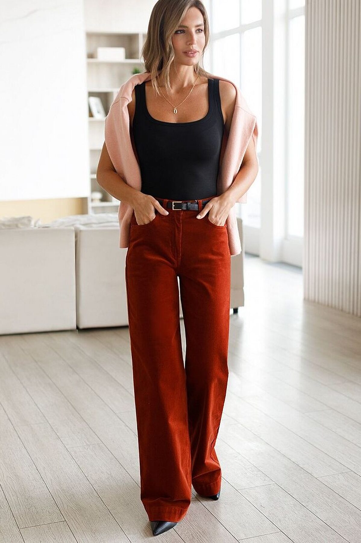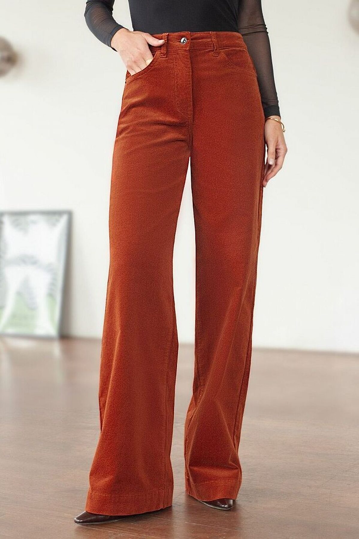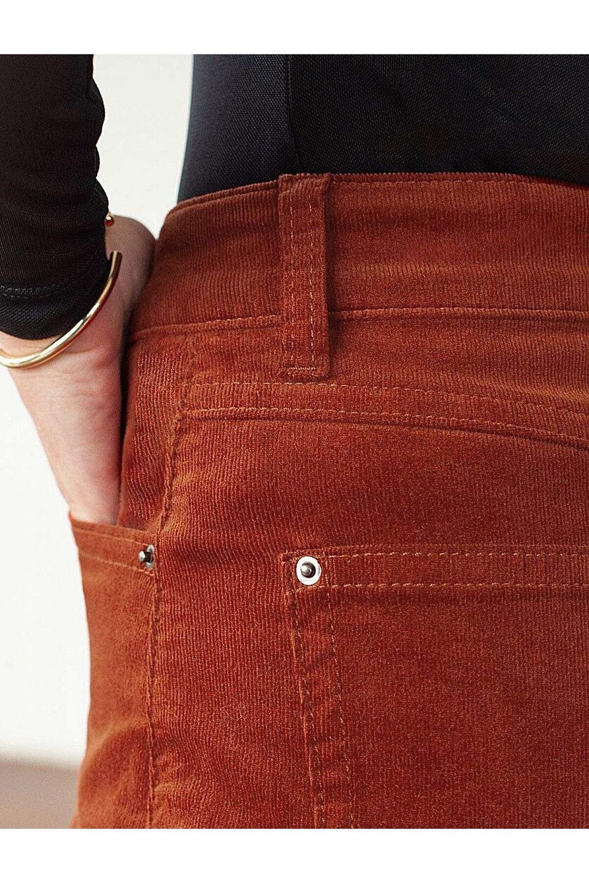 Брюки свободного кроя «трубы» выполнены из мягкого хлопкового микро-вельвета с добавлением эластана. Изделие комфортно садится по фигуре и не сковывает движения. Модель с пятью карманами, как у джинсов дополнена высококачественной фурнитурой с фирменным логотипом бренда. Идеально впишутся в повседневный образ, со свитером крупной вязки, курткой-косухой, ботинками на грубой подошве, челси и казаками.