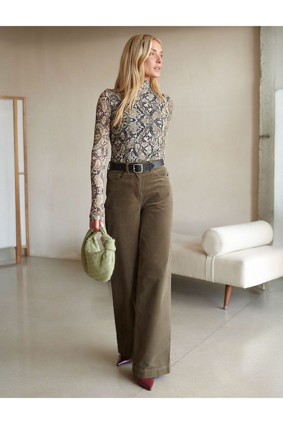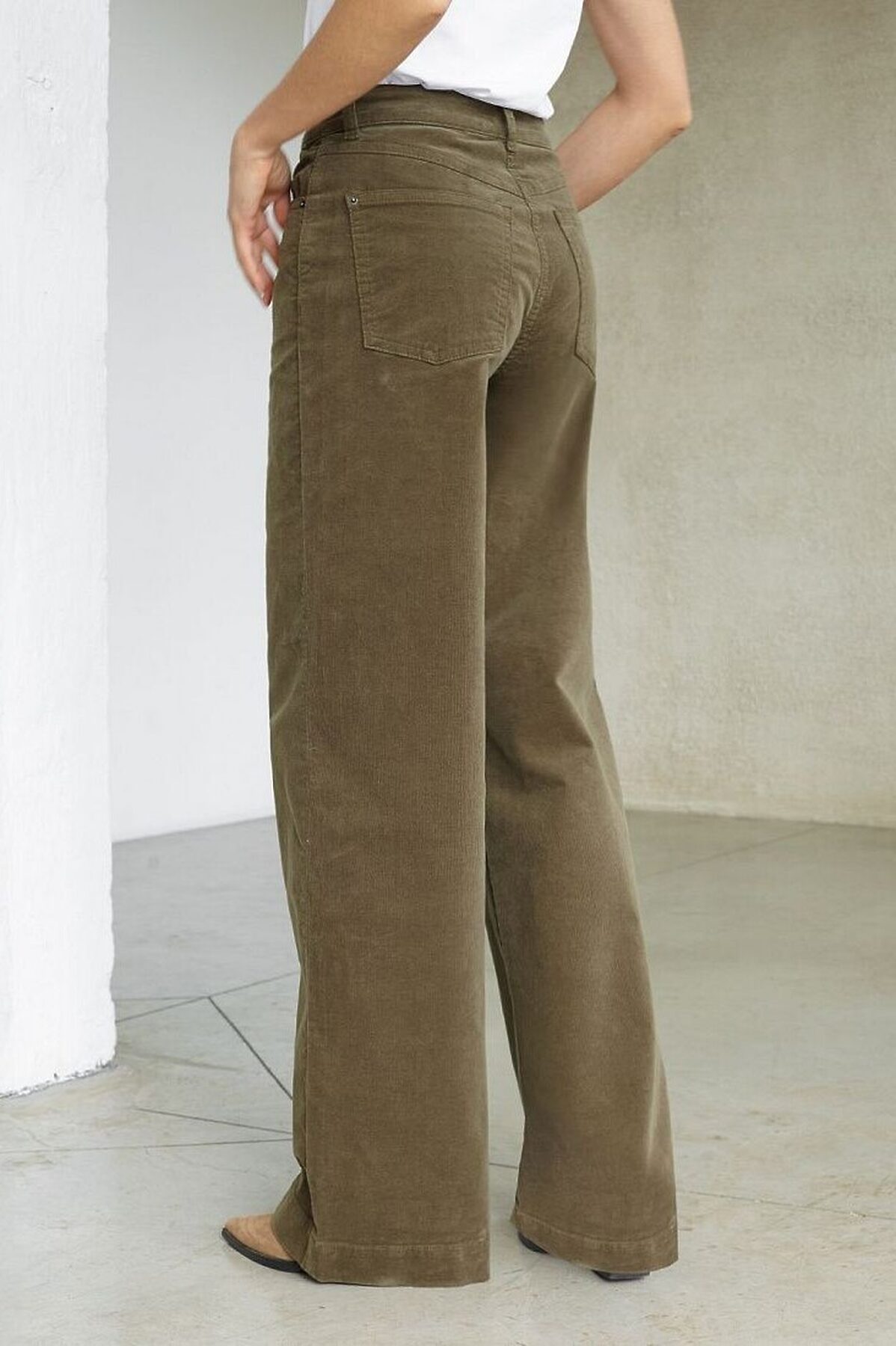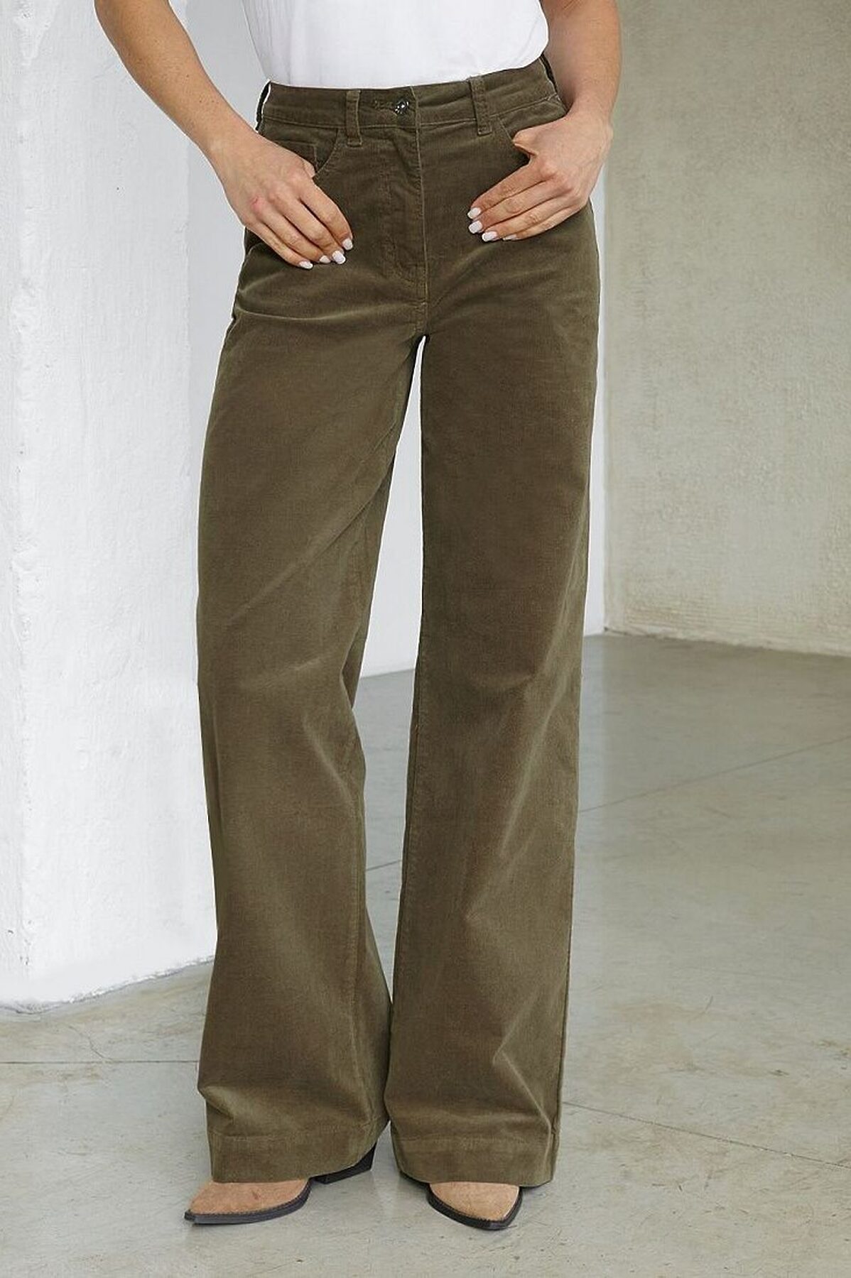 Брюки свободного кроя «трубы» выполнены из мягкого хлопкового микро-вельвета с добавлением эластана. Изделие комфортно садится по фигуре и не сковывает движения. Модель с пятью карманами, как у джинсов дополнена высококачественной фурнитурой с фирменным логотипом бренда. Идеально впишутся в повседневный образ, со свитером крупной вязки, курткой-косухой, ботинками на грубой подошве, челси и казаками.