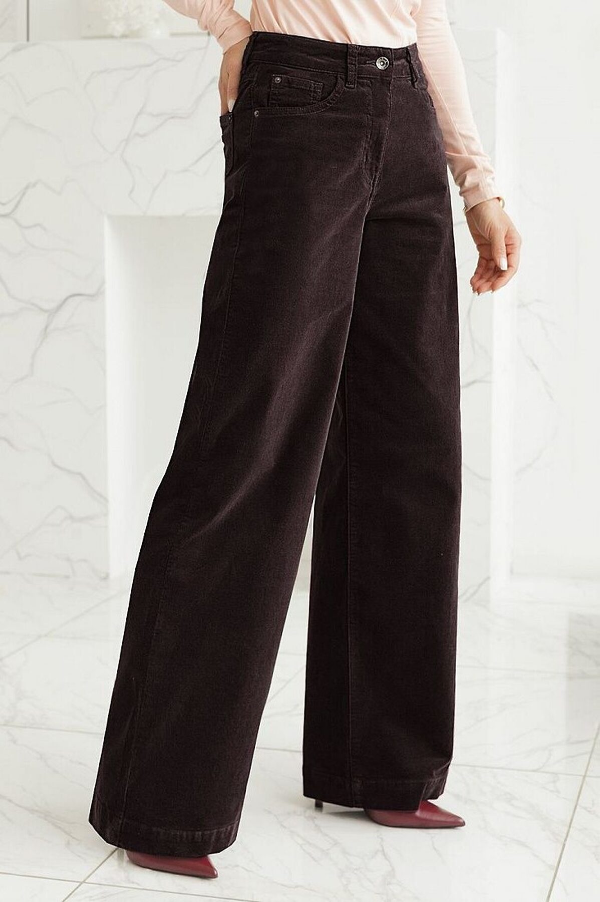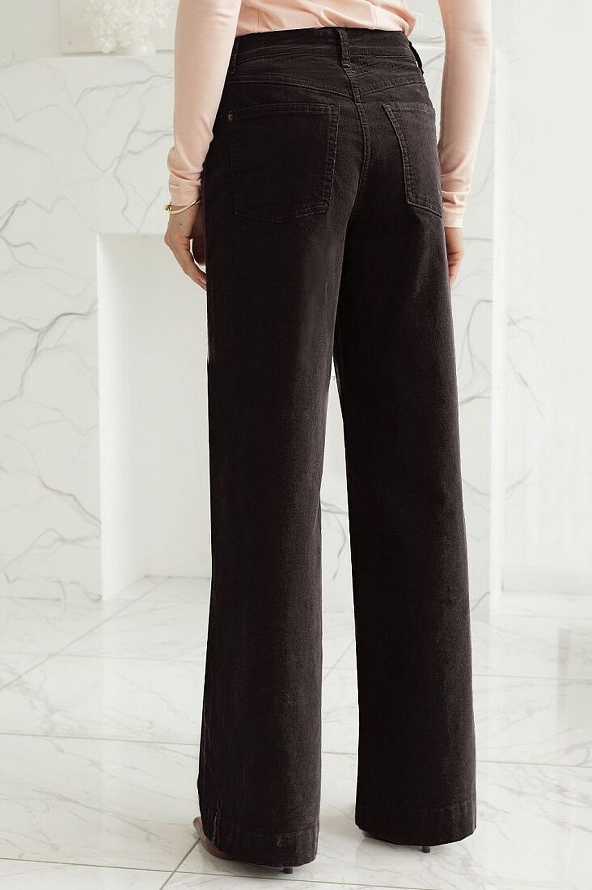 Брюки свободного кроя «трубы» выполнены из мягкого хлопкового микро-вельвета с добавлением эластана. Изделие комфортно садится по фигуре и не сковывает движения. Модель с пятью карманами, как у джинсов дополнена высококачественной фурнитурой с фирменным логотипом бренда. Идеально впишутся в повседневный образ, со свитером крупной вязки, курткой-косухой, ботинками на грубой подошве, челси и казаками.