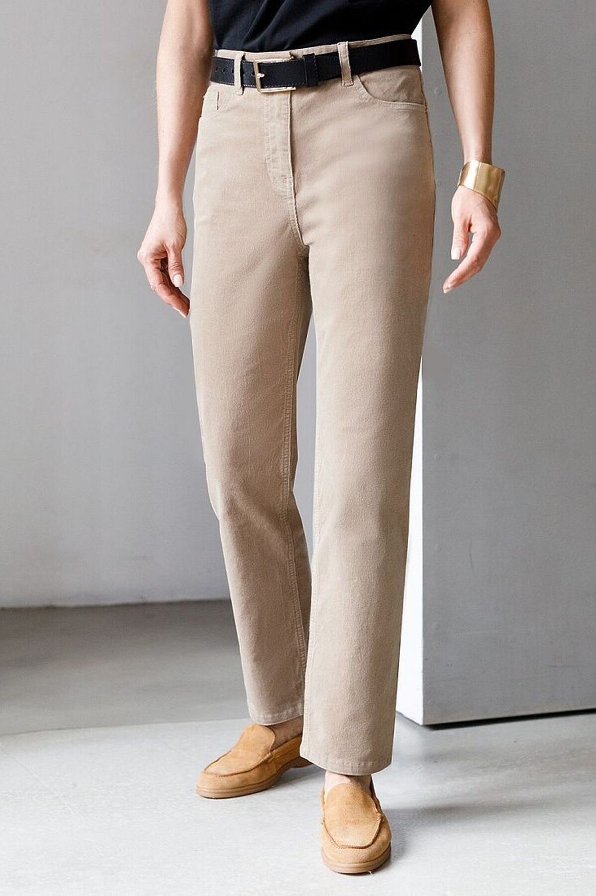 Брюки выполнены из мягкого хлопкового микро-вельвета с добавлением эластана. Изделие комфортно садится по фигуре и не сковывает движения. Модель с пятью карманами, как у джинсов-скинни дополнена высококачественной фурнитурой с фирменным логотипом бренда. Хорошо комбинируется с вязаным трикотажем, блузками и денимом. Как альтернатива брюкам, в нестрогий офисный дресс-код.