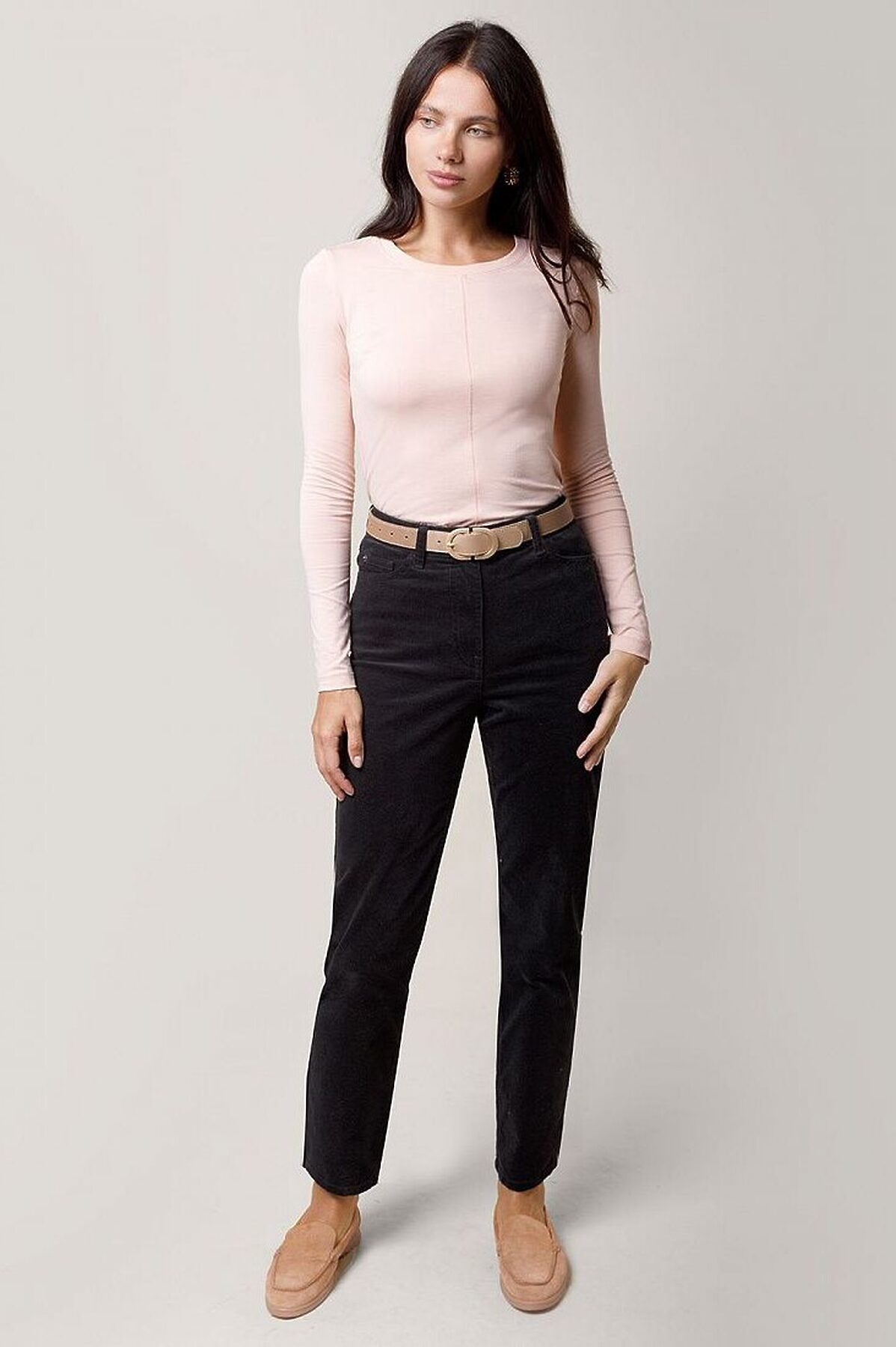 Брюки выполнены из мягкого хлопкового микро-вельвета с добавлением эластана. Изделие комфортно садится по фигуре и не сковывает движения. Модель с пятью карманами, как у джинсов-скинни дополнена высококачественной фурнитурой с фирменным логотипом бренда. Хорошо комбинируется с вязаным трикотажем, блузками и денимом. Как альтернатива брюкам, в нестрогий офисный дресс-код.