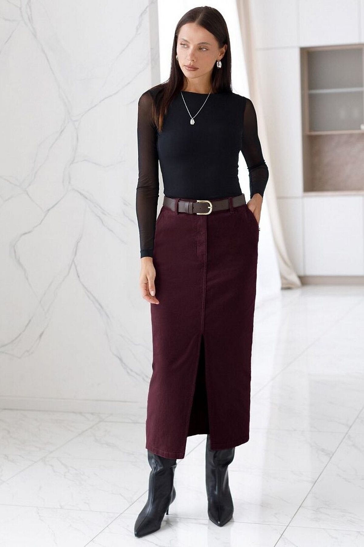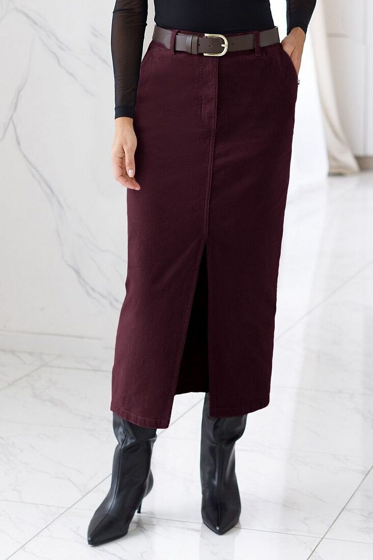 Юбка прямого кроя с выполнена из мягкого хлопкового микро-вельвета с добавлением эластана. Модель дополнена высоким разрезом спереди. Изделие комфортно садится по фигуре и не сковывает движения. Хорошо комбинируется с вязаным трикотажем, блузками и денимом. Также прекрасно станет альтернативой деловым низам в нестрогом офисном дресс-коде.