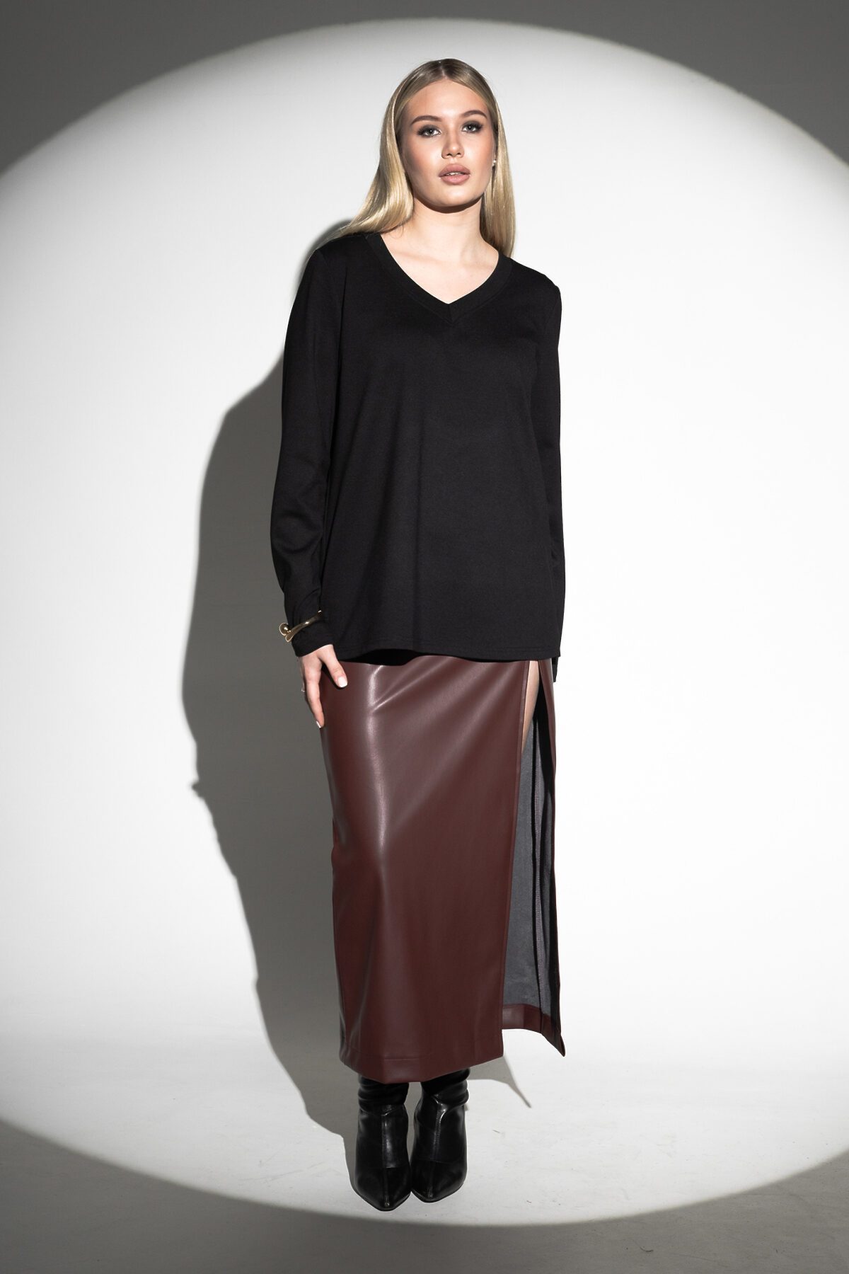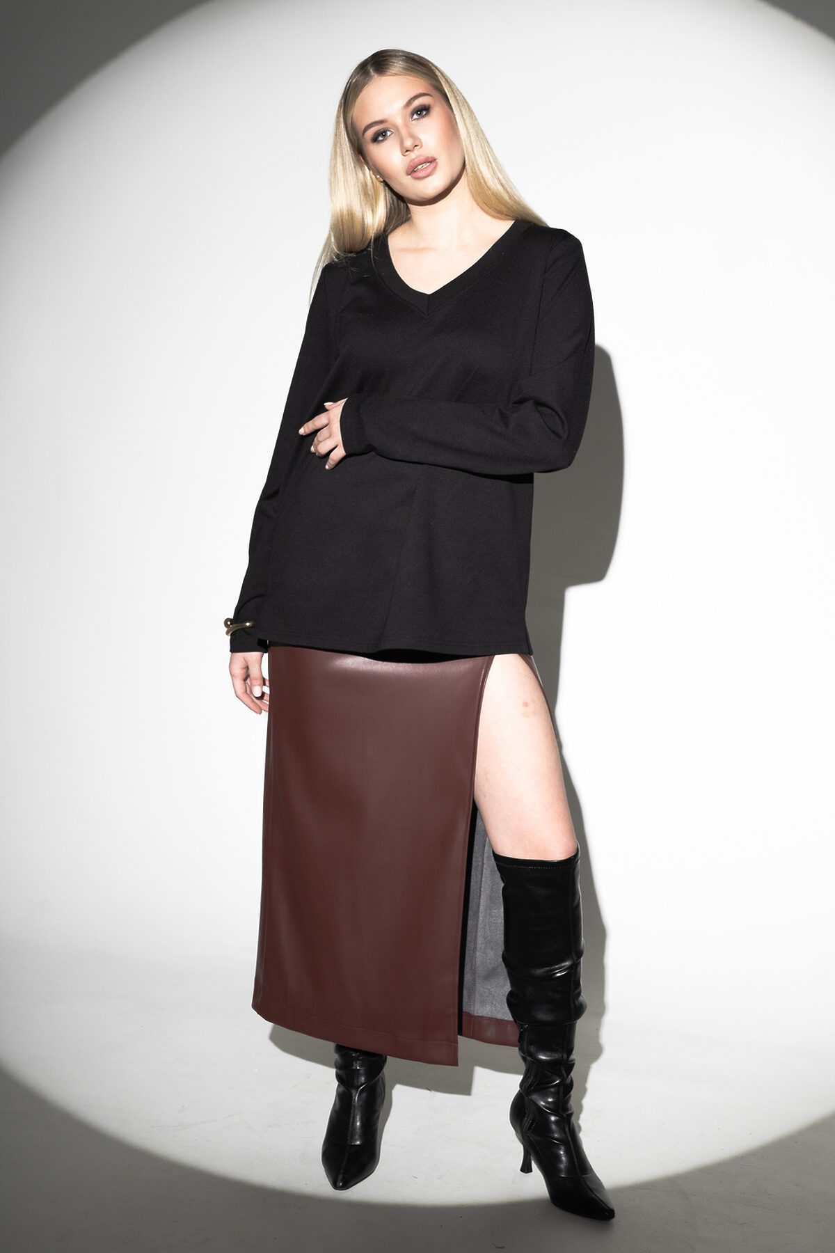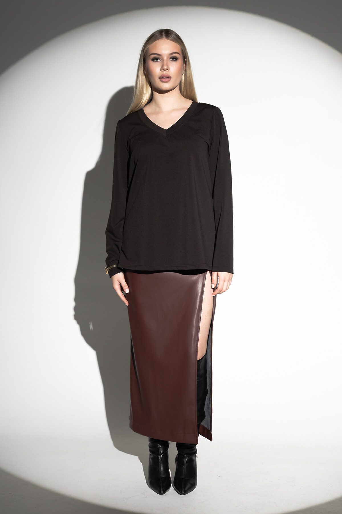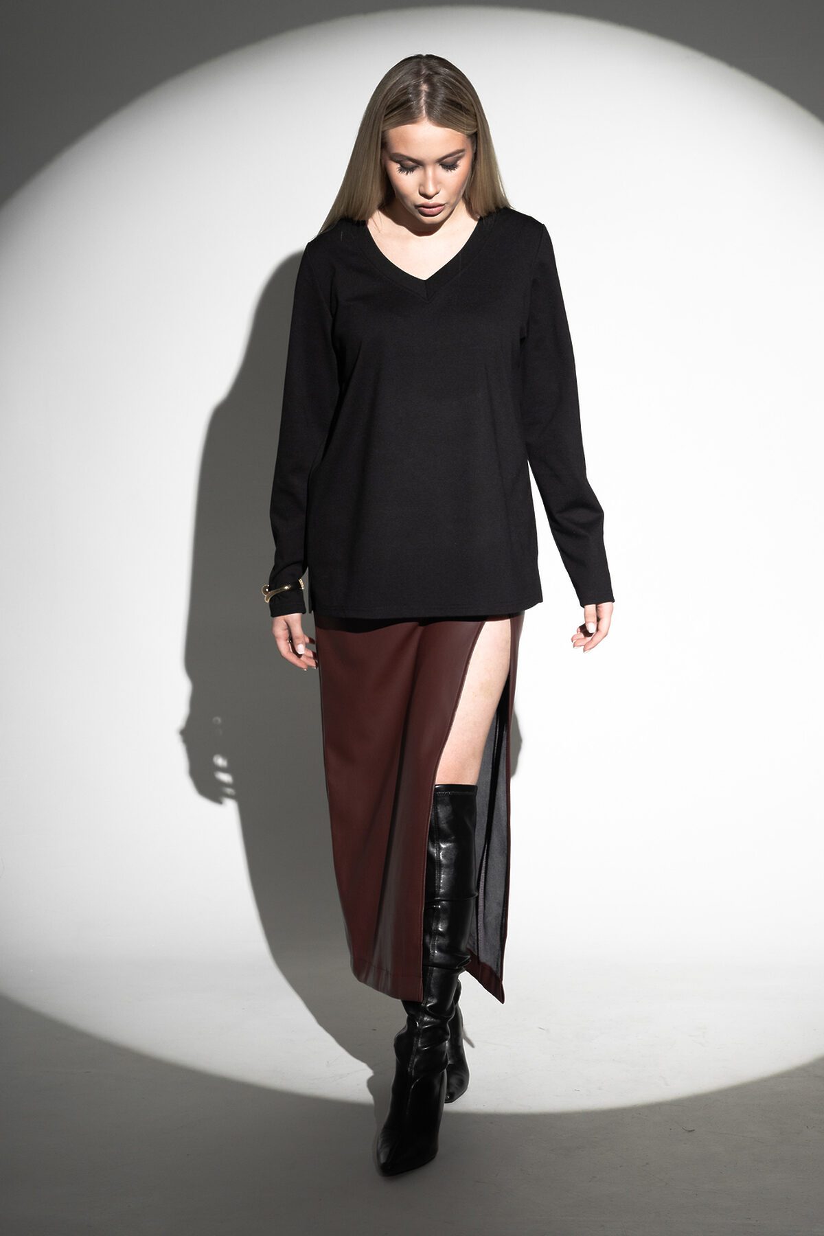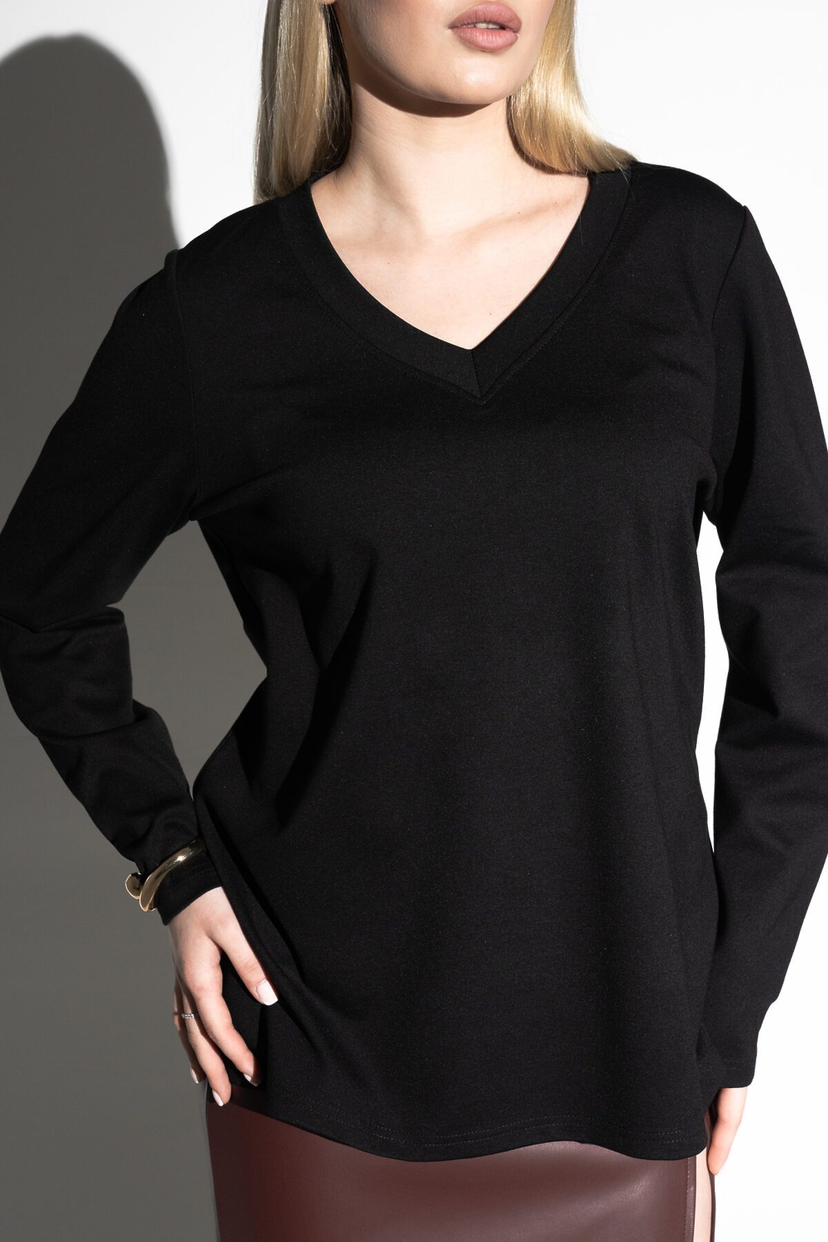 Лонгслив с V- образным вырезом НАТАЛИ, черный