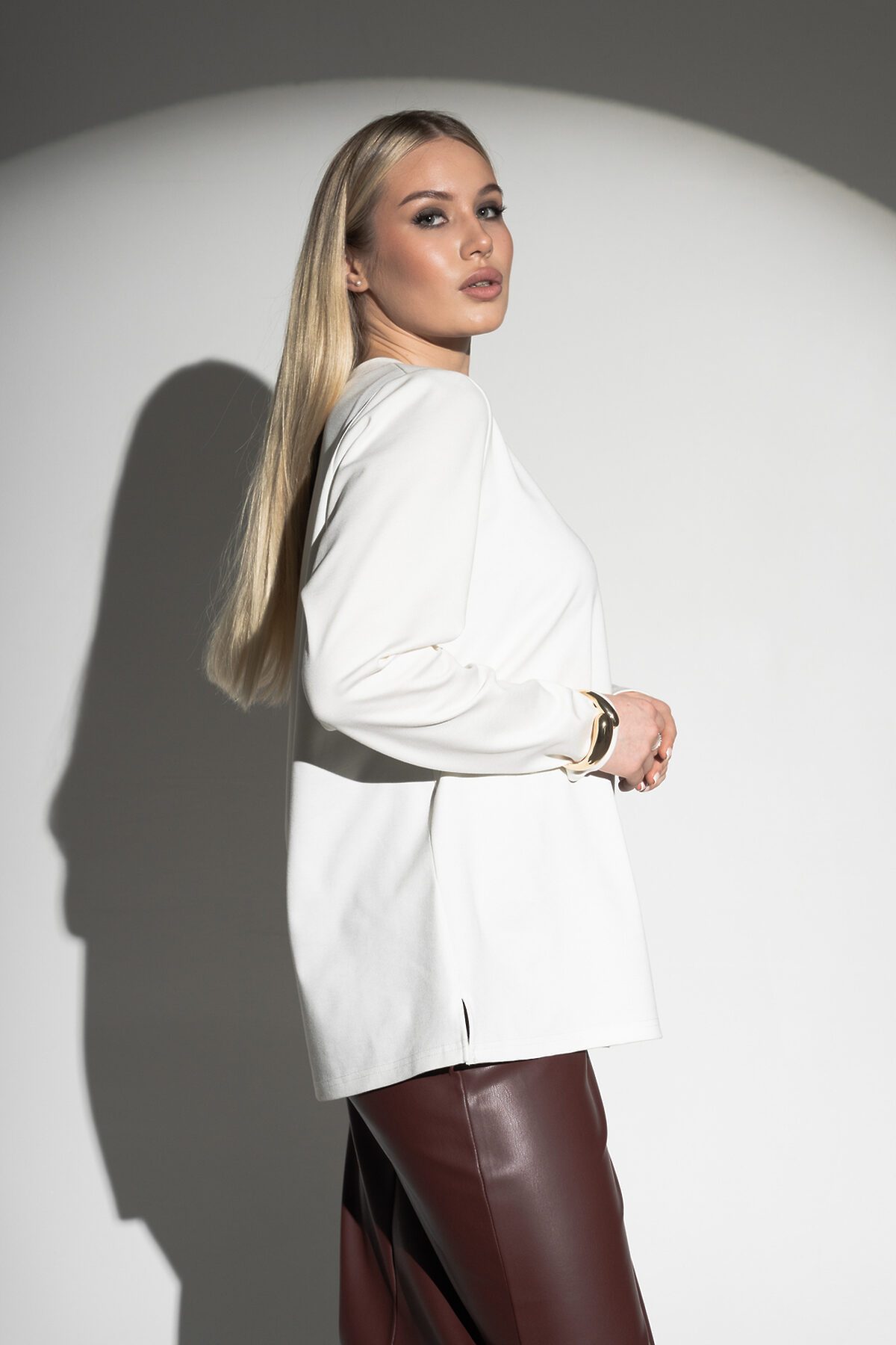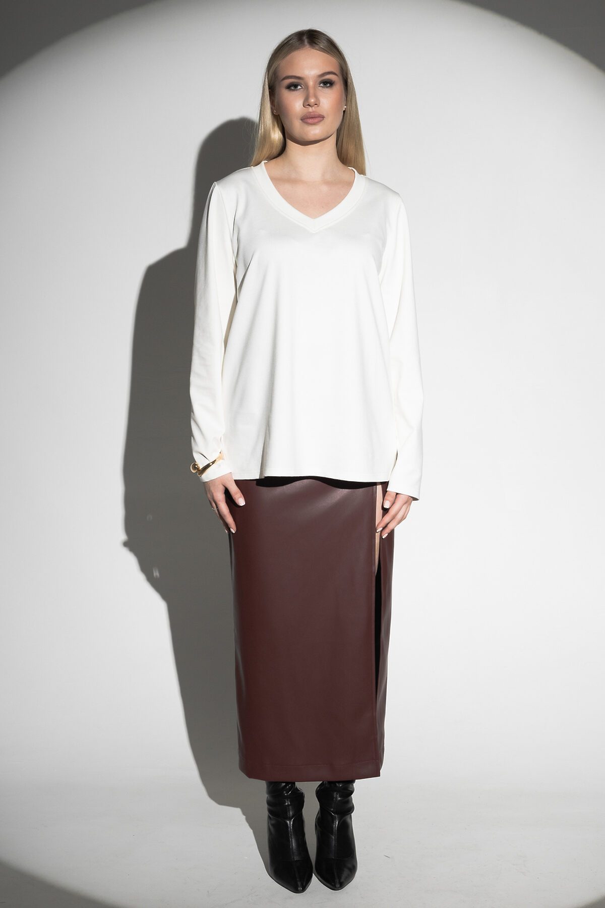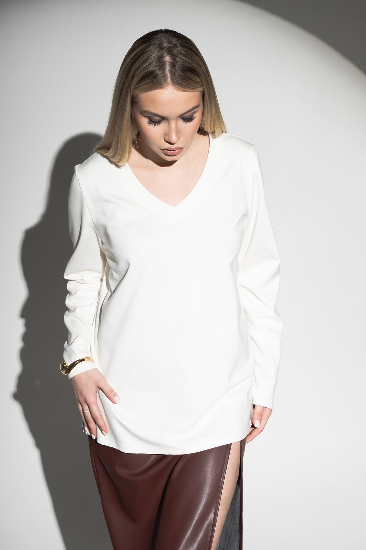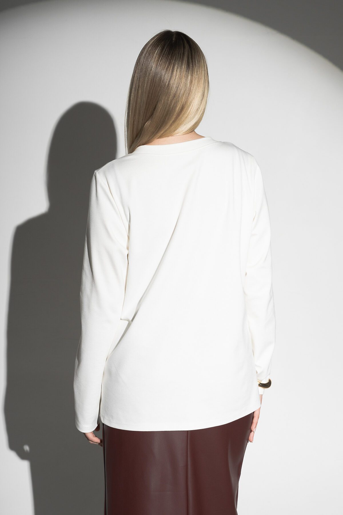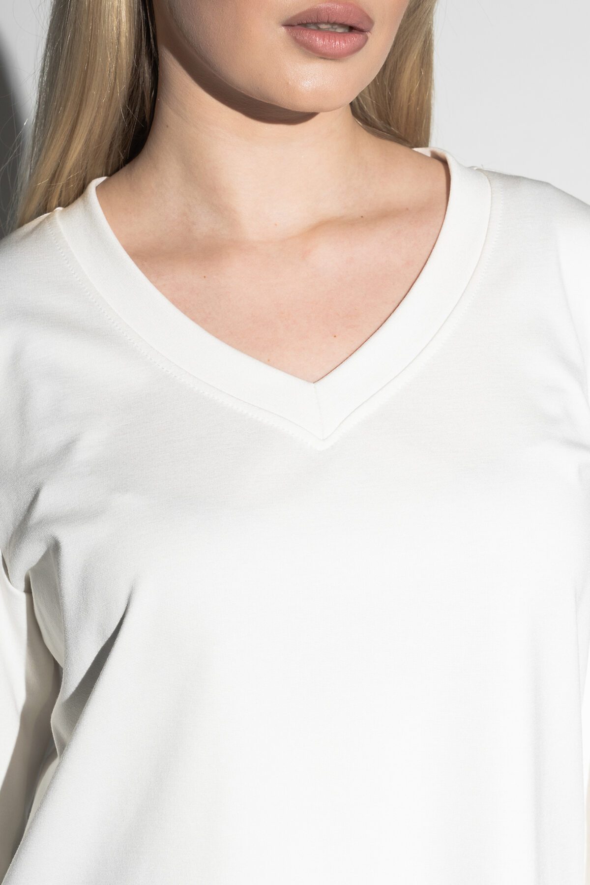 Лонгслив с V- образным вырезом НАТАЛИ, молочный