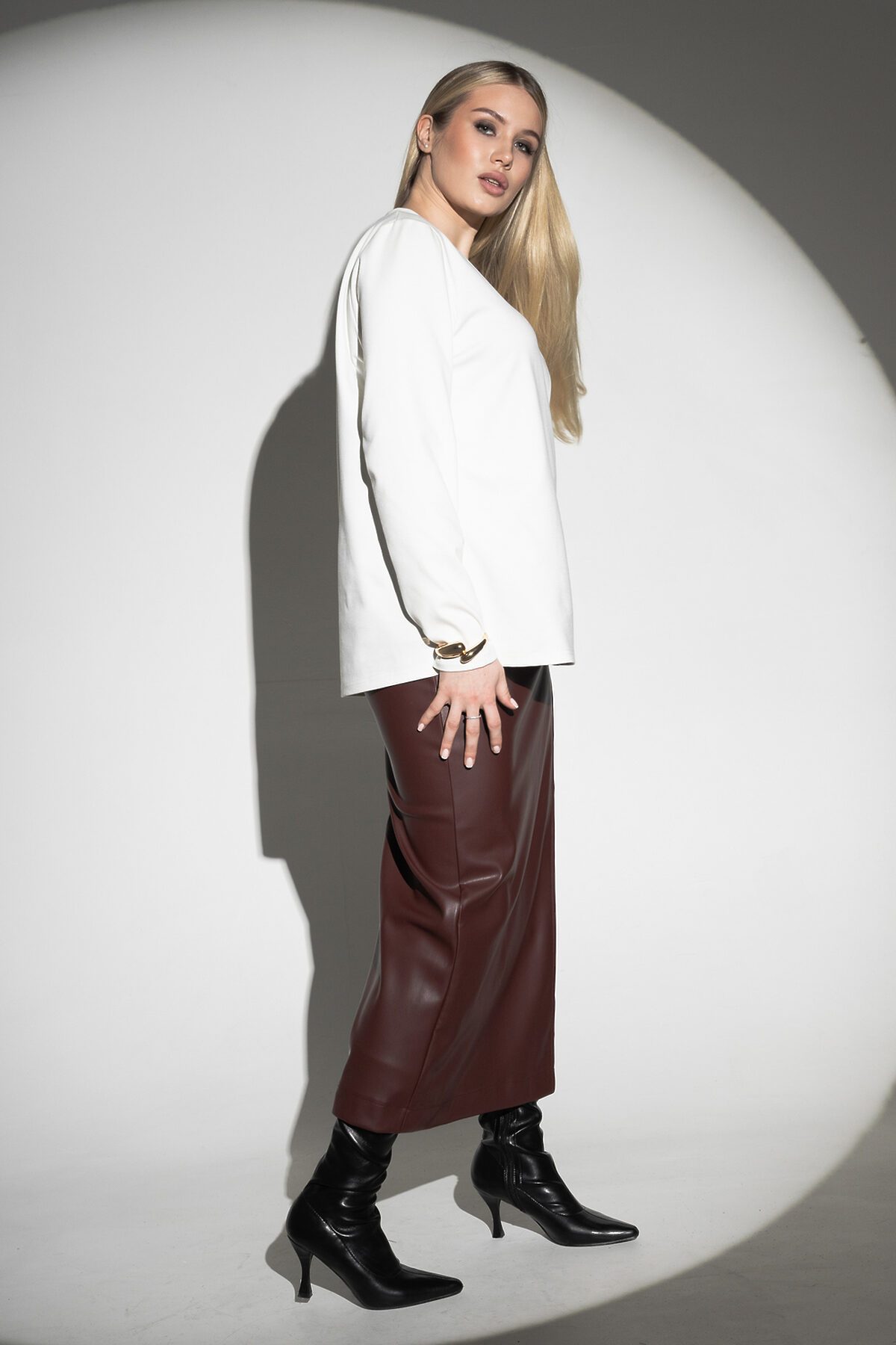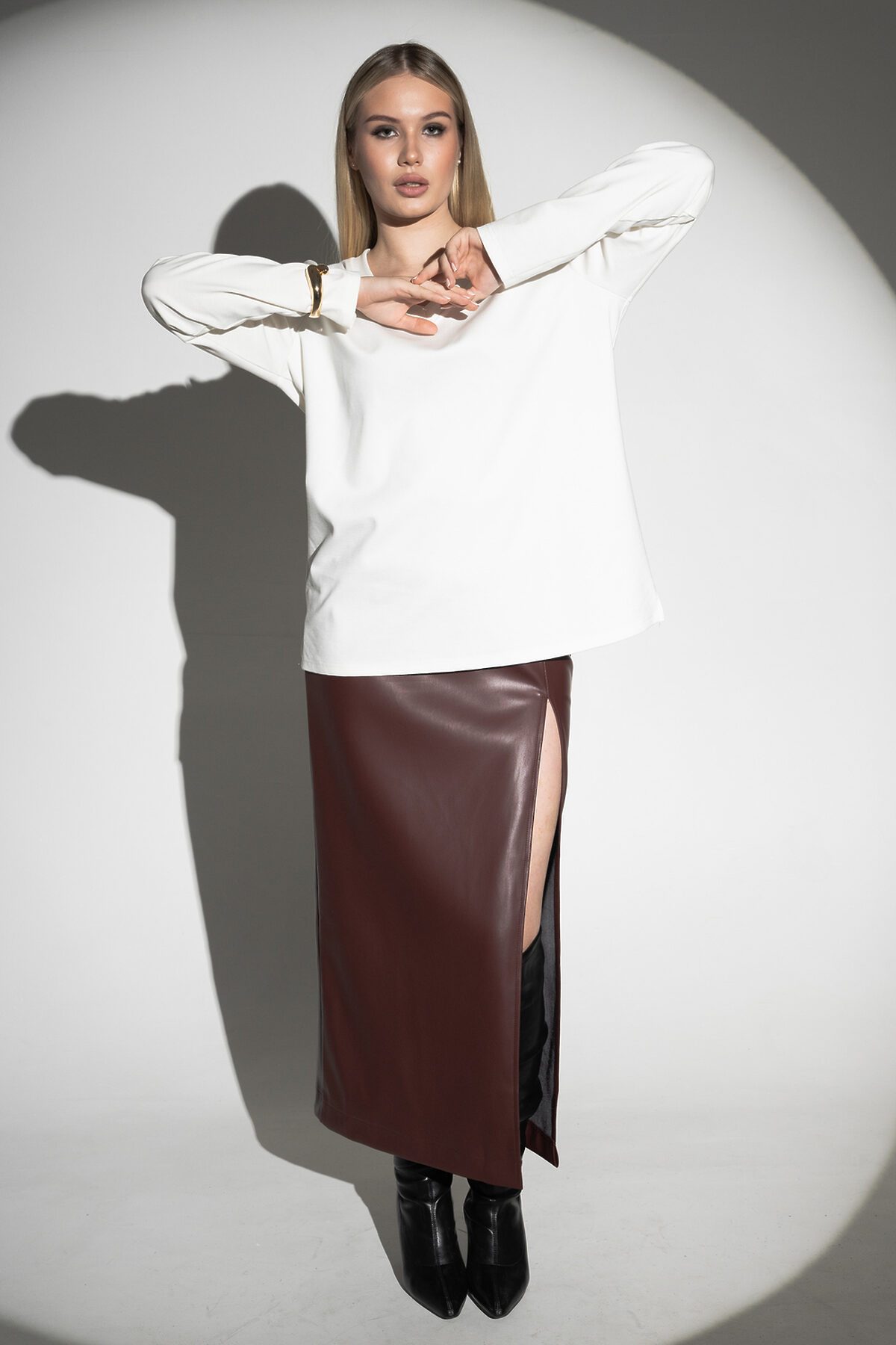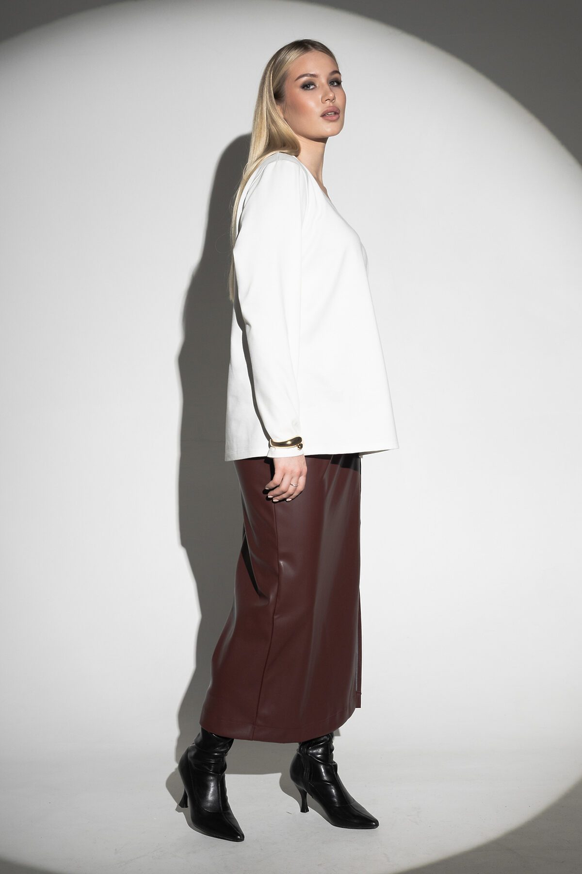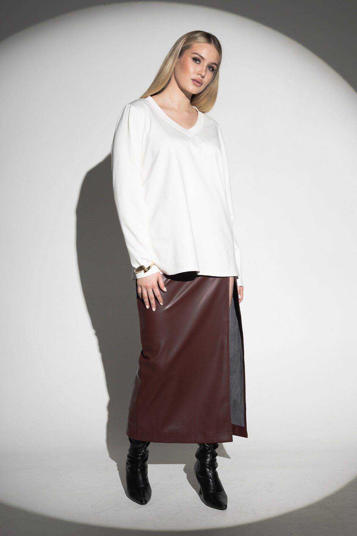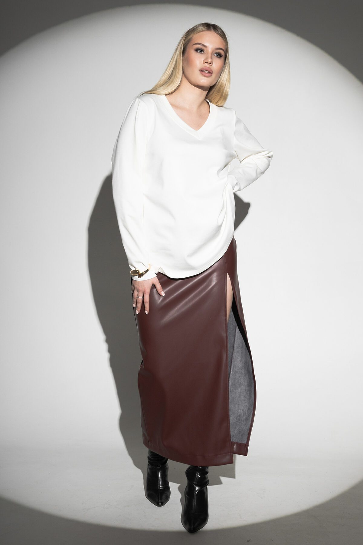 Лонгслив с V- образным вырезом НАТАЛИ, молочный