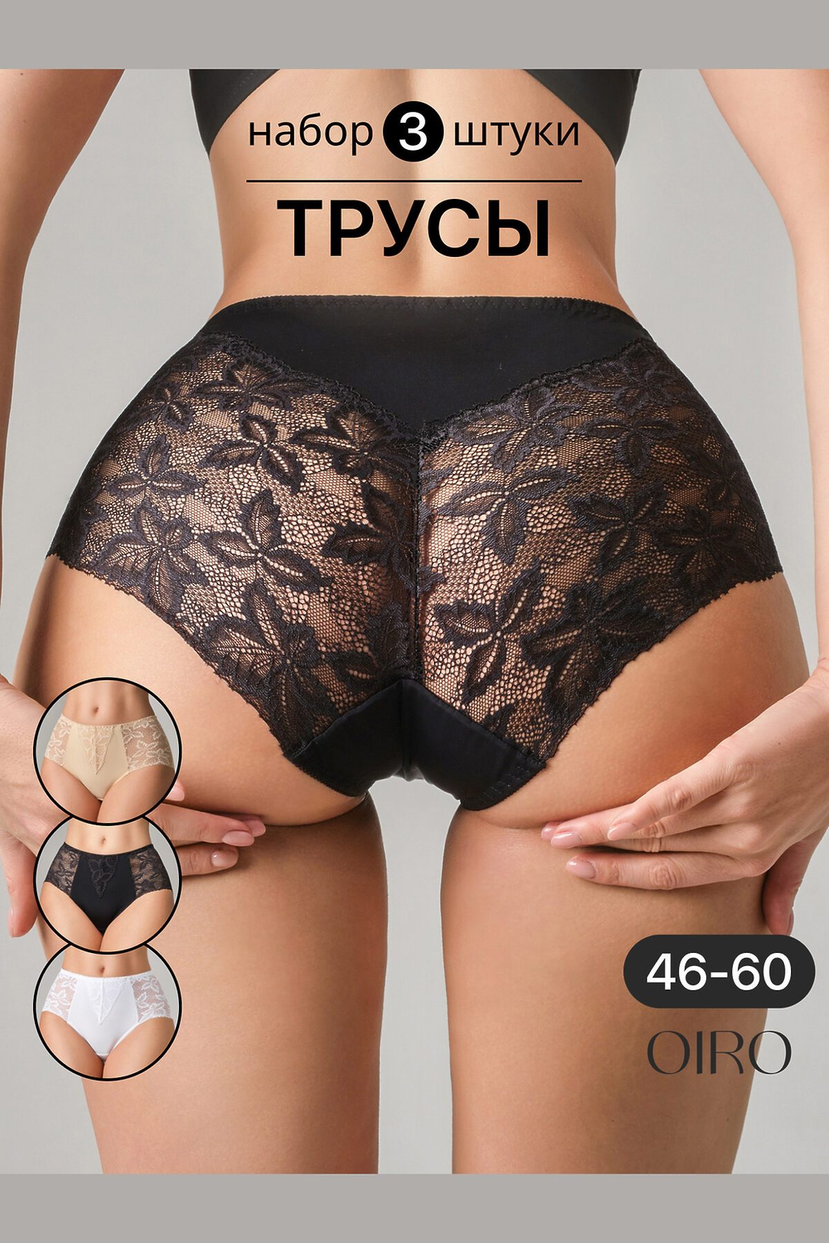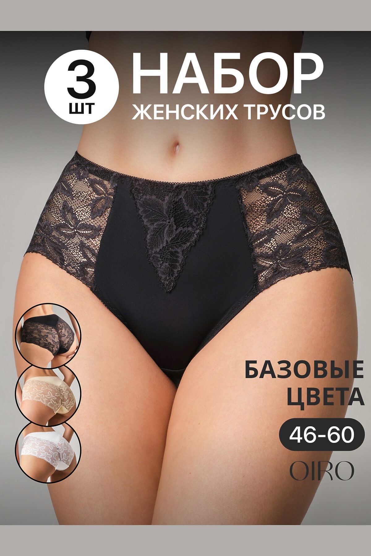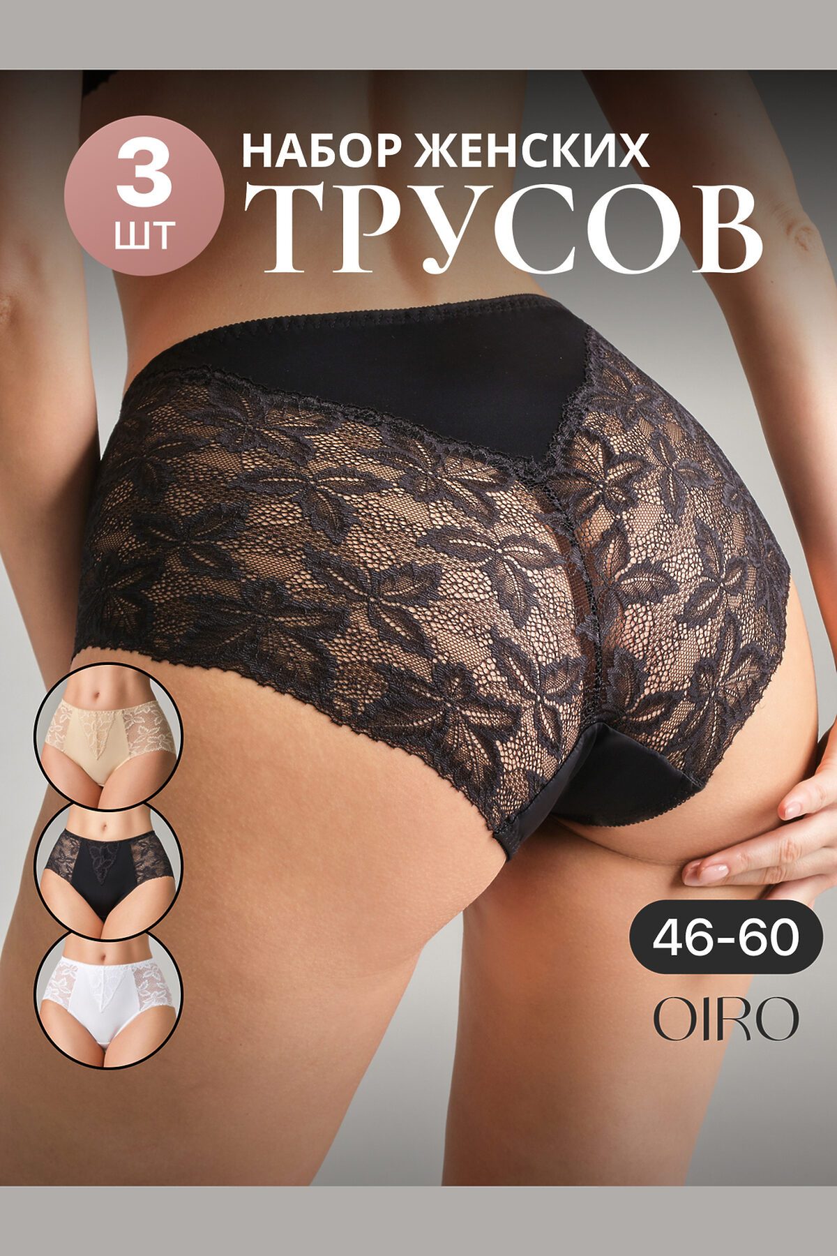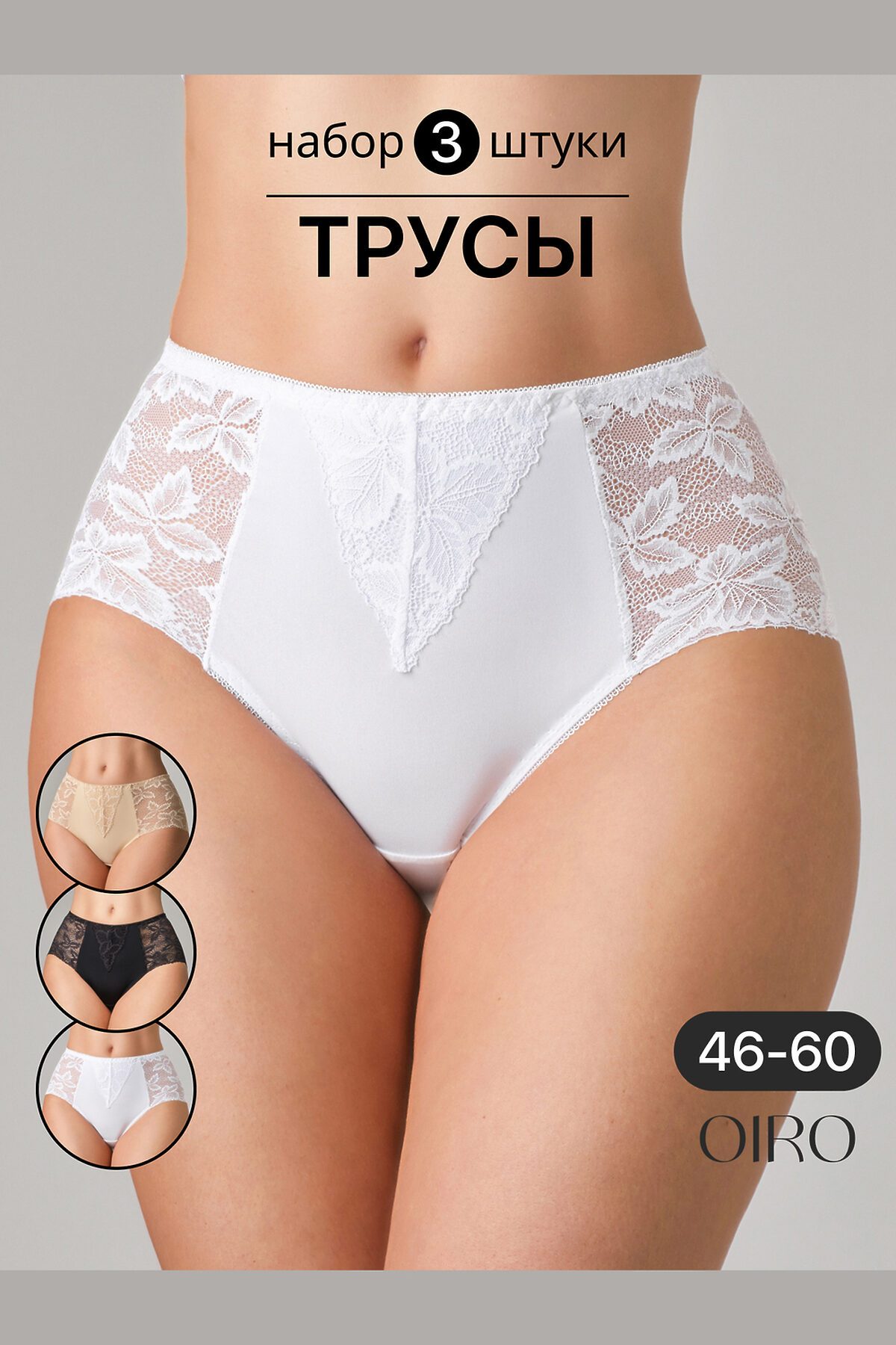 Трусы OIRO 0209 кружевные 46-60 3 шт НАТАЛИ, черный,белый,бежевый