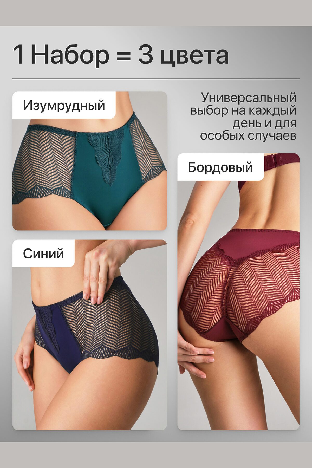 Трусы 0208 кружевные 46-60 3 шт НАТАЛИ, синий, бордо