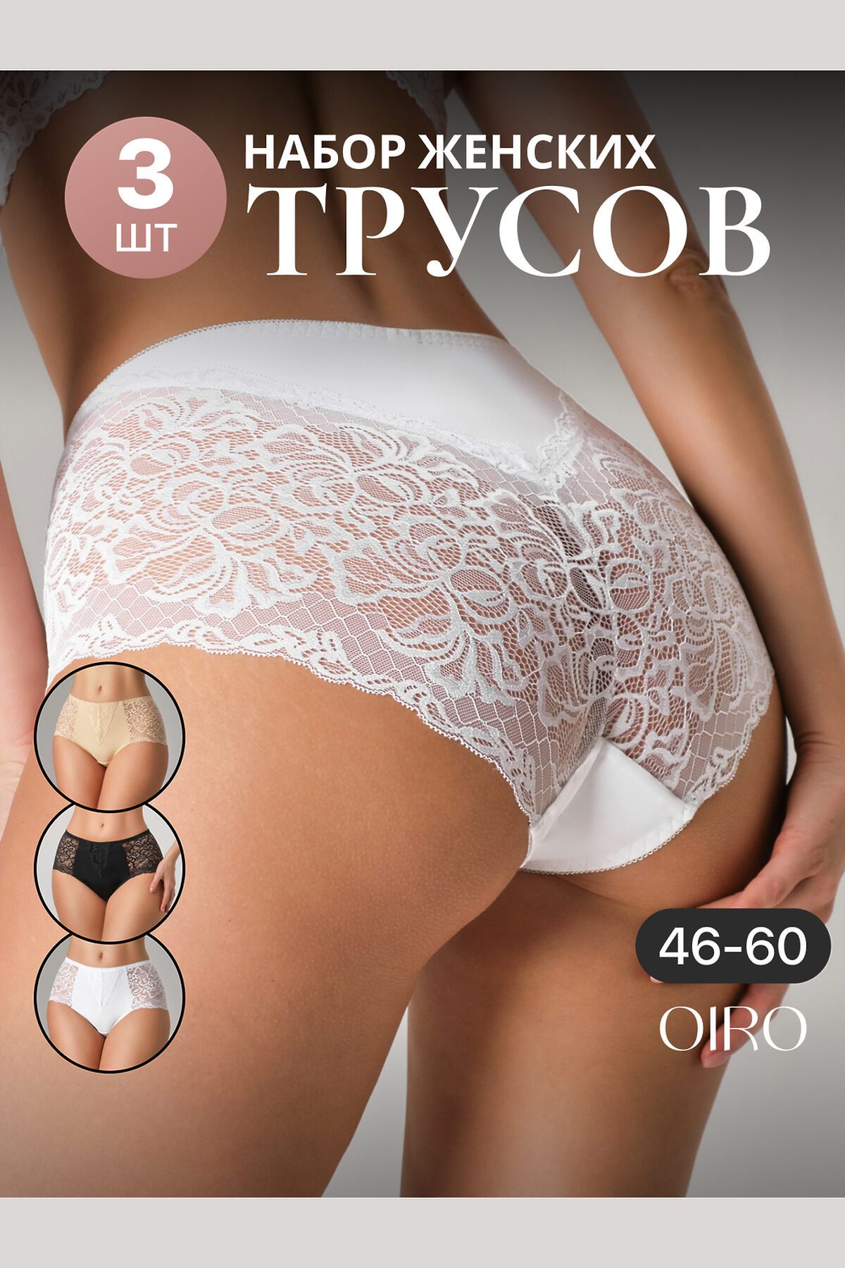 Трусы 0207 кружевные 46-60 3 шт НАТАЛИ, черный,белый,бежевый