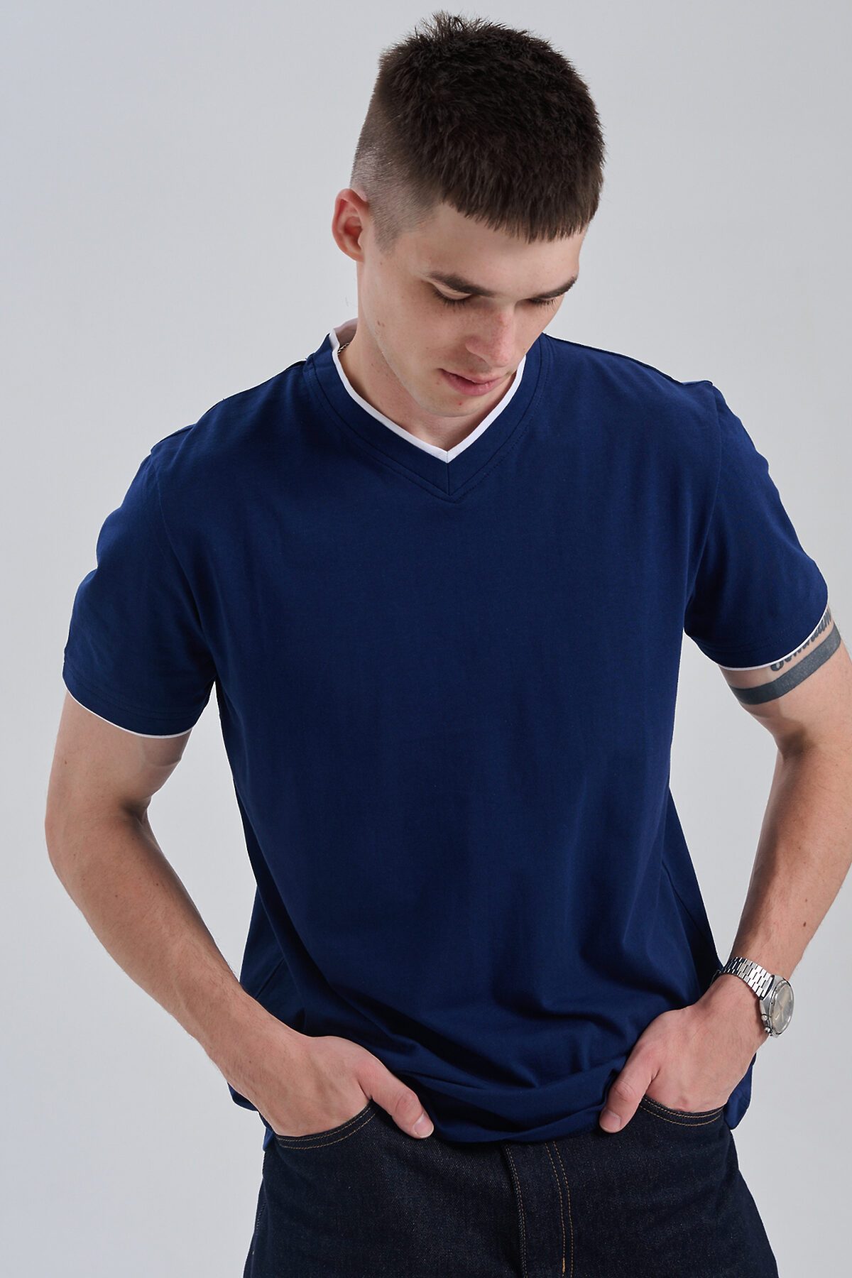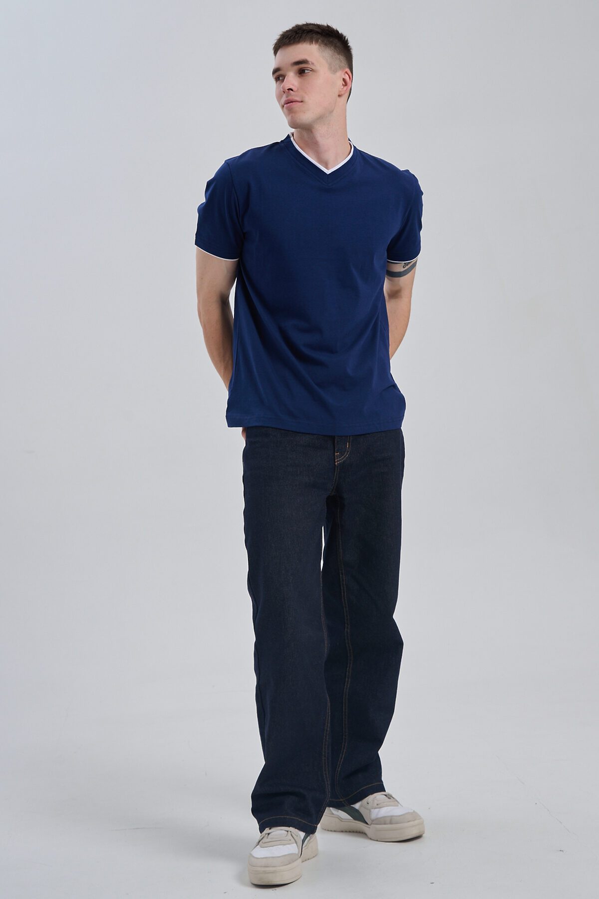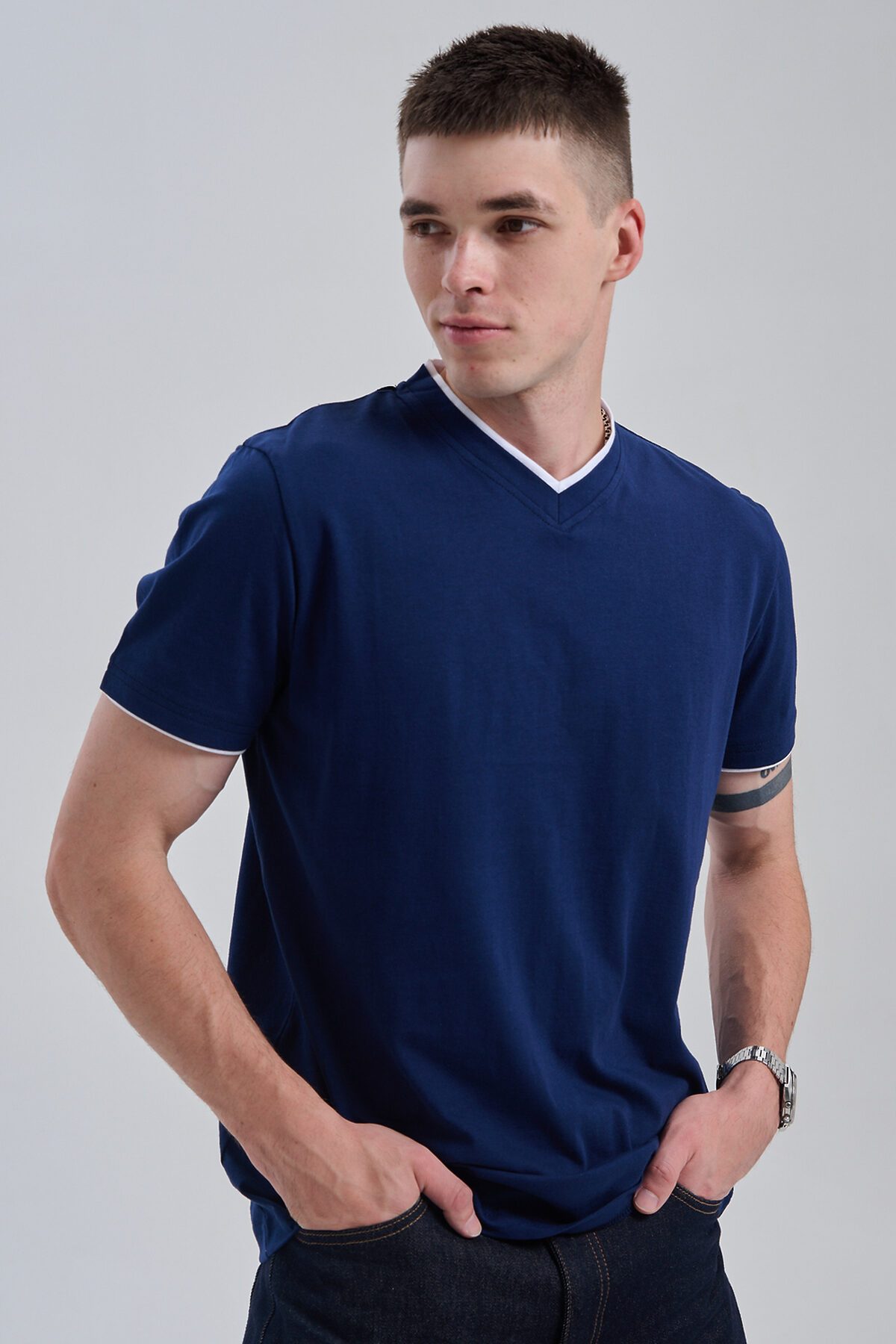 Футболка мужская однотонная с окантовкой из плотного дышащего хлопка. Модель в расслабленном молодежном стиле. Свободный прямой крой база для любого гардероба. Представлены мягкие футболки стандартных размеров, подходят на высокий рост. С усиленным V-Образным вырезом и окантовкой, подойдет для тренировок, офиса, учебы, активного отдыха, туристических поездок, встреч с друзьями и дома.