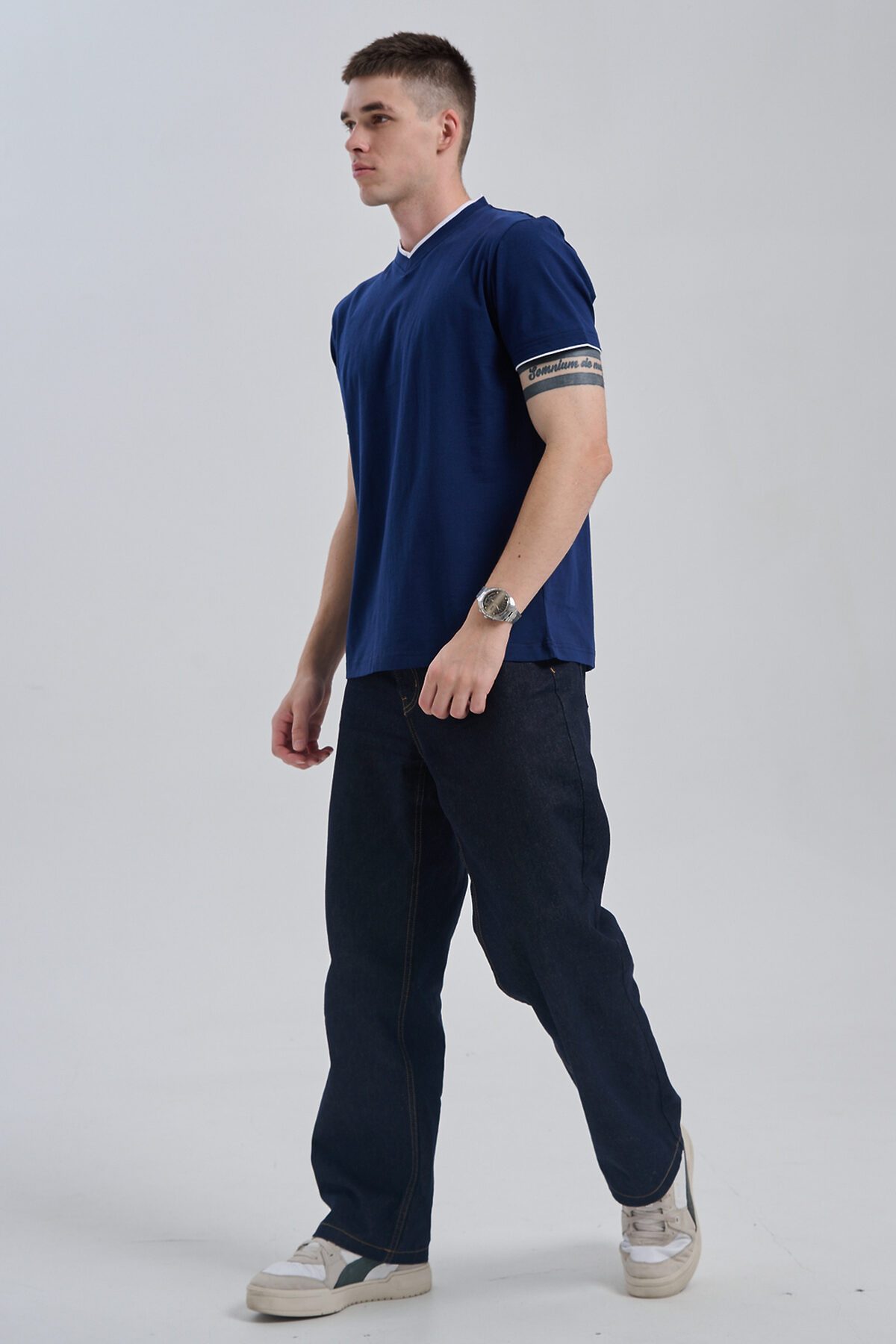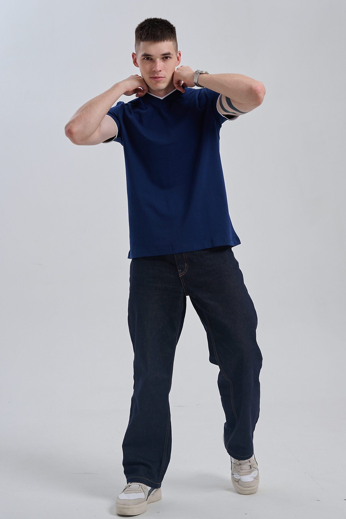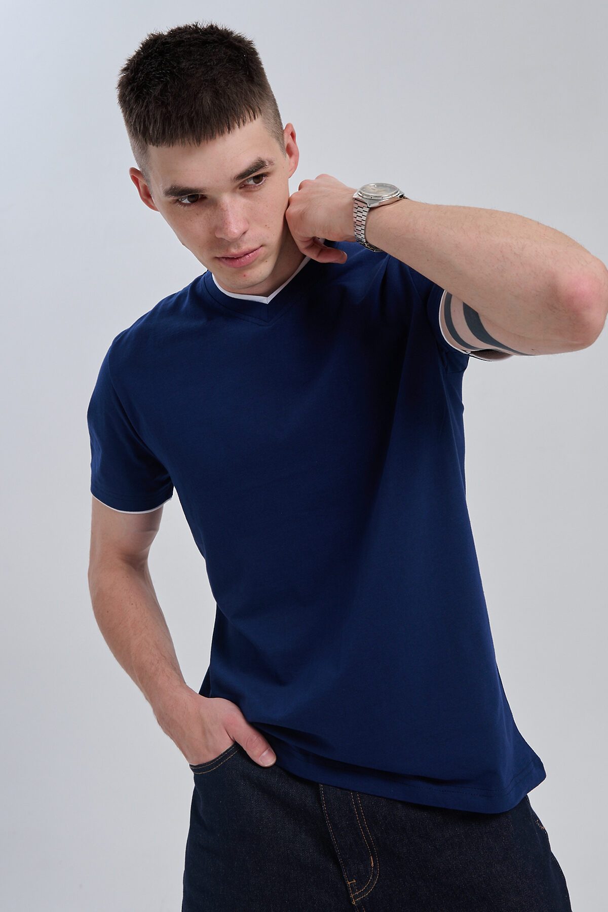 Футболка мужская однотонная с окантовкой из плотного дышащего хлопка. Модель в расслабленном молодежном стиле. Свободный прямой крой база для любого гардероба. Представлены мягкие футболки стандартных размеров, подходят на высокий рост. С усиленным V-Образным вырезом и окантовкой, подойдет для тренировок, офиса, учебы, активного отдыха, туристических поездок, встреч с друзьями и дома.