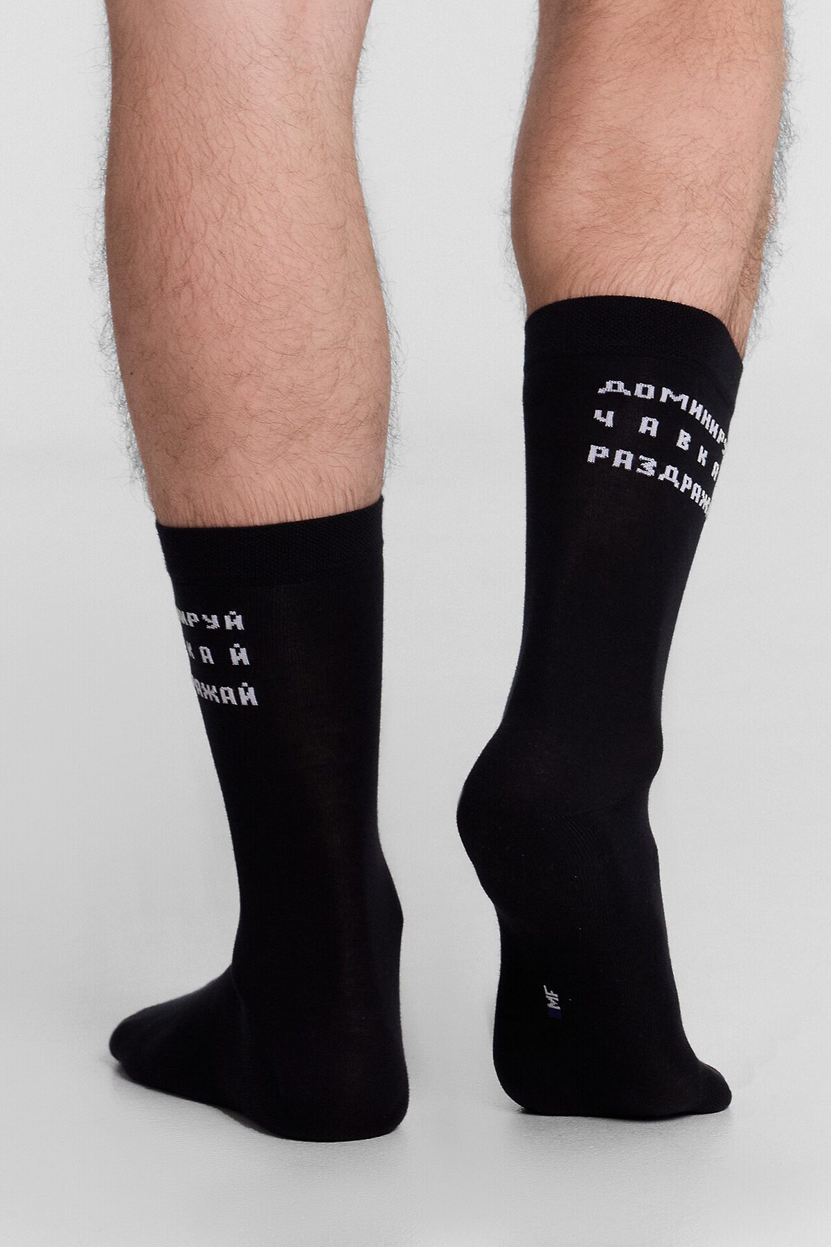 рис.3031 Мужской носок классический, высокий, с рисунком в виде надписи "Доминируй...".