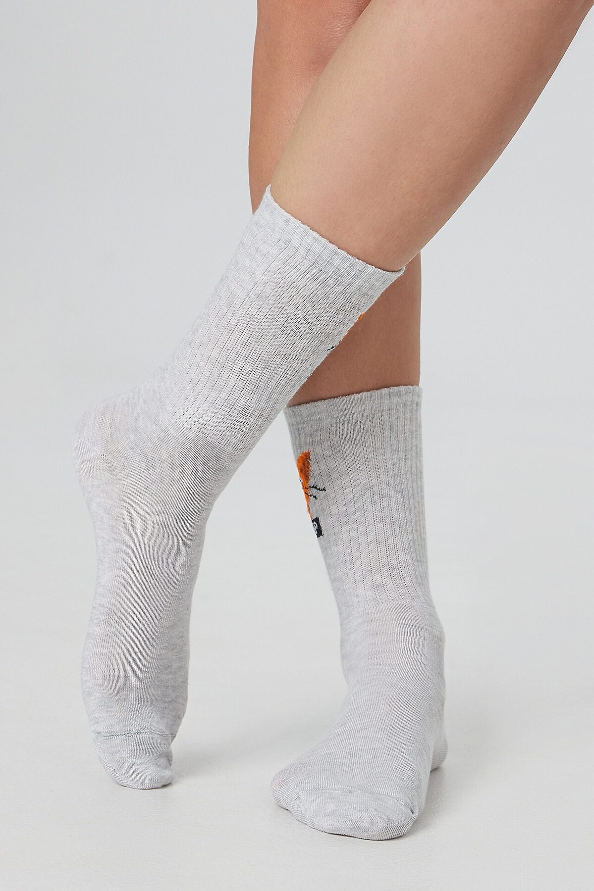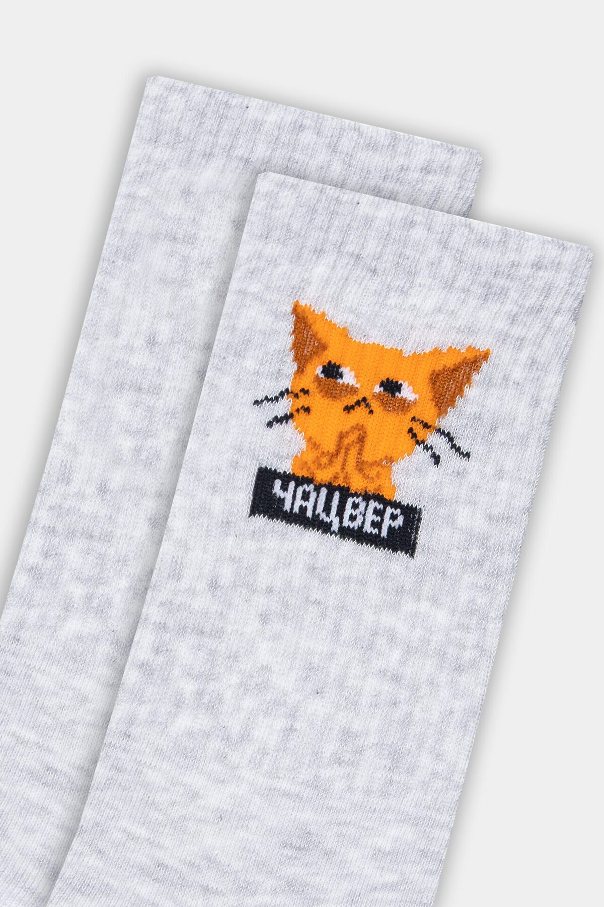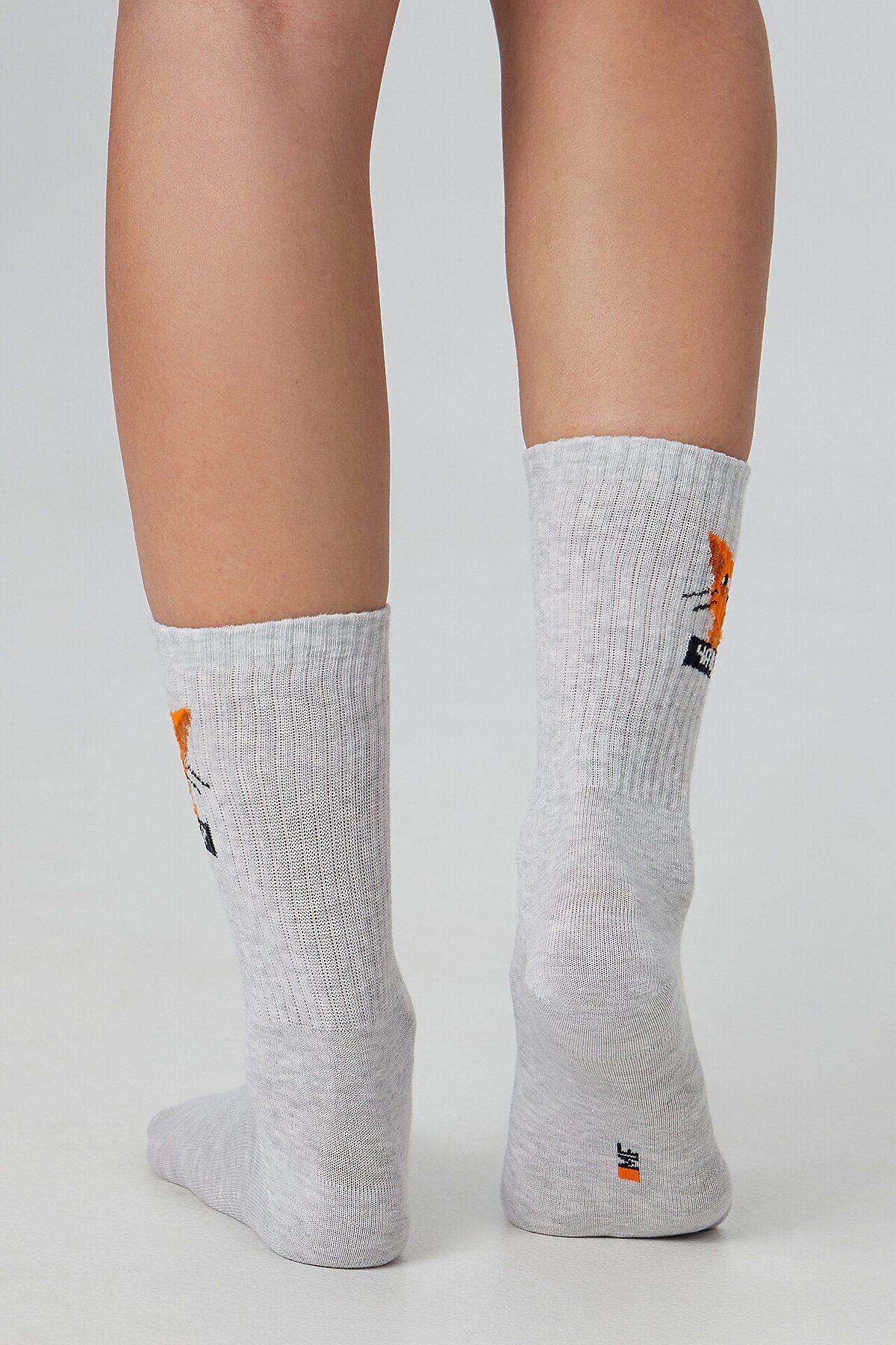 рис.2667 Женский носок с высоким плотным бортом и рисунком в виде котика с надписью.