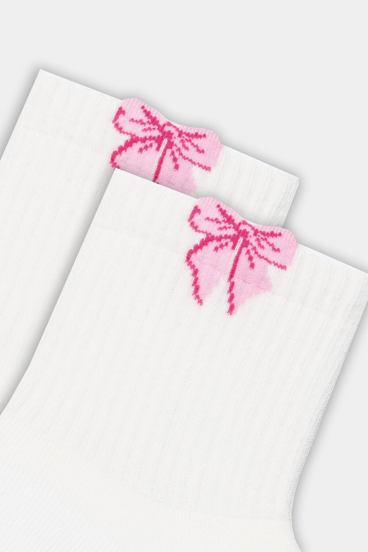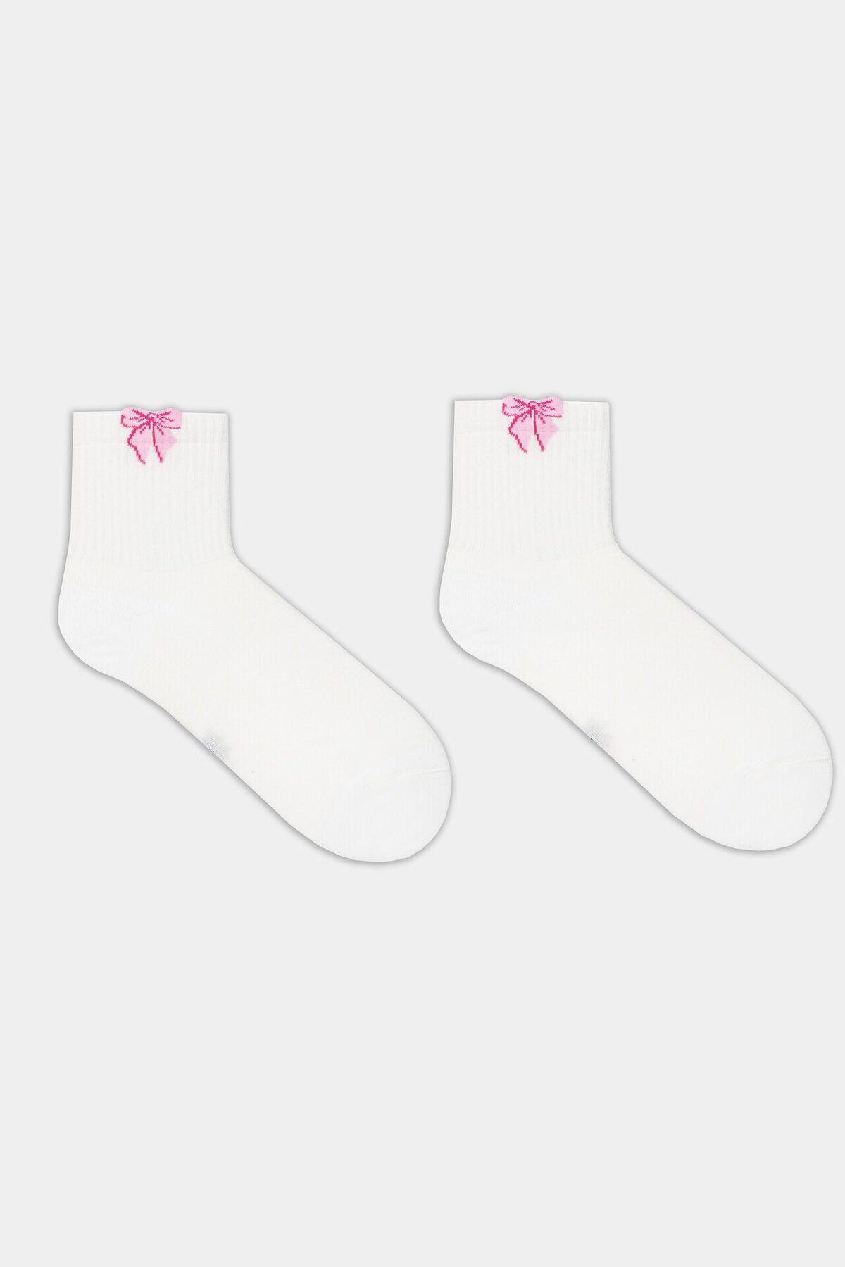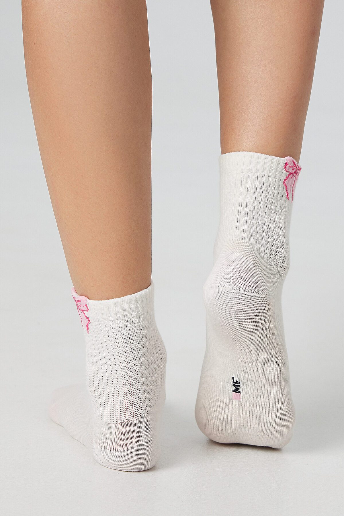 Рис. 3127 Женские носки средней высоты, с плотным бортом и рисунком в виде бантика с пикотом на бортике.