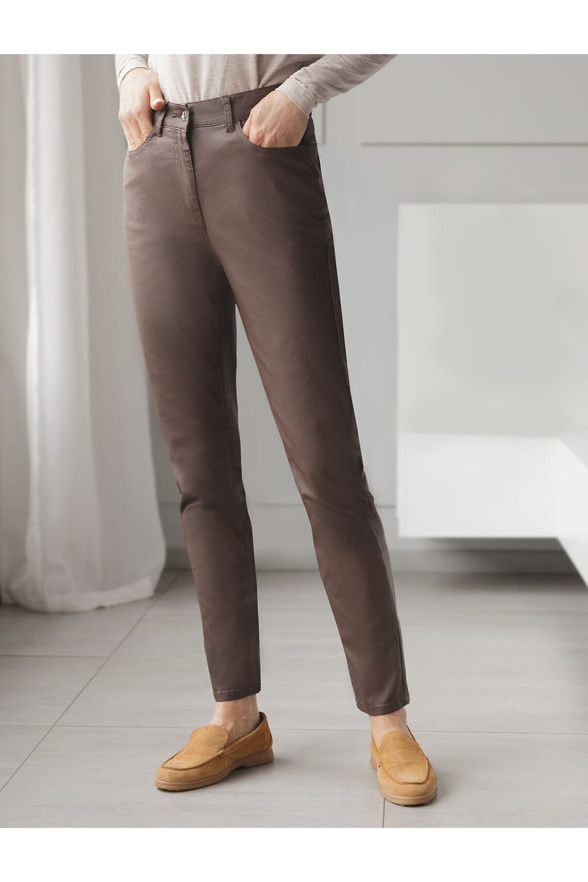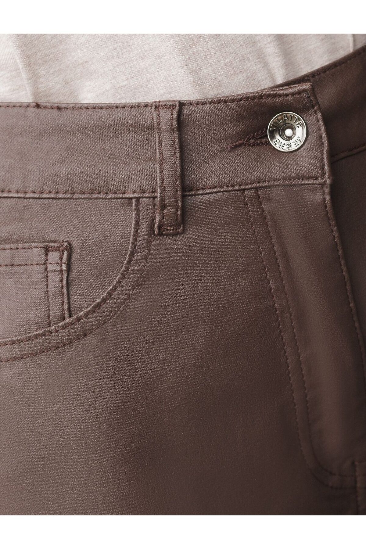 Удобная посадка по фигуре подчеркивает силуэт, а покрытие создает эффект натуральной кожи, добавляя образу дерзости. Благодаря эластичному материалу брюки не сковывают движений, обеспечивая максимальный комфорт в течение всего дня. Универсальная модель коричневого цвета легко сочетается с объемным свитером для повседневного лука или с классической рубашкой и блейзером для более строгого образа. Практичный материал устойчив к износу и не требует особого ухода. Эти брюки – must-have для тех, кто ценит стиль, удобство и современные тренды.