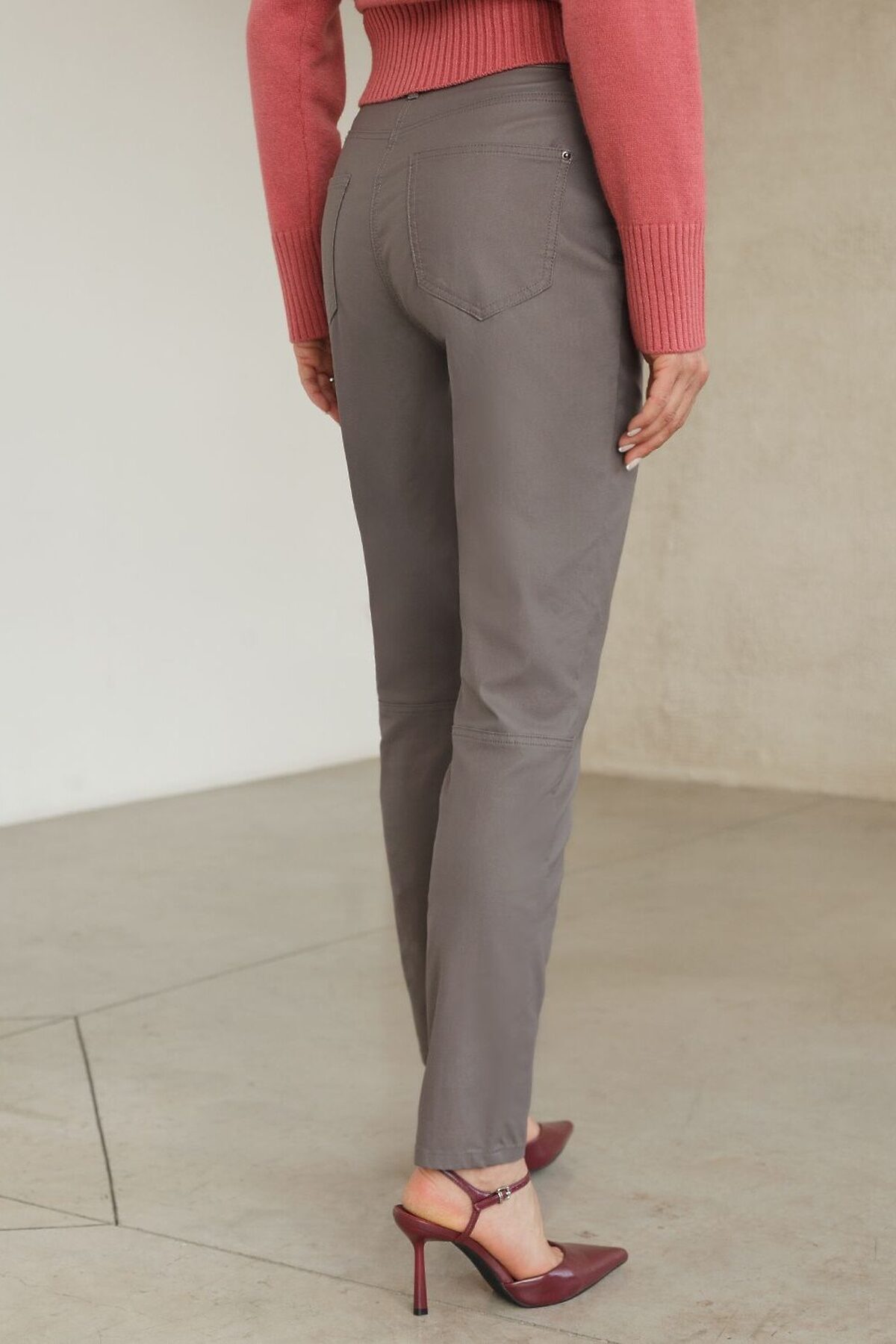 Удобная посадка по фигуре подчеркивает силуэт, а покрытие создает эффект натуральной кожи, добавляя образу дерзости. Благодаря эластичному материалу брюки не сковывают движений, обеспечивая максимальный комфорт в течение всего дня. Универсальная модель коричневого цвета легко сочетается с объемным свитером для повседневного лука или с классической рубашкой и блейзером для более строгого образа. Практичный материал устойчив к износу и не требует особого ухода. Эти брюки – must-have для тех, кто ценит стиль, удобство и современные тренды.