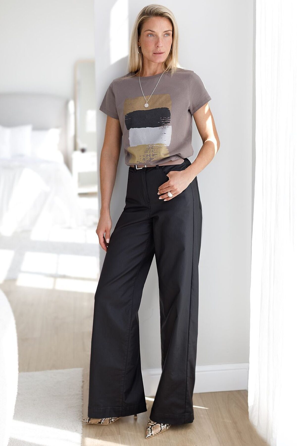 Универсальная модель для базового гардероба. Прямой свободный крой по всей длине создает сдержанный силуэт, идеальный для офиса и повседневной носки. Плотный хлопок с эффектом кожи обеспечивает комфорт и элегантный внешний вид. Классическая высота пояса гарантирует удобство, а минималистичный дизайн делает эти брюки отличной основой для деловых образов. Сочетайте с рубашками и жакетами для офиса или с простыми топами для повседневного стиля. Практичный материал сохраняет форму и не требует особого ухода. Коричневый цвет легко впишется в любой гардероб.