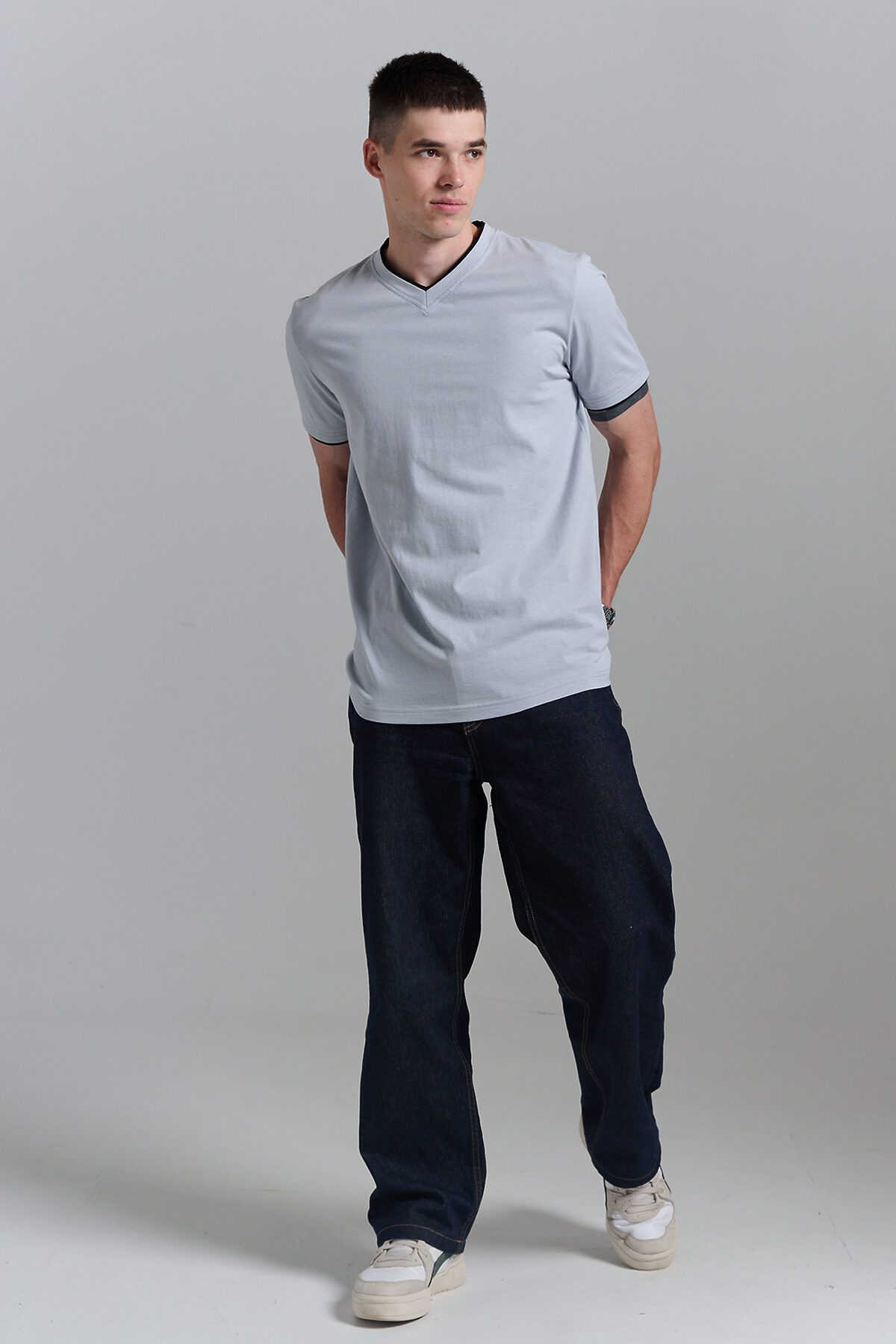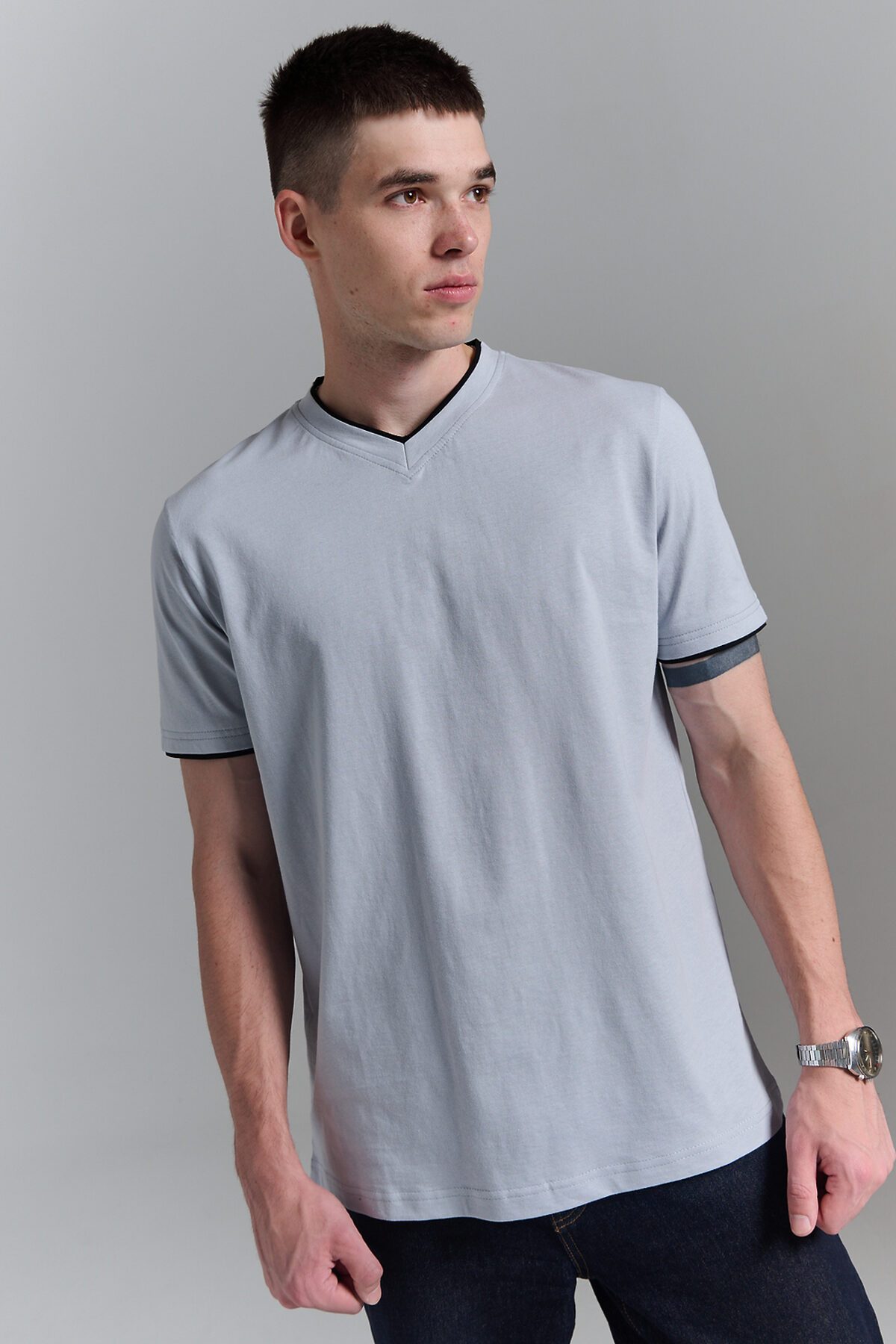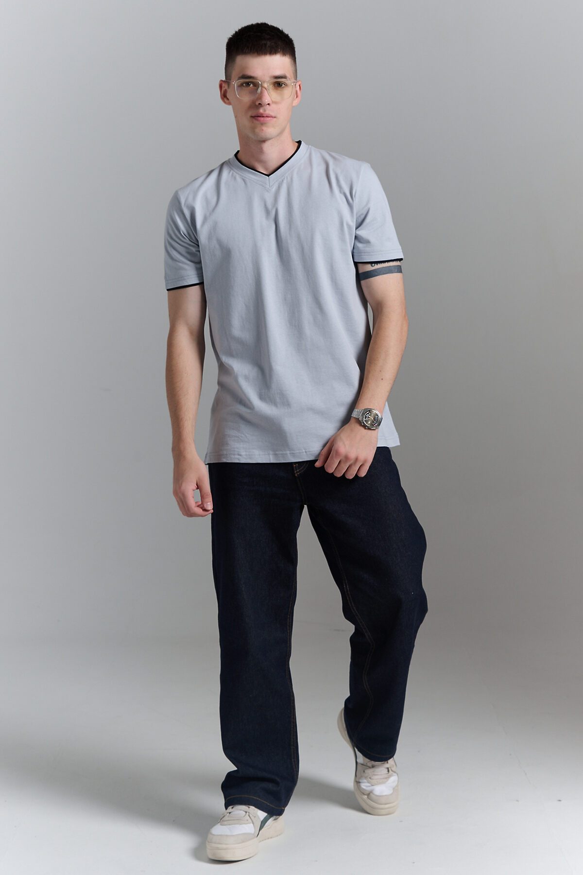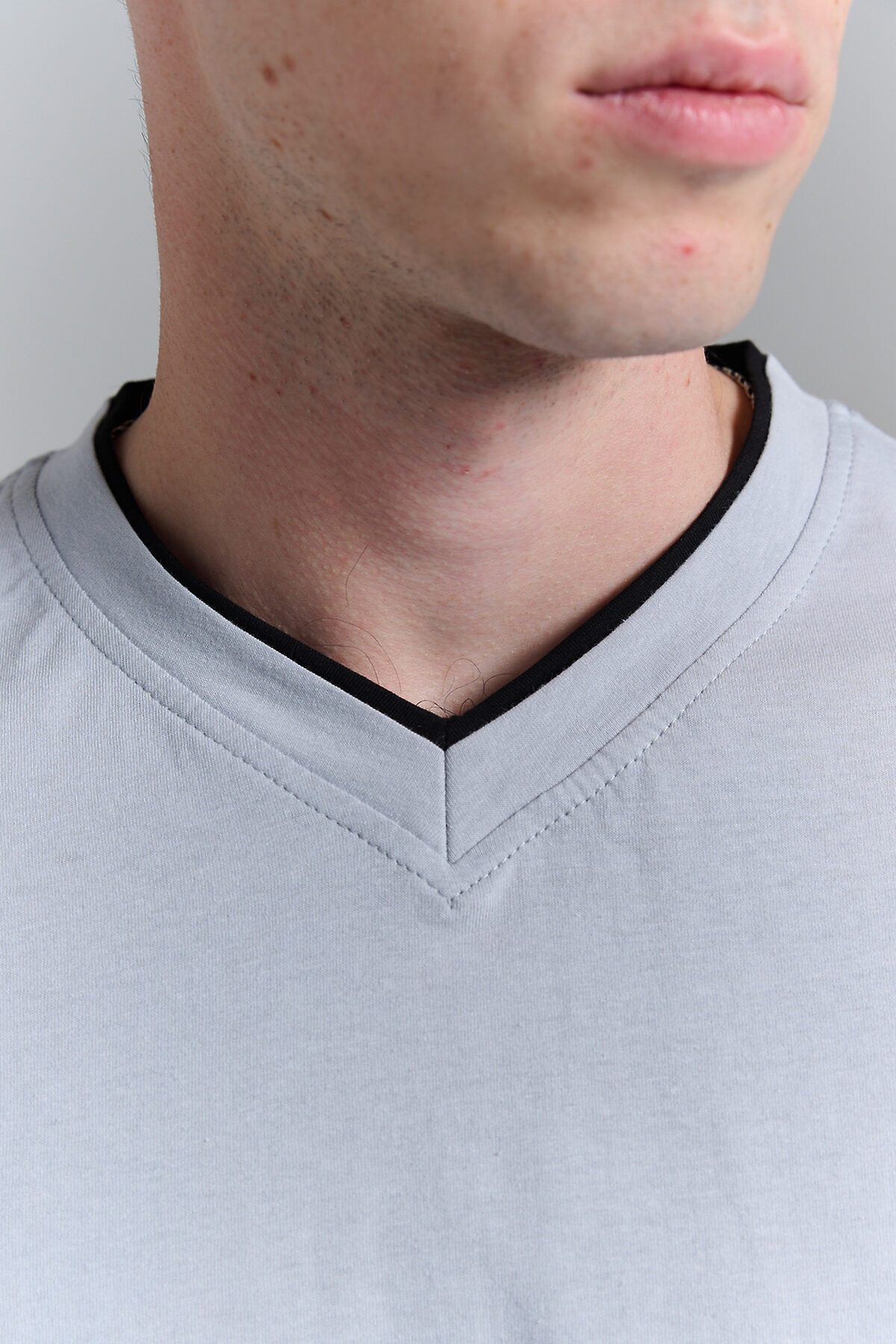 Футболка мужская однотонная с окантовкой из плотного дышащего хлопка. Модель в расслабленном молодежном стиле. Свободный прямой крой база для любого гардероба. Представлены мягкие футболки стандартных размеров, подходят на высокий рост. С усиленным V-Образным вырезом и окантовкой, подойдет для тренировок, офиса, учебы, активного отдыха, туристических поездок, встреч с друзьями и дома.