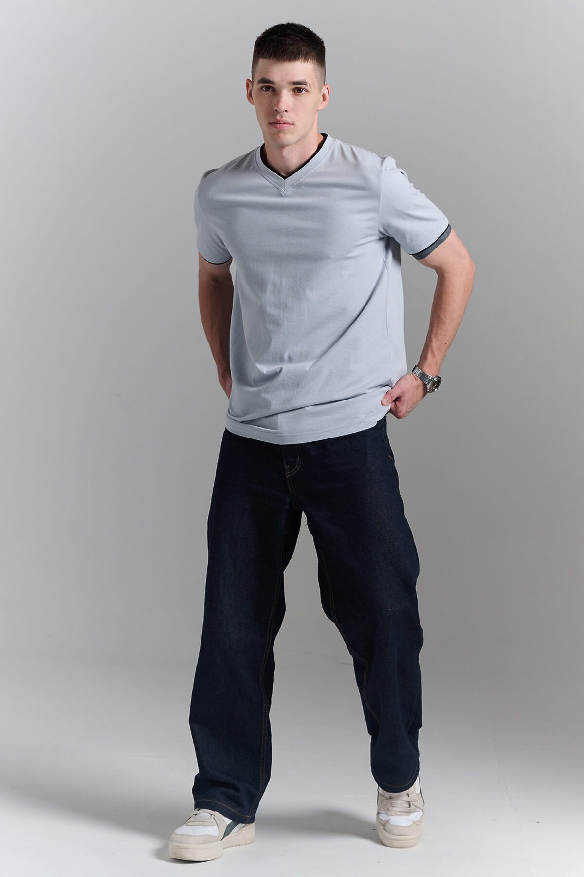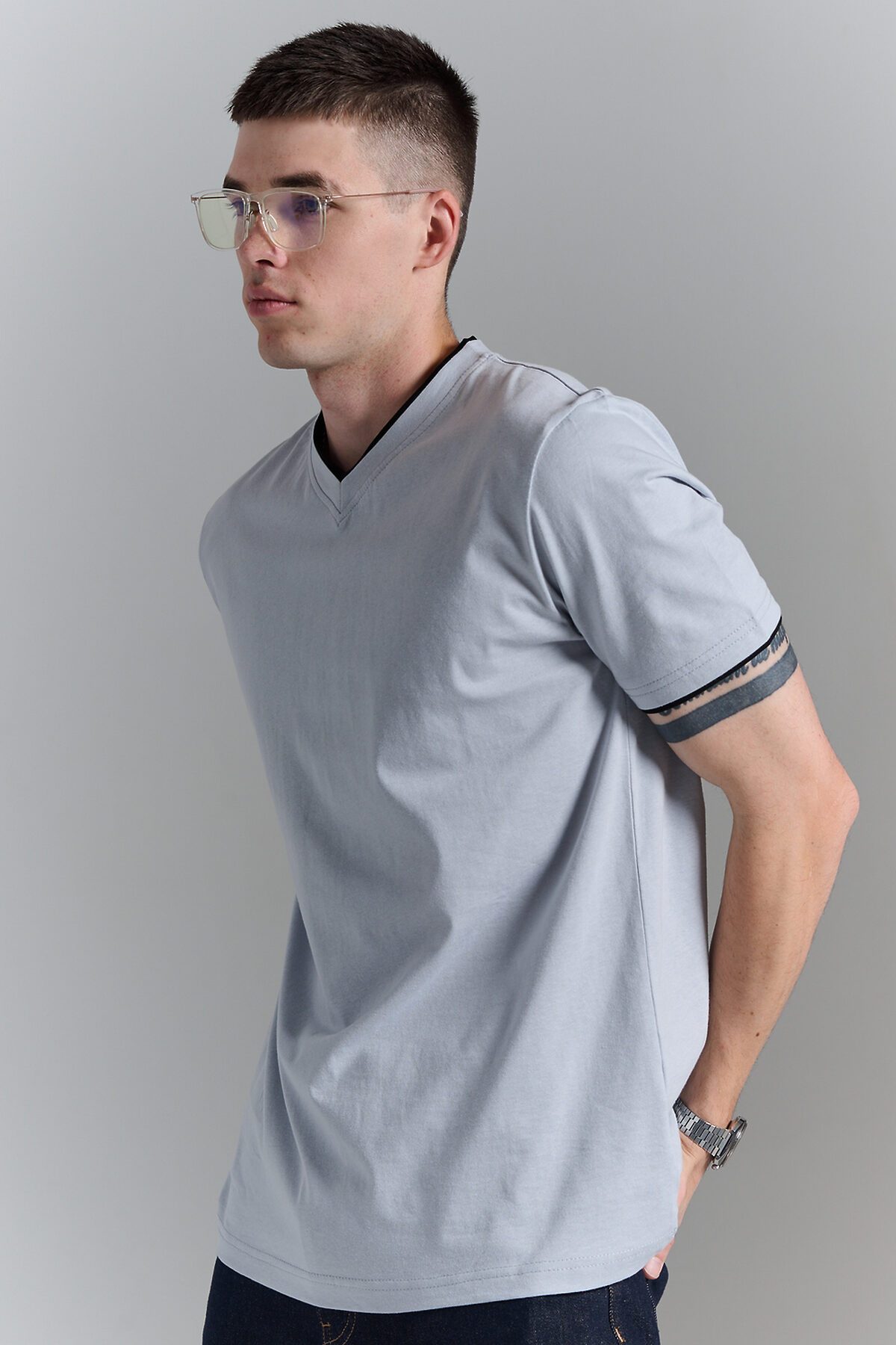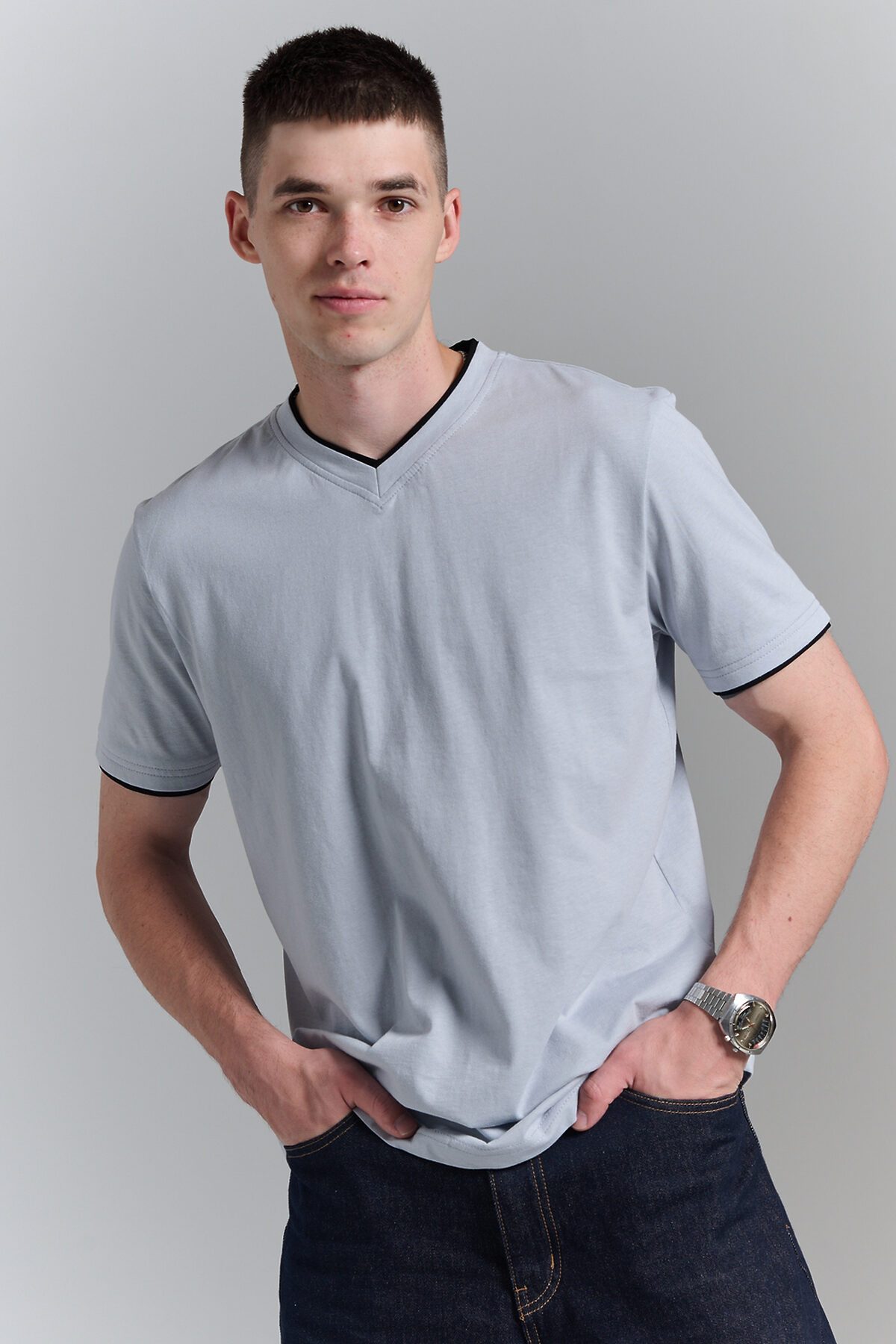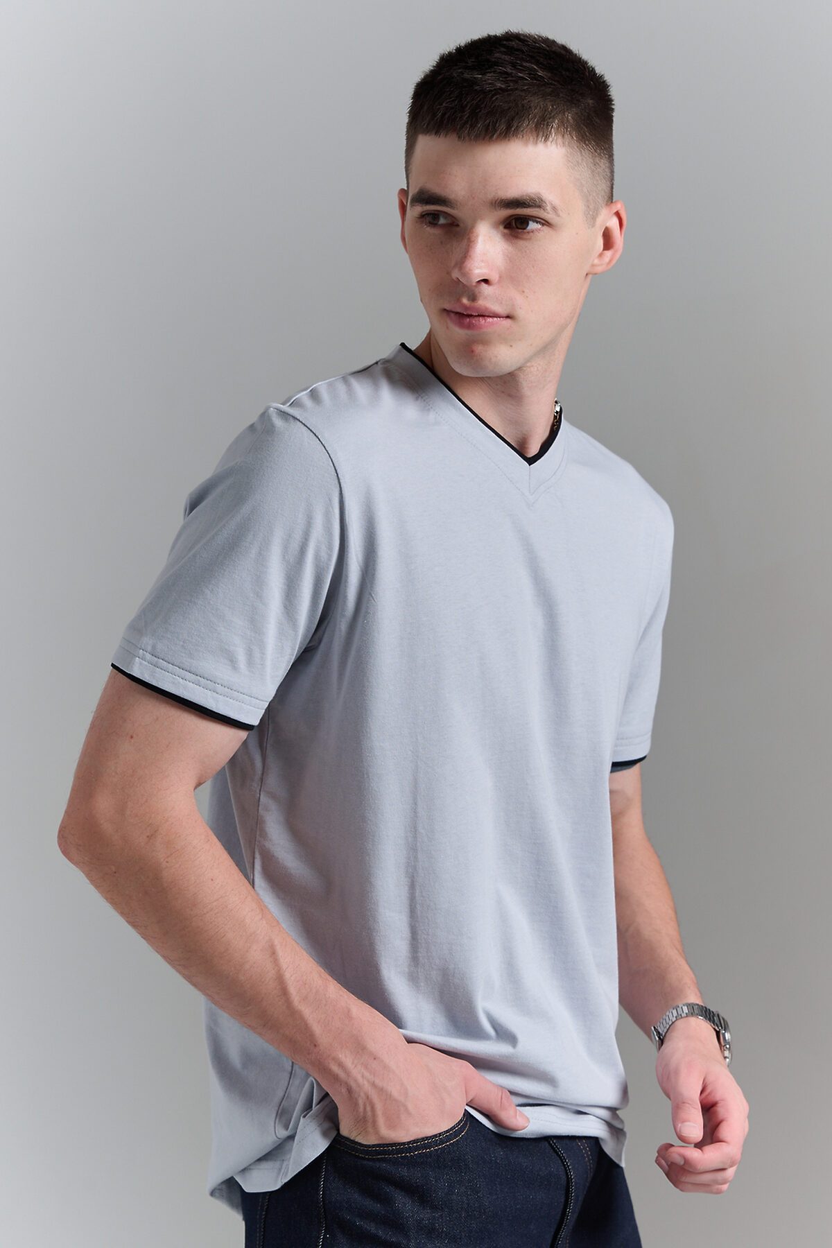 Футболка мужская однотонная с окантовкой из плотного дышащего хлопка. Модель в расслабленном молодежном стиле. Свободный прямой крой база для любого гардероба. Представлены мягкие футболки стандартных размеров, подходят на высокий рост. С усиленным V-Образным вырезом и окантовкой, подойдет для тренировок, офиса, учебы, активного отдыха, туристических поездок, встреч с друзьями и дома.