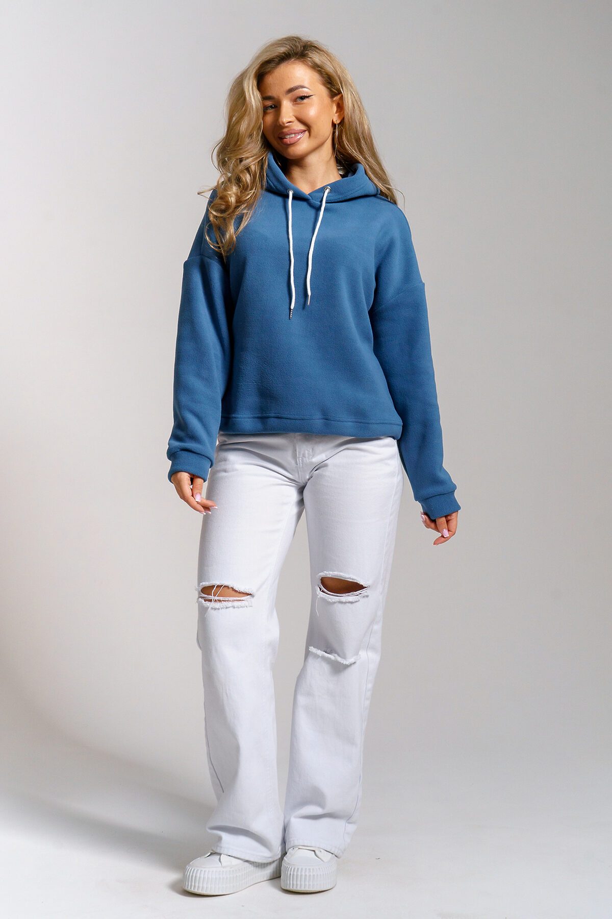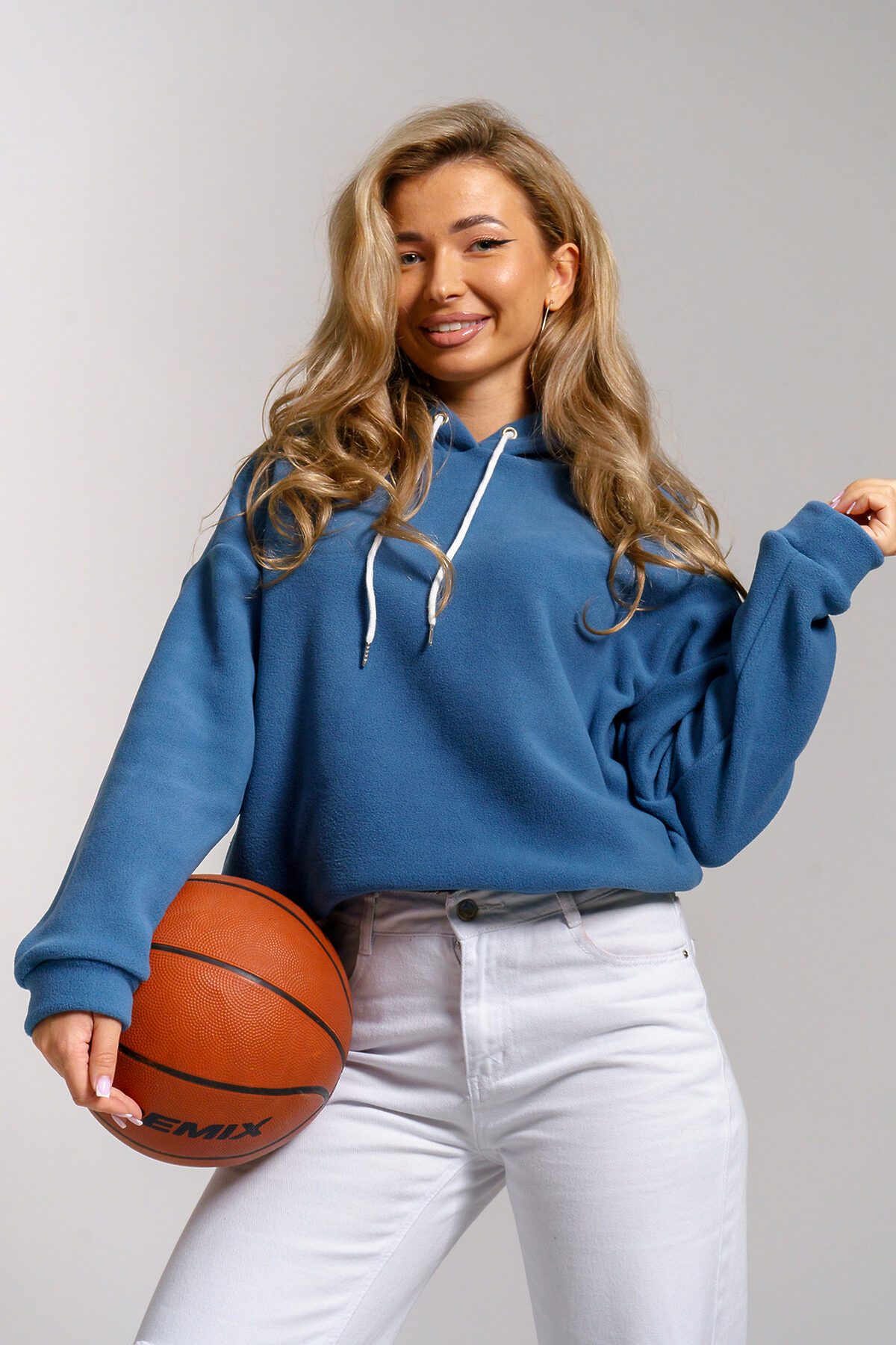 Женская толстовка выполнена из флиса высокого качества. Флис - ткань с ворсистой поверхностью, что позволяет эффективно сохранять тепло. Материал прочный, эластичный, влагостойкий. Хорошо пропускает влагу, при этом не впитывает ее. По теплостойкости превосходит шерсть, но намного легче. Воздухопроницаемая гигроскопичная ткань создает для тела комфортный микроклимат. Материал гипоаллергенный, подходит для изготовления одежды детям, в том числе новорожденным. Изделия из флиса легкие, не мнутся, не деформируются, не вытягиваются. В такой одежде удобно и комфортно. Эластичность материала позволяет легко двигаться. Толстовка с капюшоном и шнурком. Линия плеча спущена, длинный рукав. По низу толстовки имеется резинка с фиксатором, с помощью которой Вы можете собрать изделие как вам хочется и нравится. Свободный крой прекрасно будет смотреться на дамах с любыми формами. Толстовка такого плана представлена в широкой размерной сетке, что позволяет выбрать её как девушке, так и женщине. Однотонная толстовка модных расцветок будет удачным выбором для поездок в отпуск, на пикник, для школы, для активного отдыха и прогулок по городу. Будет гармонично сочетаться с брюками, джинсами, кроссовками и ботинками. Используя эту модель в качестве домашней одежды Вы поймёте, что это именно тот самый идеальный вариант, в котором будете себя чувствовать удобно, комфортно и современно. Толстовка - это настоящая находка для тех, кто ценит свою индивидуальность! Ориентируясь по таблице замеров, обратите внимание, что замеры длины рукава проводились от точки основания шеи.