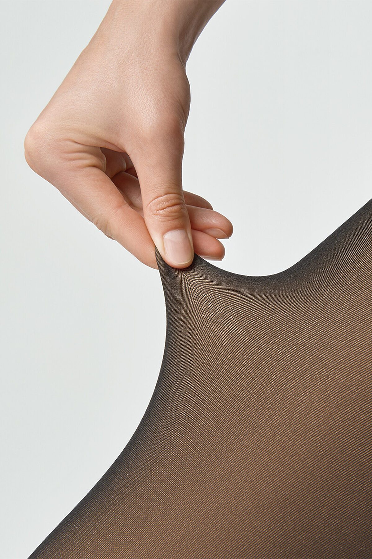 Женские зимние колготки 230 den с флисом на внутренней стороне, терморегулирующим эффектом и имитацией прозрачных колготок. Теплый ворс на внутренней стороне приятно ощущается на коже, бережно сохраняет тепло и обеспечивает терморегулирующий эффект, который позволяет поддерживать оптимальную температуру. При производстве используются два вида пряжи и специальная технология вязания, благодаря которой создается эффект тонких полупрозрачных колготок. Широкий пояс, плоские швы и гигиеничная ластовица создают максимальный комфорт. Ступня модели выполнена без утепления флисом, поэтому колготки удобно носить как с зимней обувью, так и с туфлями.