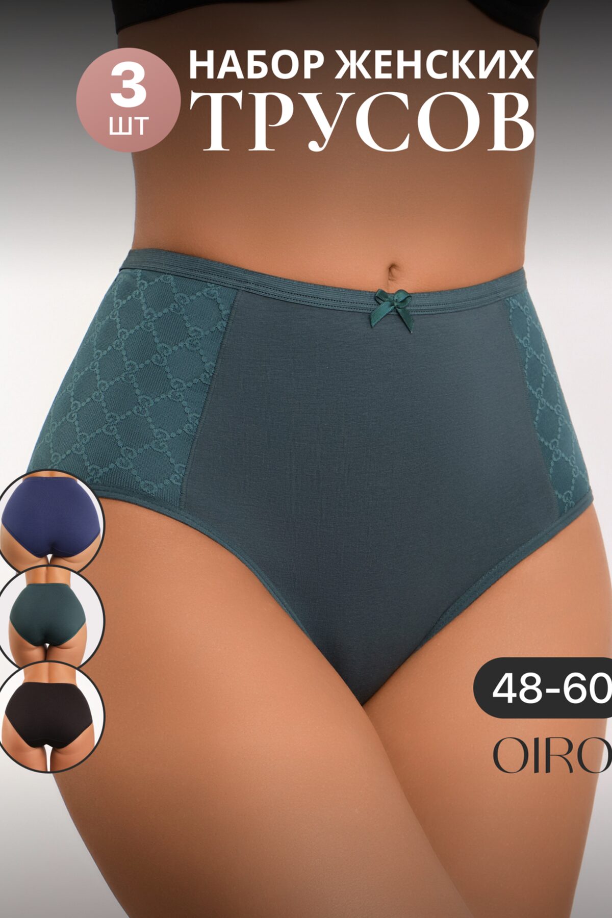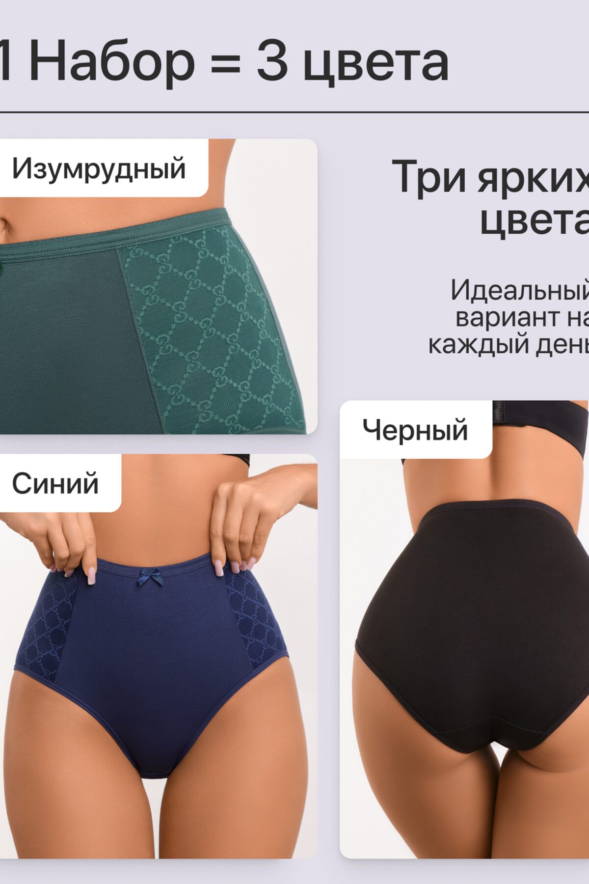 Трусы 3902 3 шт. хлопковые высокие НАТАЛИ, синий, черный, изумрудный