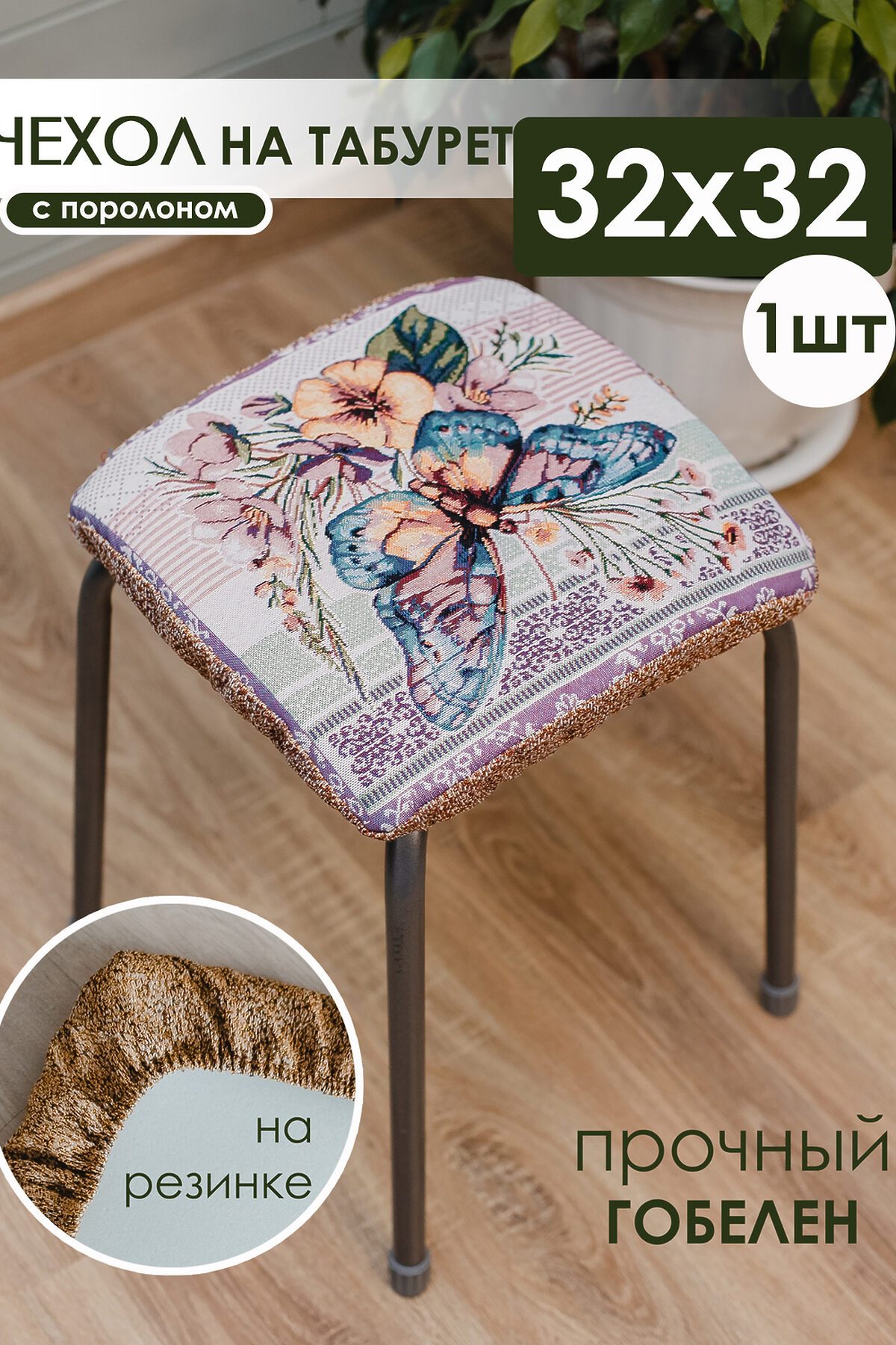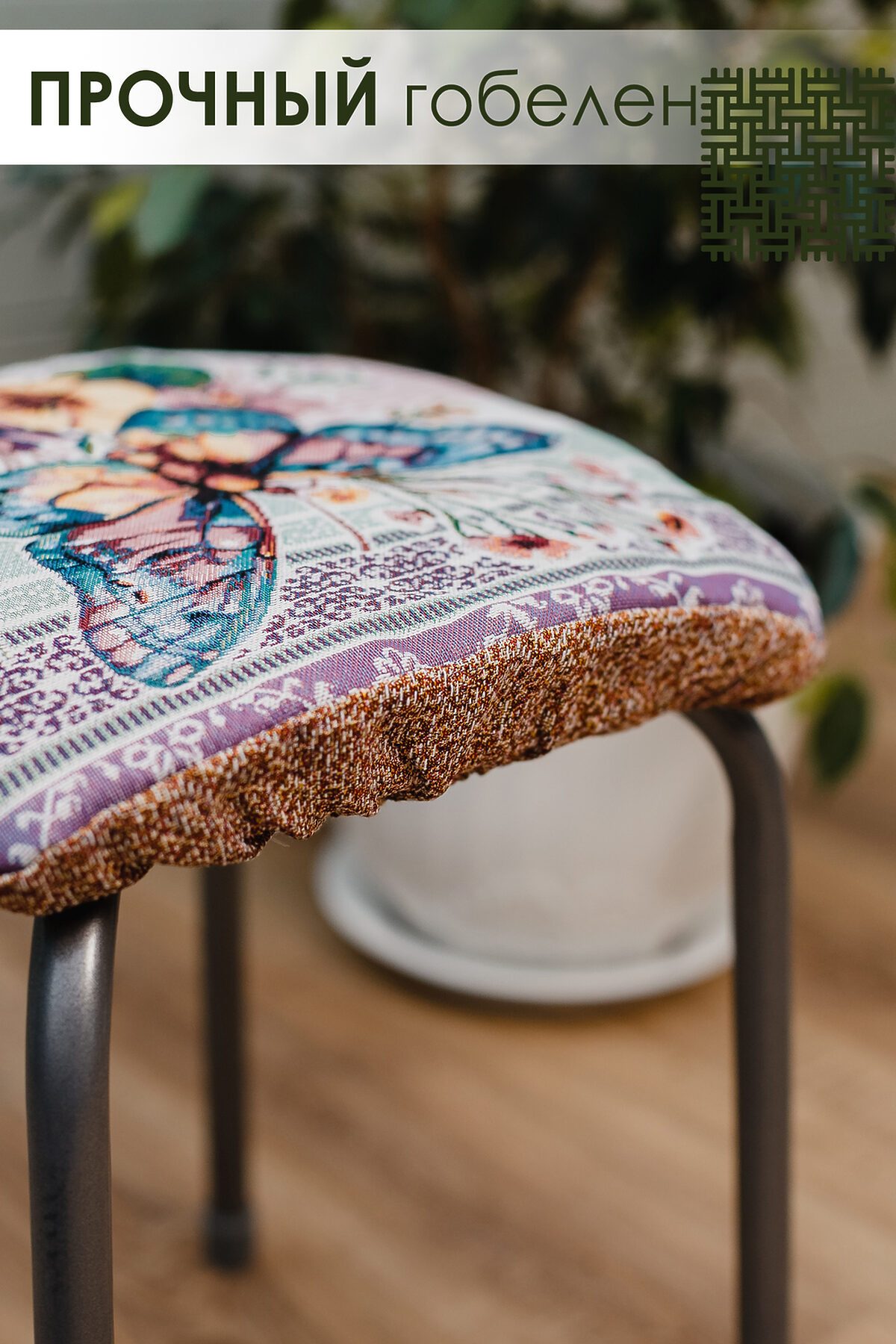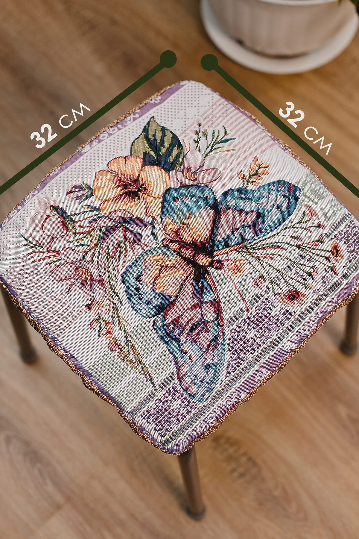 Подушка для мебели Сидушка на табурет квадратная НАТАЛИ, бабочка-фиолетовая