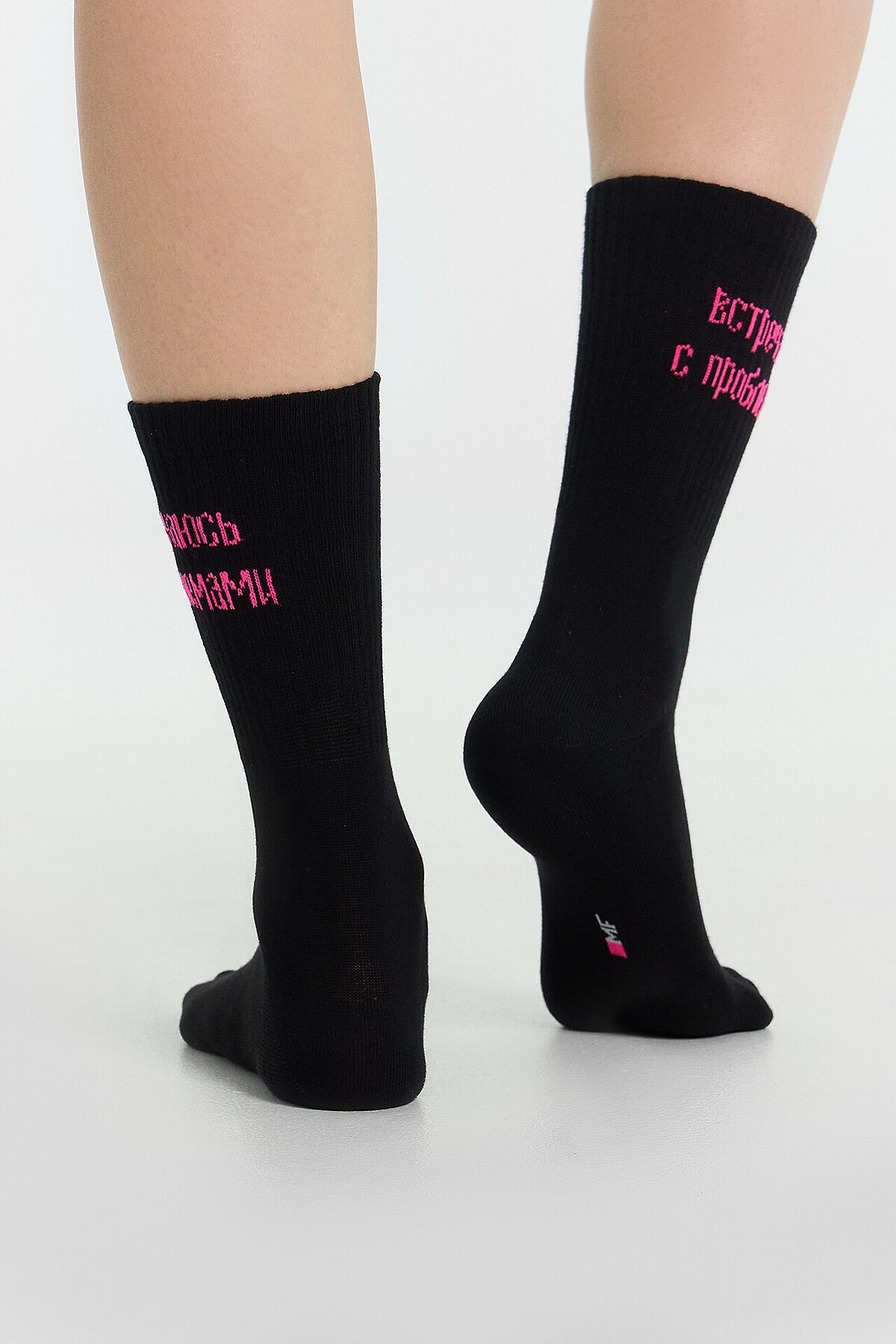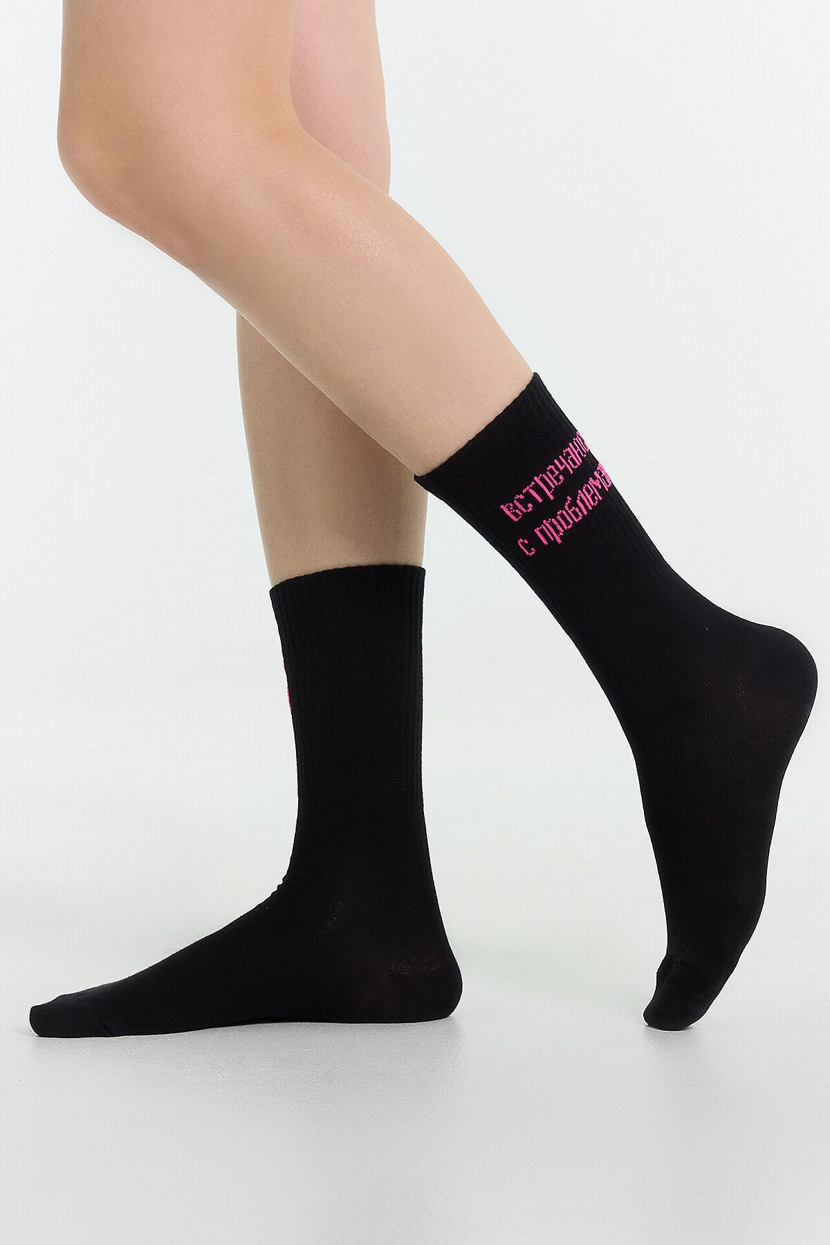 Высокие классические носки женские с плотной резинкой и рисунком в виде надписи "Встречаюсь с проблемами". Выполнены из высококачественного гребенного хлопка - тонкого, прочного и эластичного. Натуральные волокна отлично пропускают воздух и впитывают влагу, обеспечивают ощущение комфорта в течение дня. Благодаря небольшому количеству эластана в составе, носочки хорошо облегают и сохраняют форму, практичны и долговечны. Пятка и мысок дополнительно усилены для защиты от протирания при активном движении. Резинка мягко, но надежно удерживает носки, не передавливая ногу и не оставляя на коже следов. Отличный вариант для зимних дней и новогодних праздников. Нежные, достаточно теплые и мягкие, создадут атмосферу тепла и уюта. Порадуйте себя и своих близких прекрасными носочками от Mark Formelle!