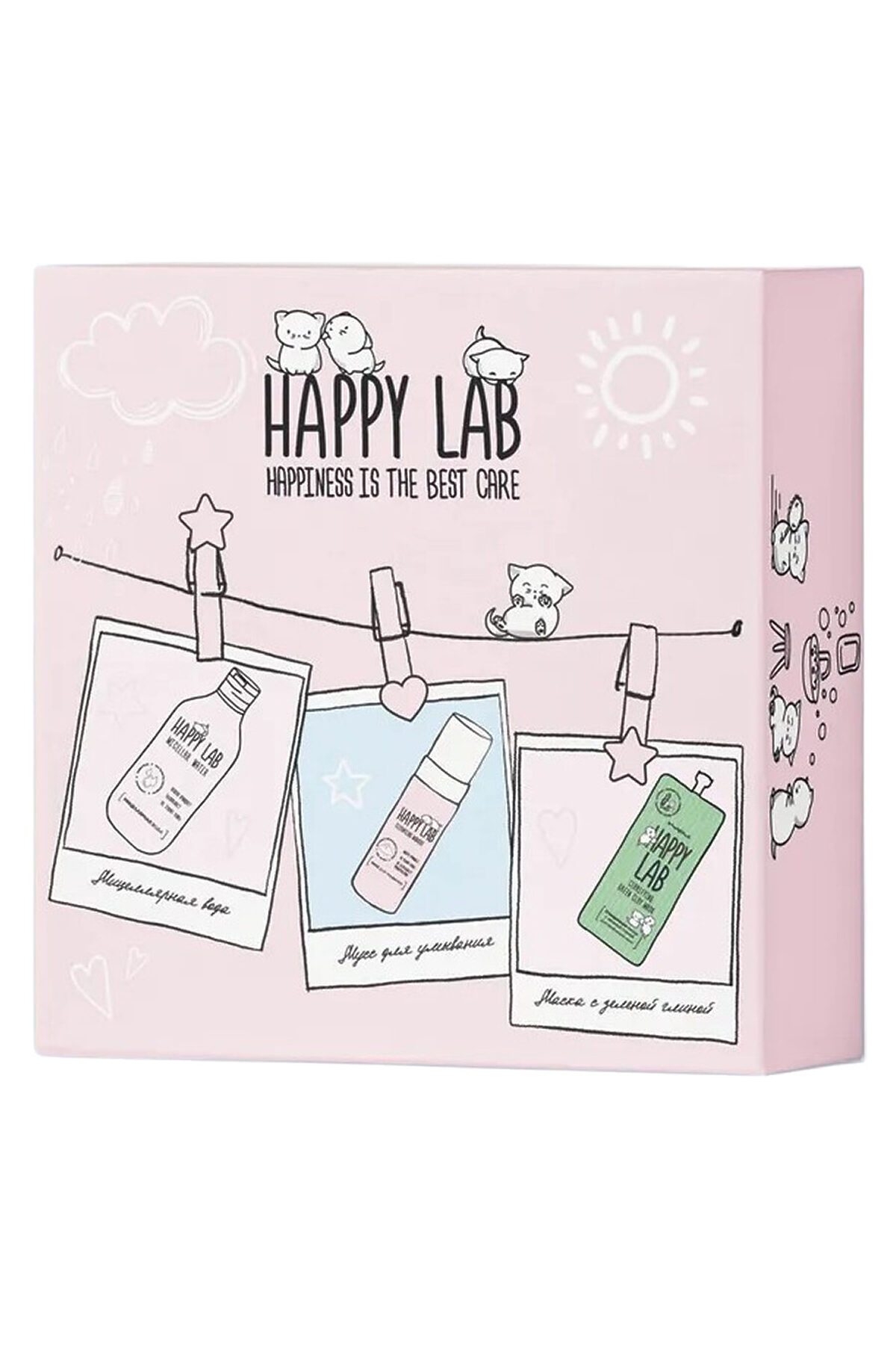 Happy Lab Набор средств для ухода за кожей лица Clean Face: Мицеллярная вода, мусс для умывания, очищающая маска, 300 мл, 150 мл, 20 мл KRISTALLER, ассорти