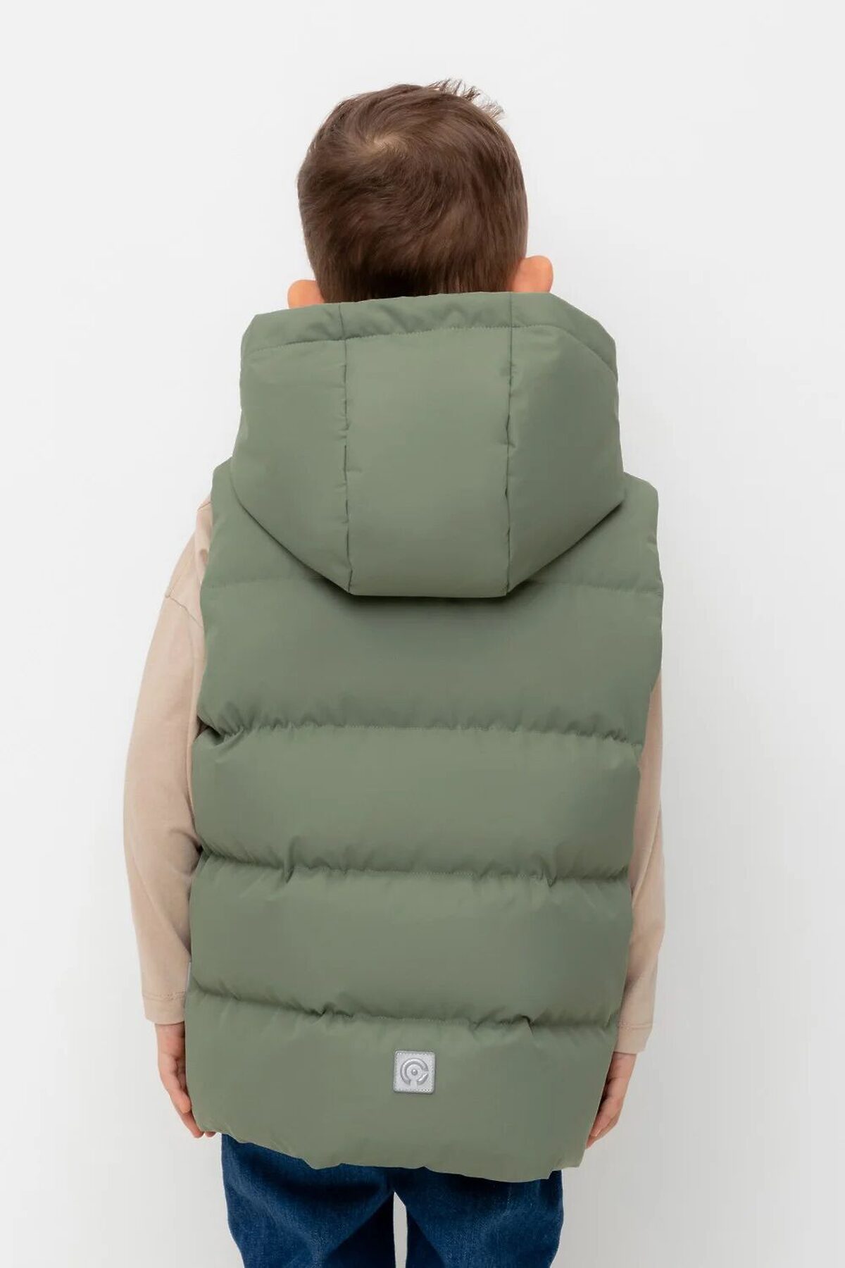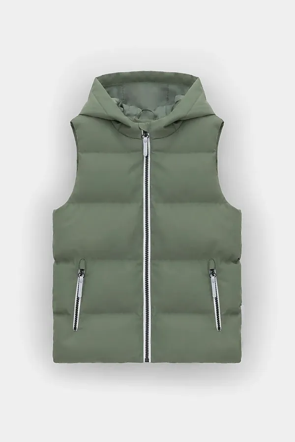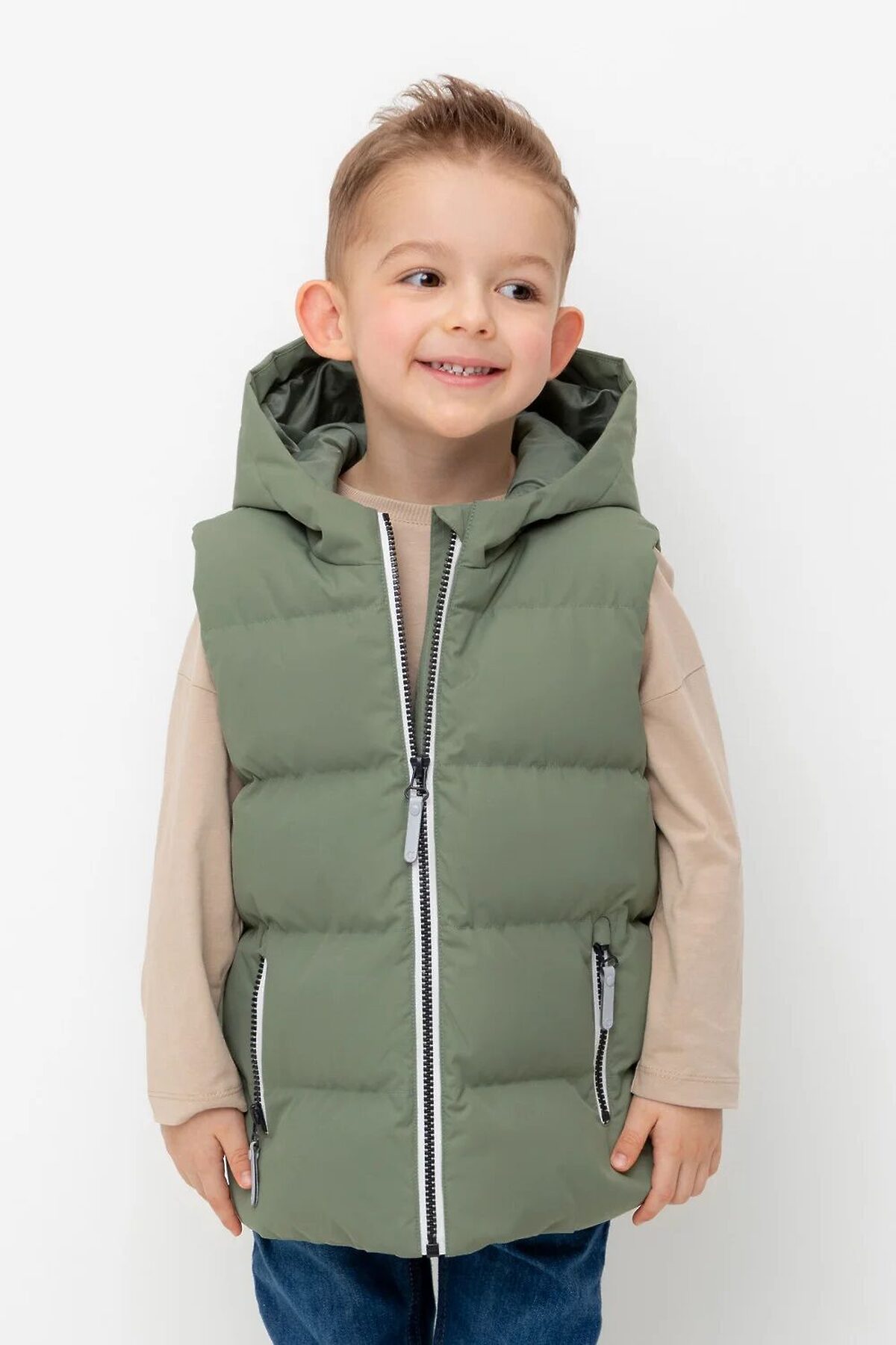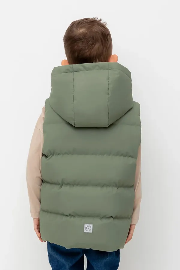 Стеганый жилет с капюшоном для мальчика с утеплителем Fellex®: 120 г/м2. Выполнен из мембранной ткани с дополнительной тефлоновой обработкой. Данный вид обработки предохраняет изделие от загрязнения и лучше отводит влагу. Подклад из 100% полиэстра. Капюшон не снимается. Изделие застёгивается на молнию, предусмотрена защита подбородка. Два кармана по бокам застёгиваются на молнии. Во всех изделиях верхнего ассортимента для безопасности ребенка предусмотрены светоотражающие элементы.
