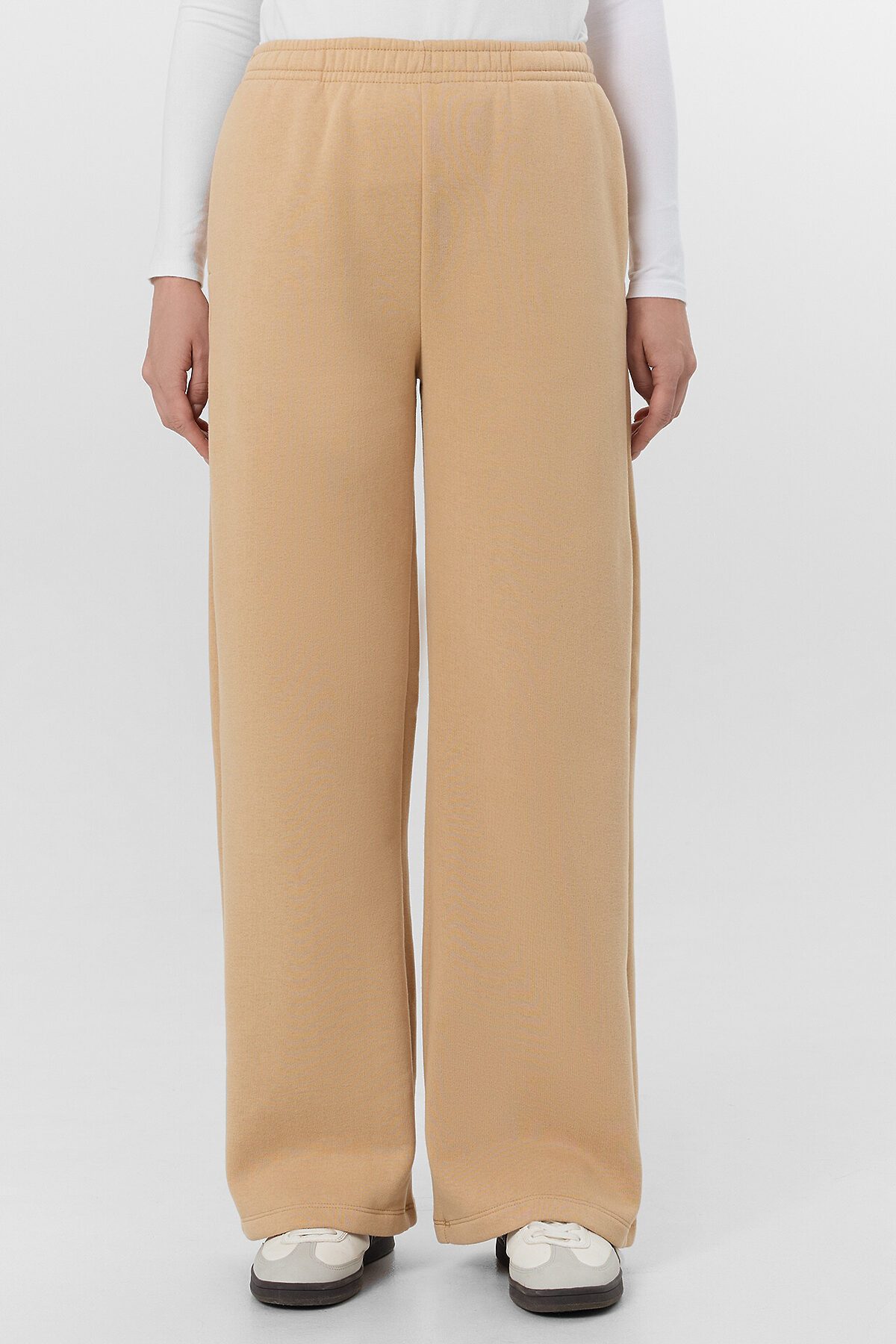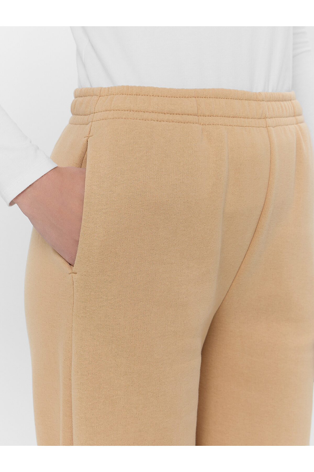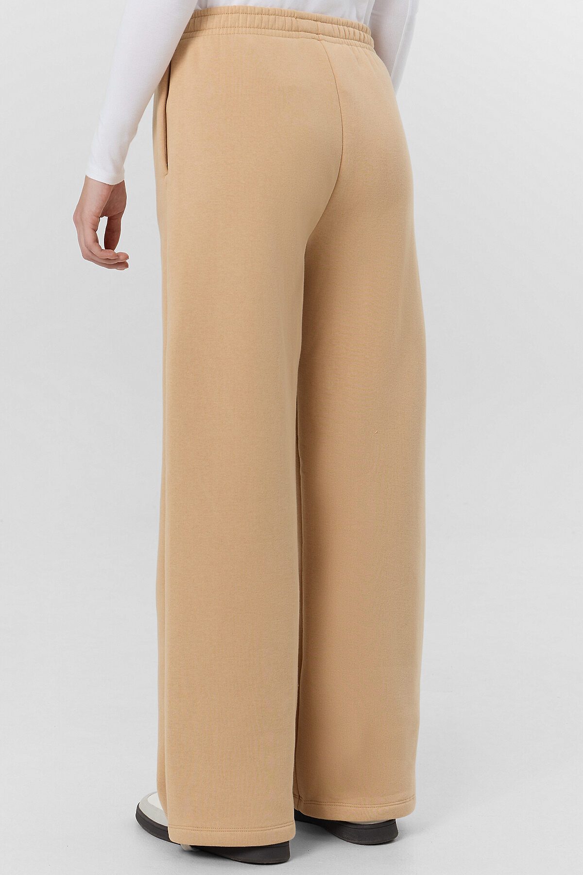 Брюки для девочек, прямого силуэта. Пояс цельнокроеный с втачной эластичной тесьмой RV40. Пояс прострочен двумя отделочными строчками. По переду обработаны карманы в швах. Низ брюк обработан швом в подгибку на двухигольной плоскошовной машине.