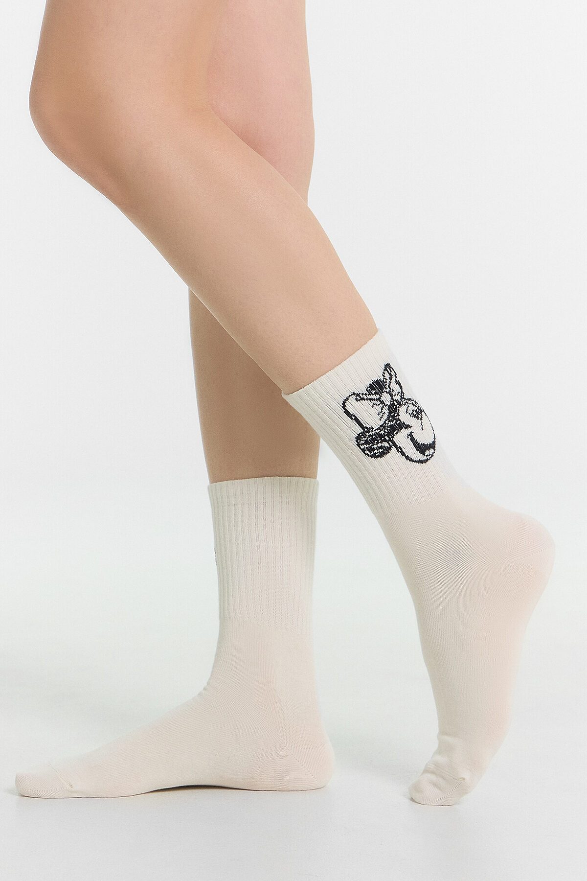 рис.2893 Женский носок с высоким плотным бортом и рисунком в виде Микки Мауса