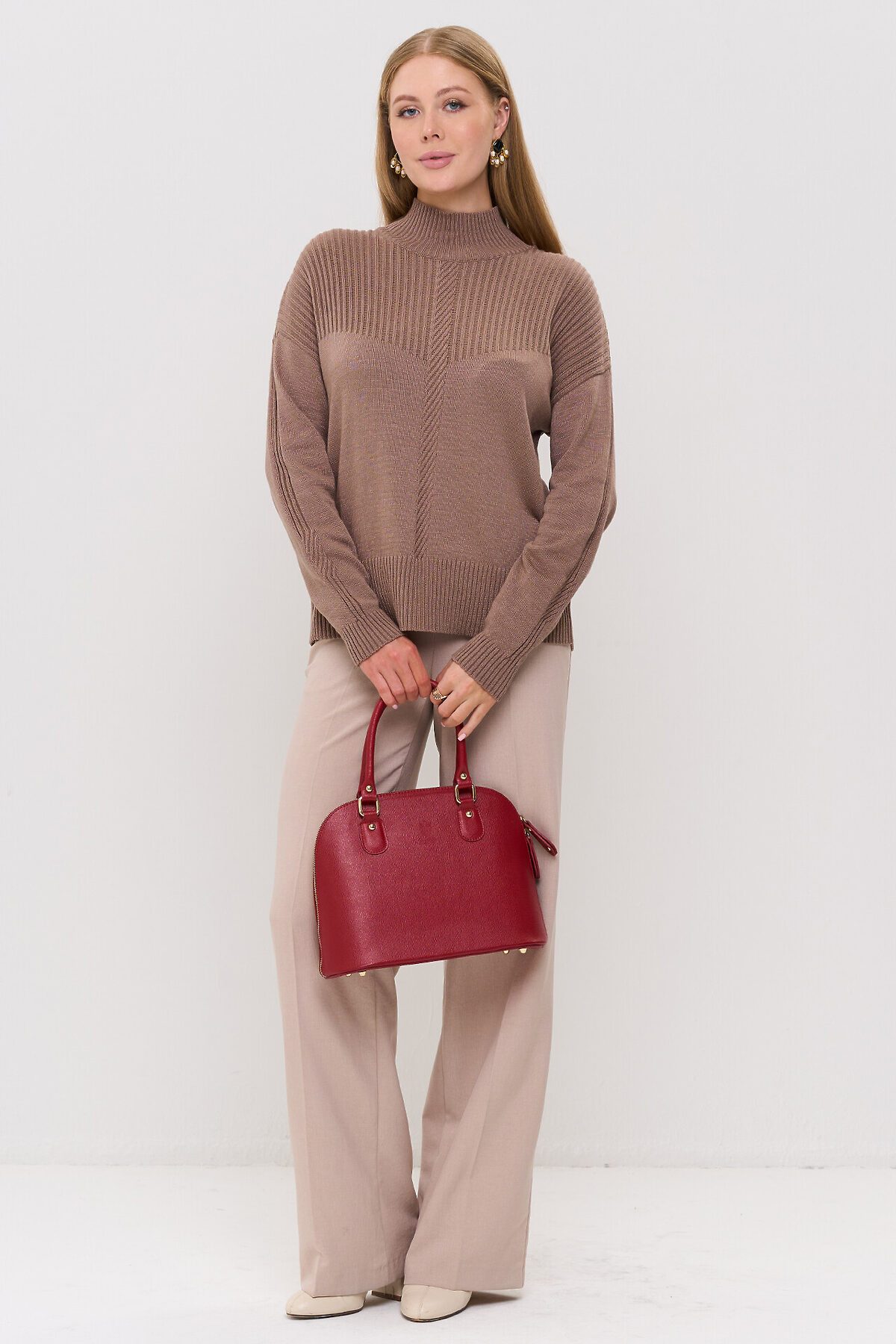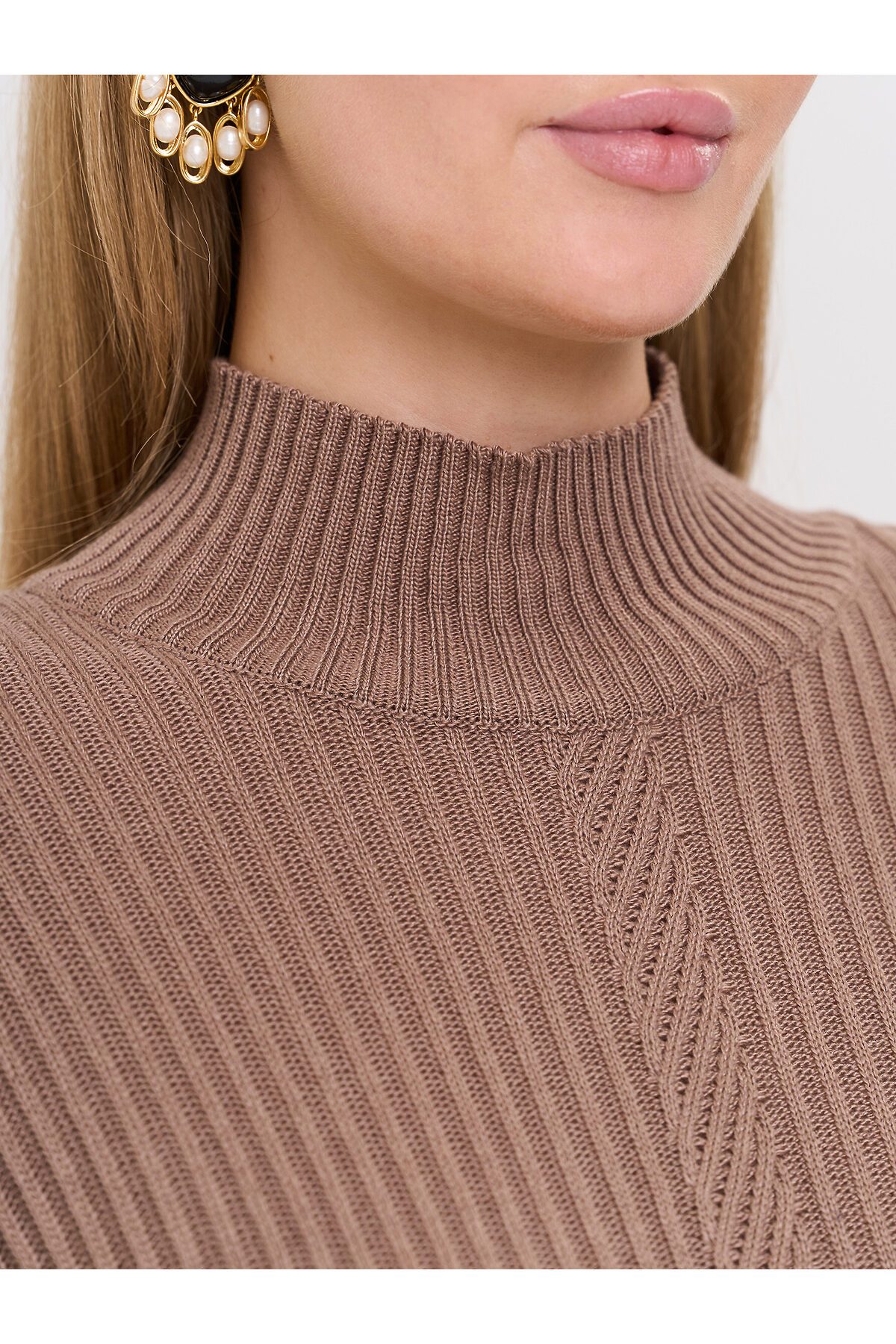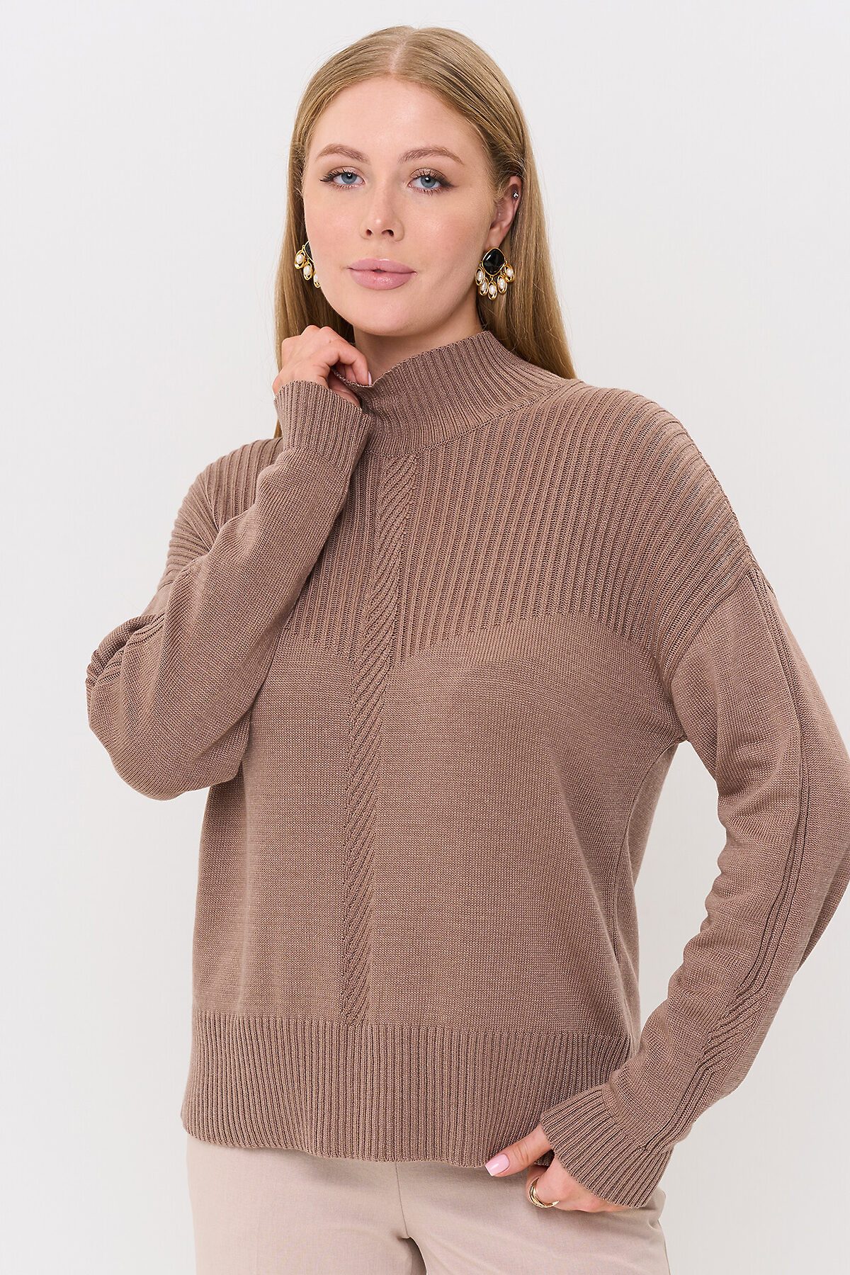 Вязаный джемпер с воротником-стойкой.