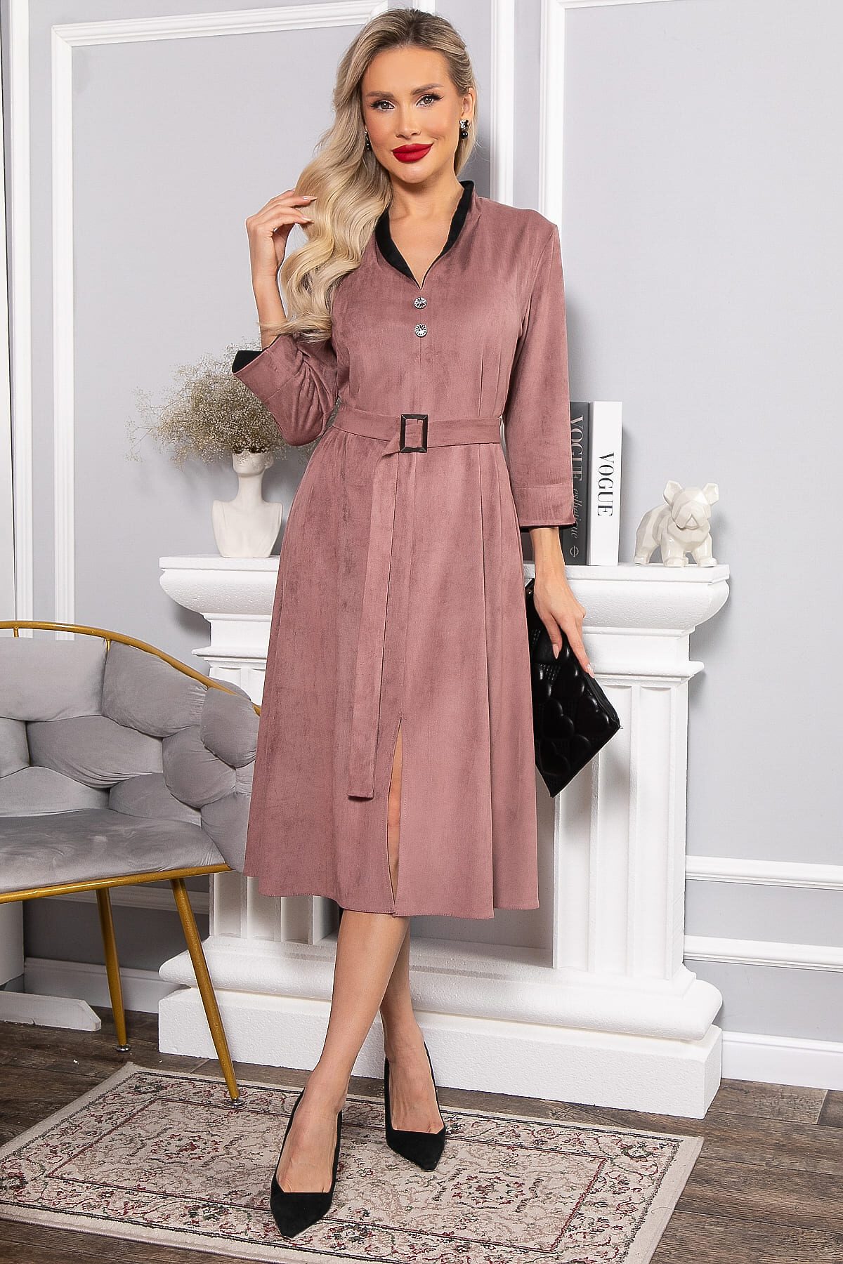 Элегантное платье полуприлегающего силуэта станет идеальным выбором для создания женственного образа! Спереди расположен интригующий разрез, придающий модели особый шарм. Уникальной особенностью этого платья являются декоративные элементы из ткани-компаньона на воротнике-стойке и манжетах рукавов. Втачные рукава длиной три четверти заканчиваются разрезом и украшены манжетами из ткани-компаньона. Воротник-стойка с обтачкой контрастного цвета плавно переходит в разрез у линии груди и продолжается рядом пуговиц до линии талии. В комплект входит пояс с пряжкой.