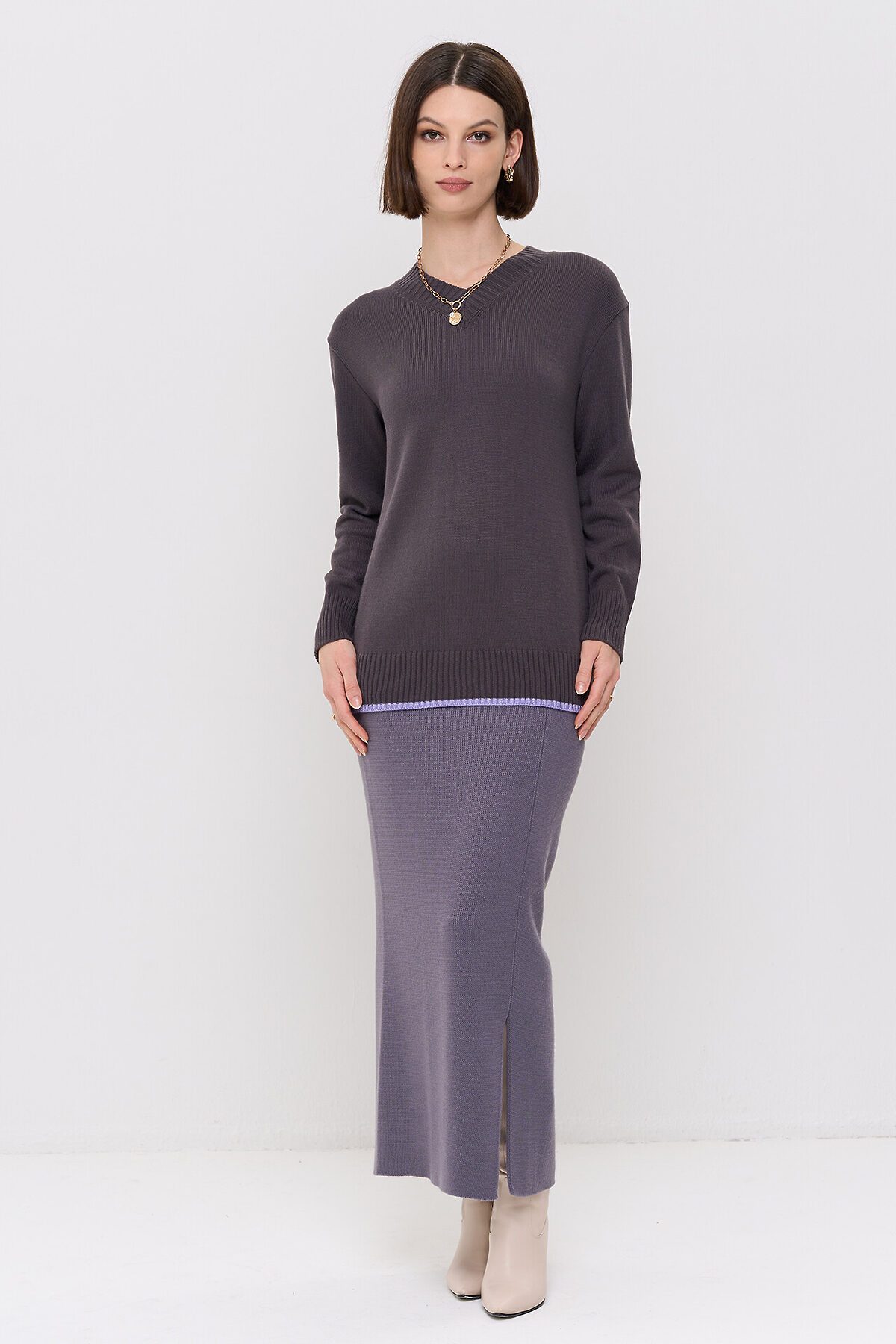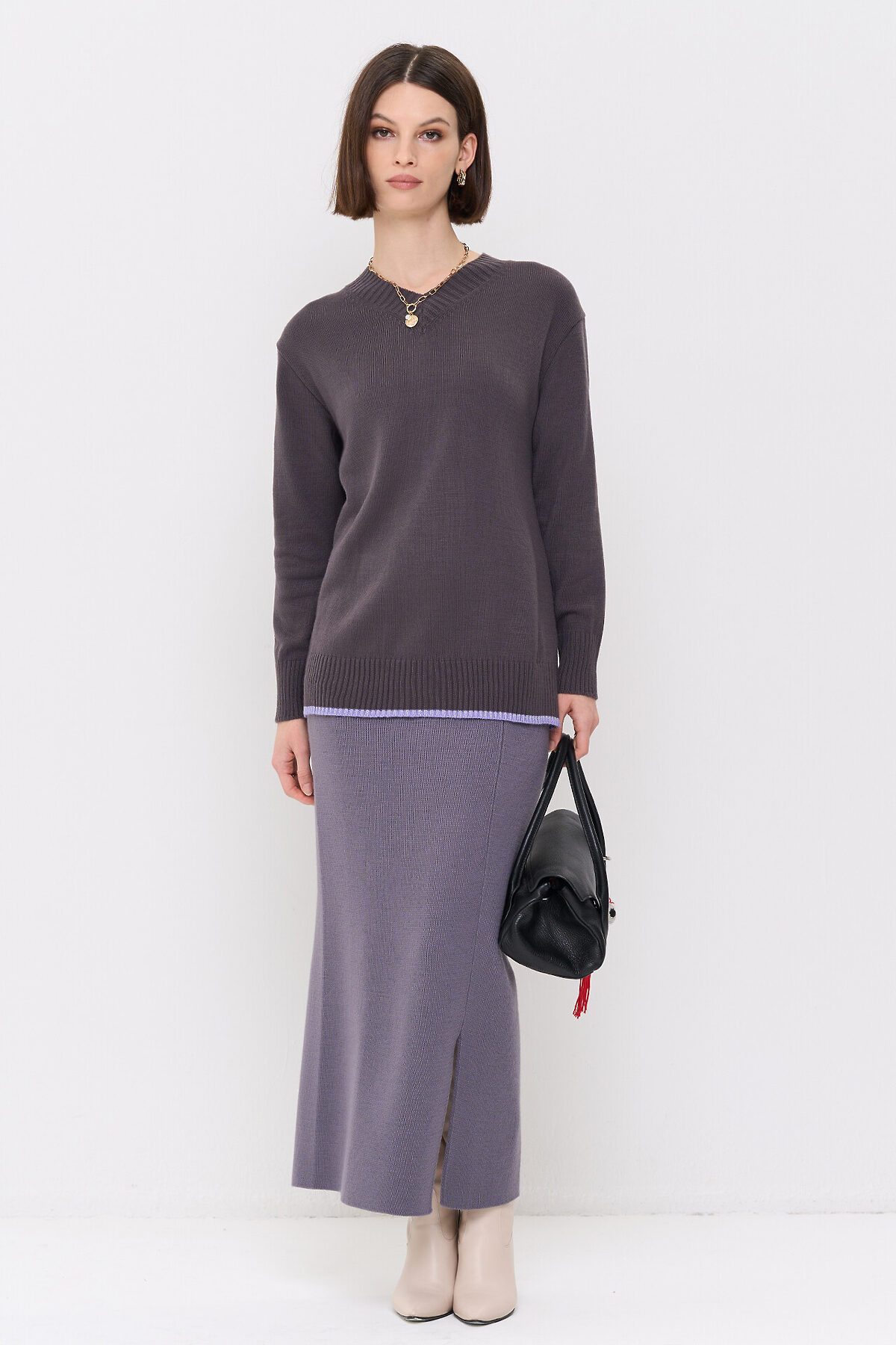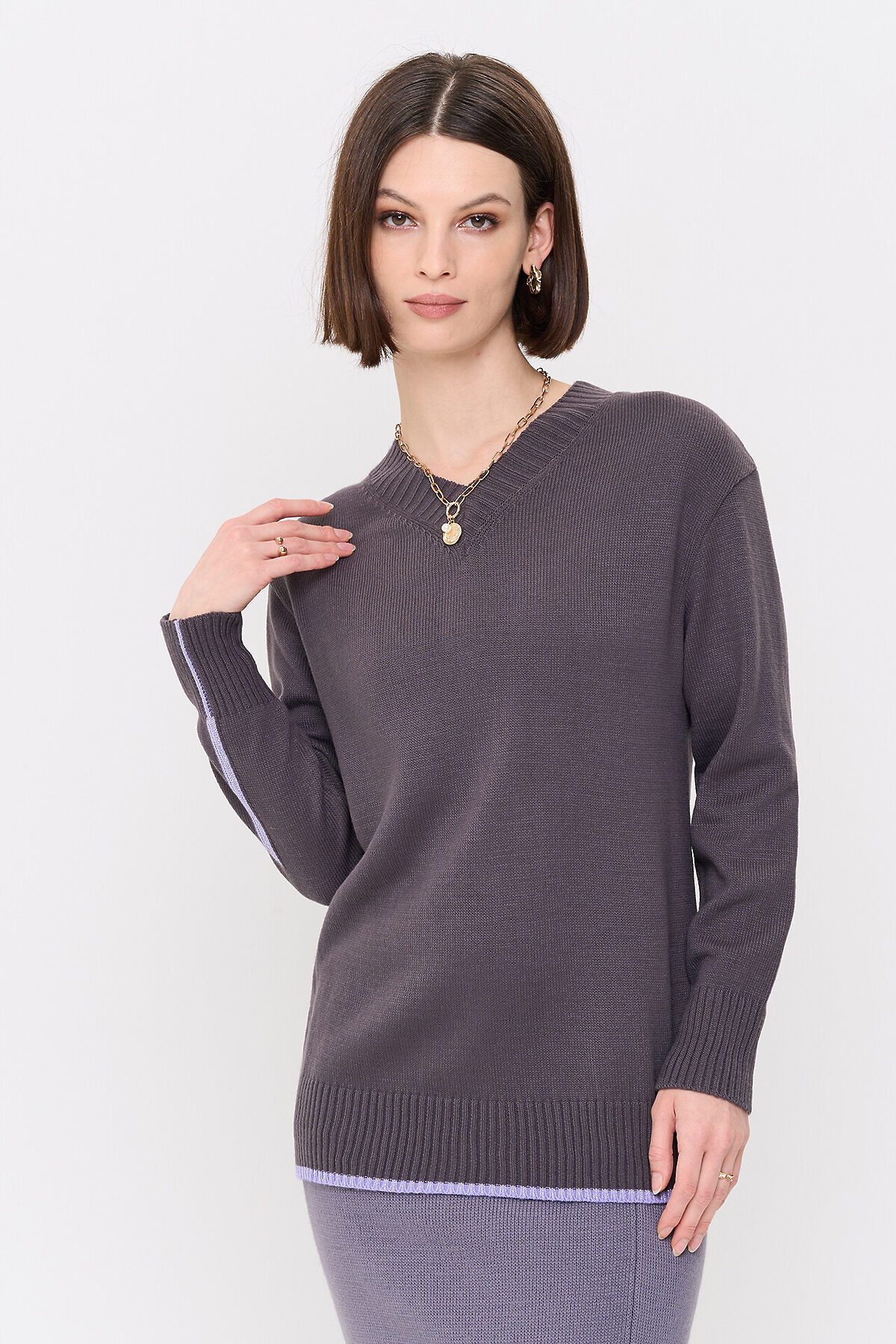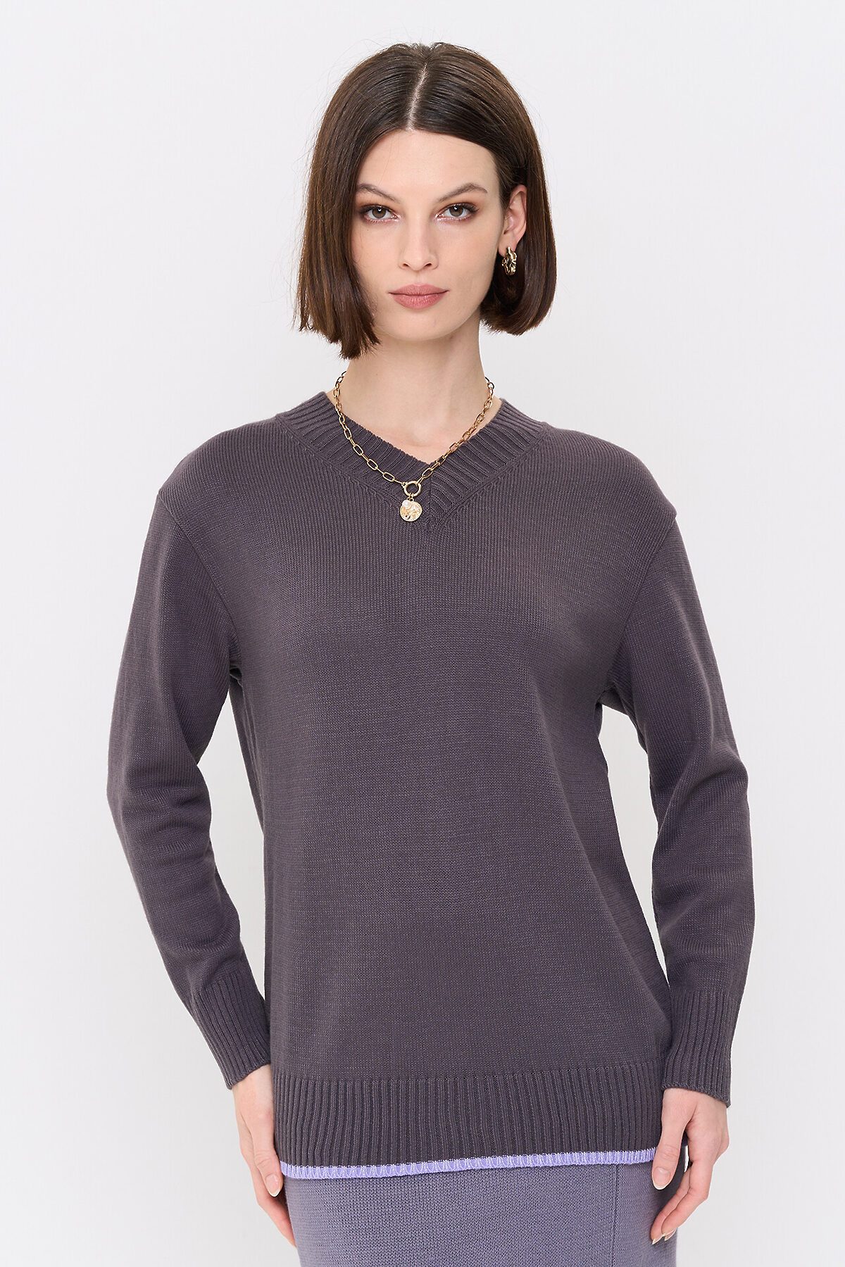 Вязаный джемпер с V-образным вырезом горловины.