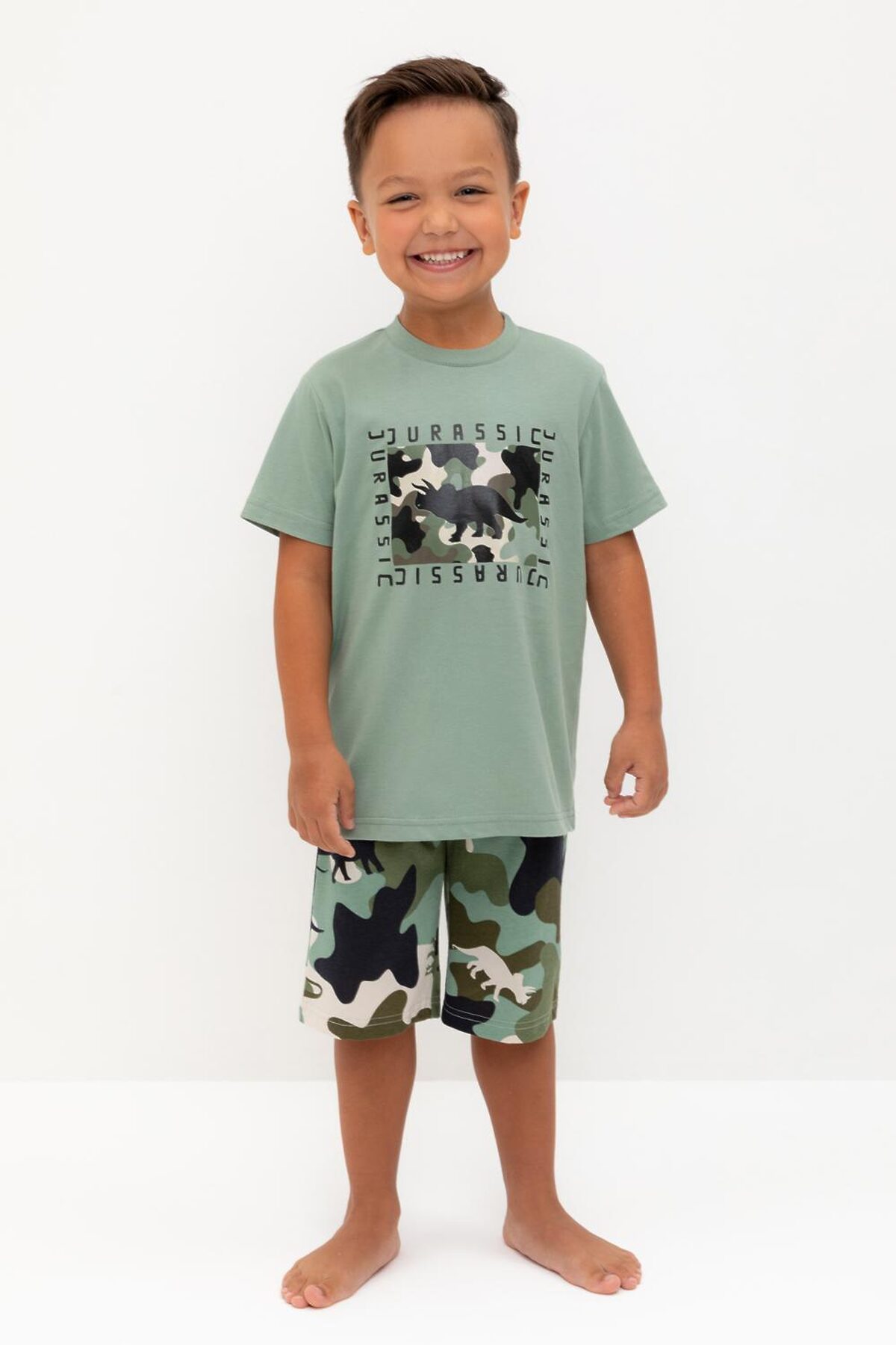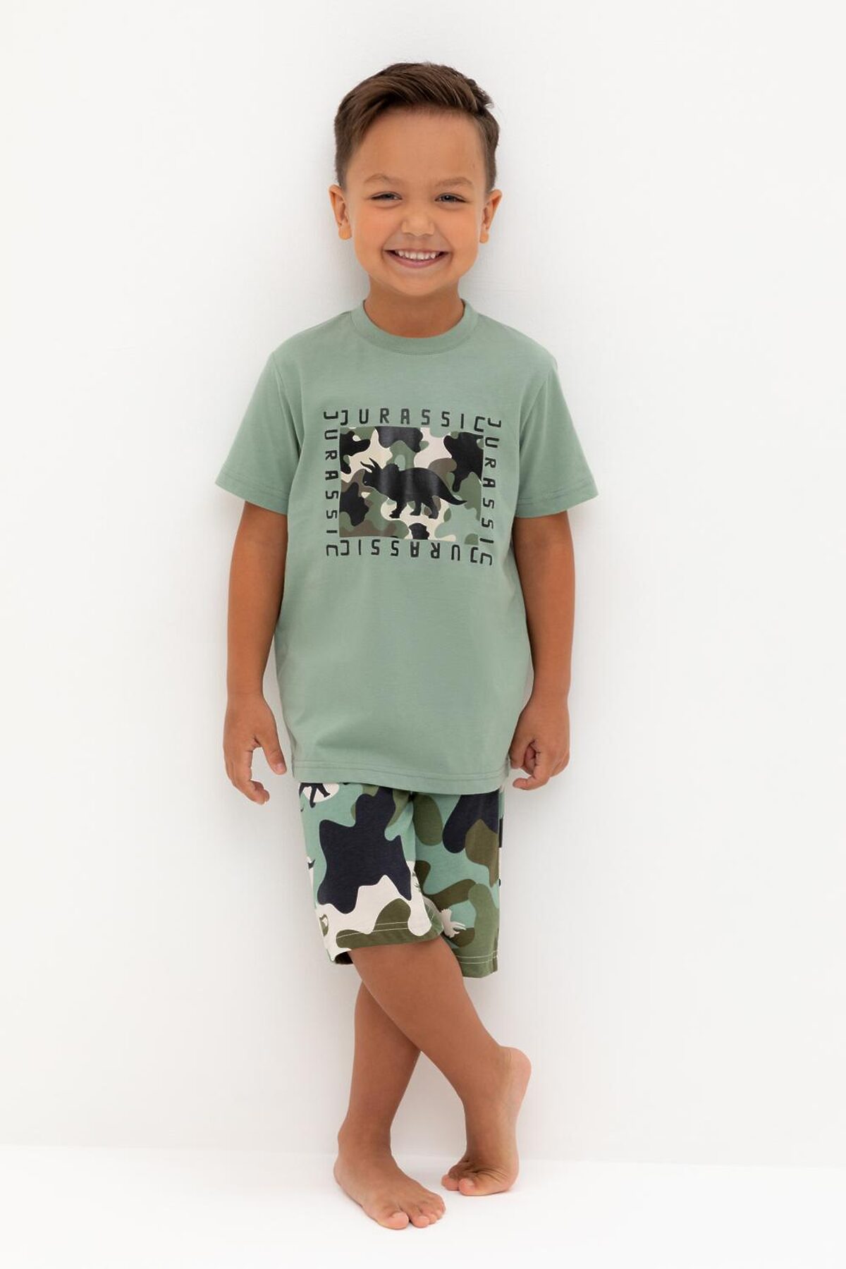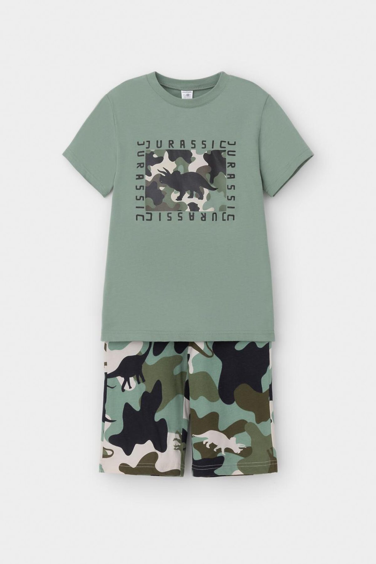 Пижама CROCKID, эвкалипт,камуфляж с динозаврами