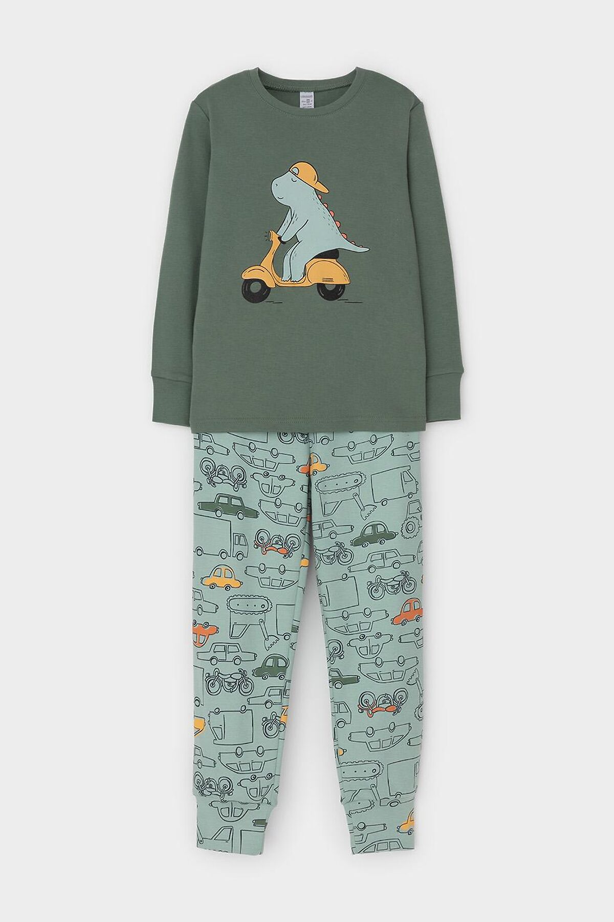 Трикотажная пижама из натурального хлопка. Джемпер с длинными втачными рукавами и брюки с эластичной резинкой в поясе. Мягкие манжеты на рукавах и по низу брюк. Оригинальная набивка и принт выполнены из стойких текстильных гипоаллергенных красителей. Изделие сохраняет цвет и форму после многократных стирок. Все трикотажные полотна производятся в соответсвии с нормами швейцарского сертификата ЭкоТекс.