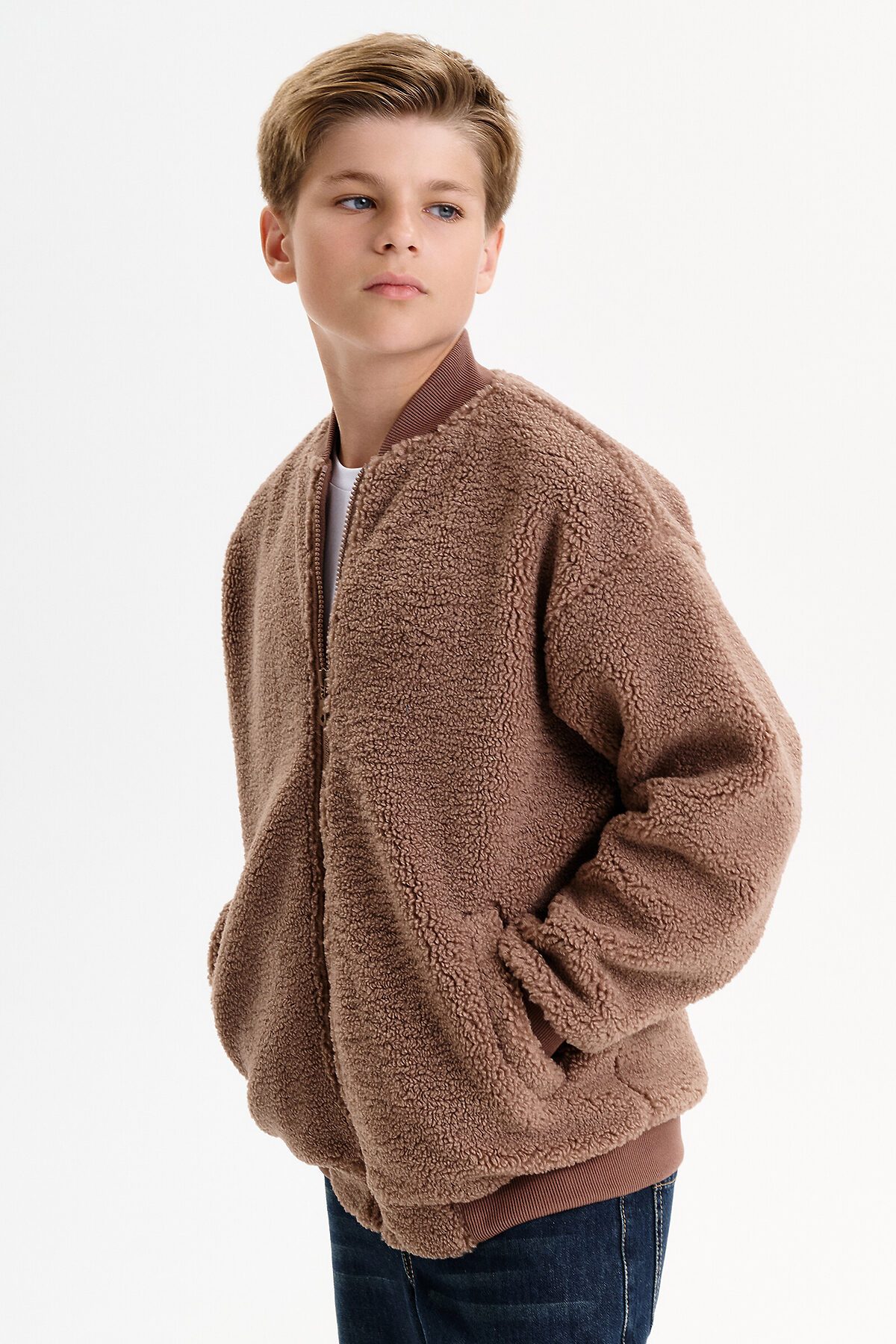 Трикотажный бомбер из бербер-флиса. Такой флис еще называют тедди, чебурашка, барашек. Мягкая кофта оверсайз застегивается на молнию. По переду два глубоких прорезных кармана. Воротник, манжеты рукавов и манжет низа выполнены из декоративной рибаны. Плюшевая толстовка из искусственного меха утеплена флисовым подкладом, благодаря чему ее можно носить в прохладную погоду весной и осенью. Универсальные цвета подойдут для повседневной носки в школу и на прогулку. Широкая размерная линейка подойдет как малышам так и подросткам.