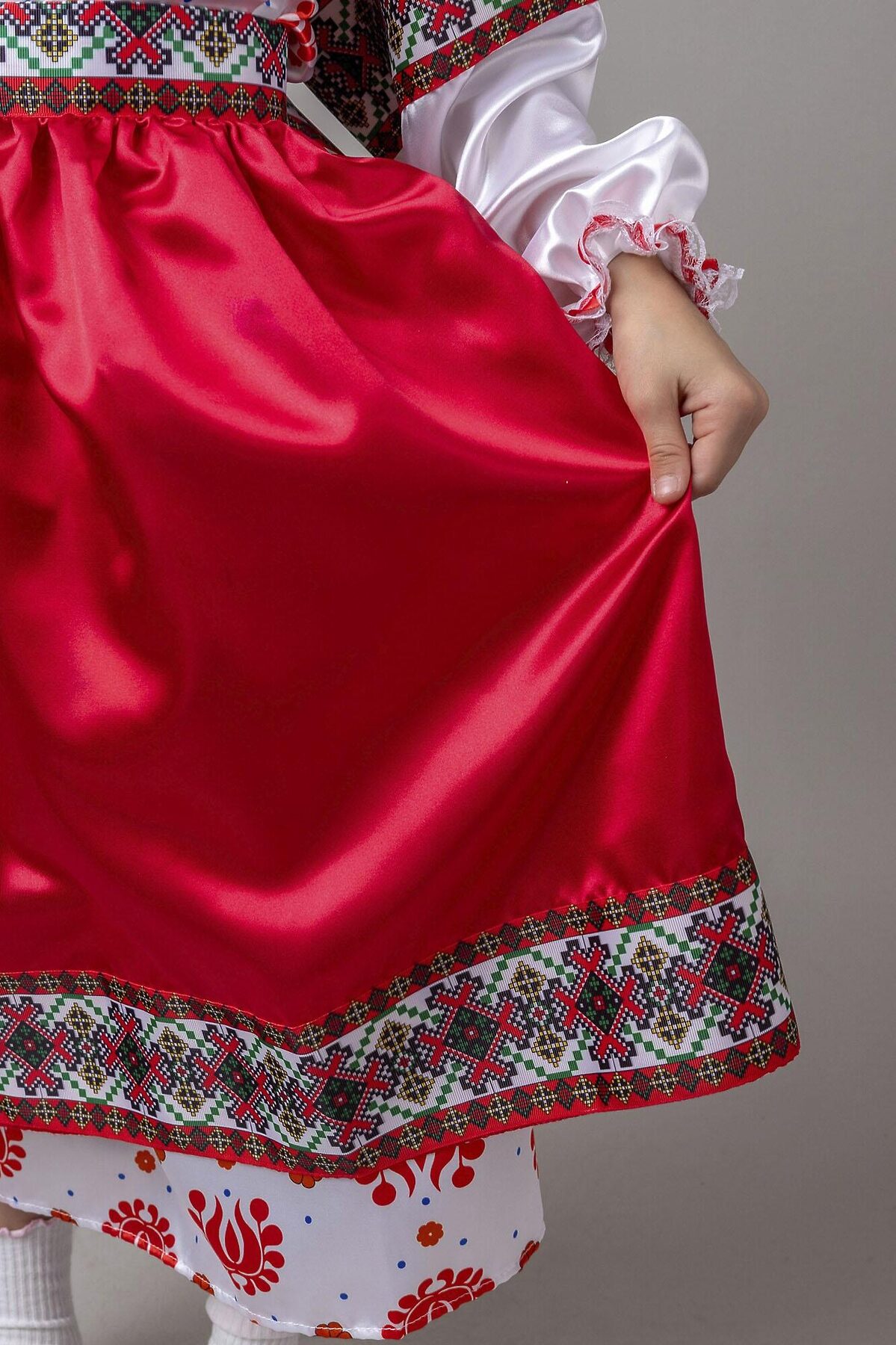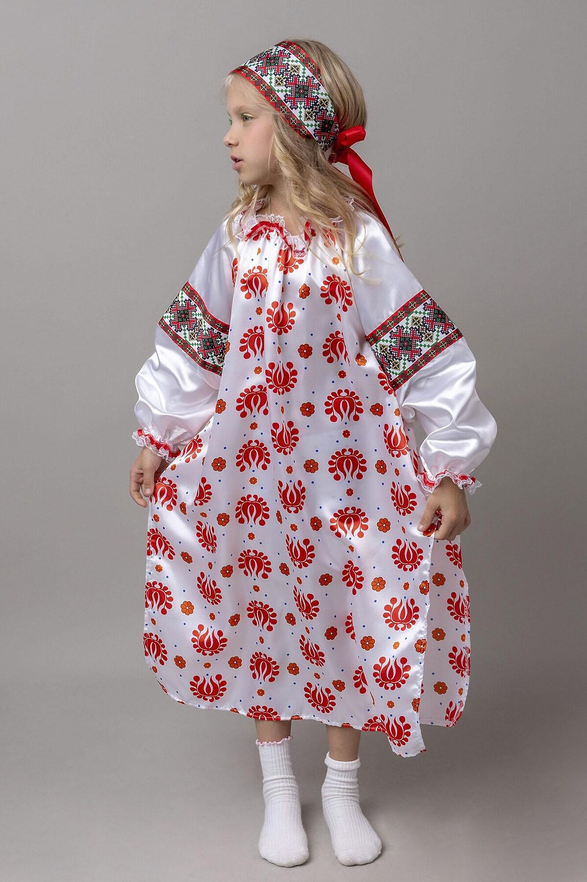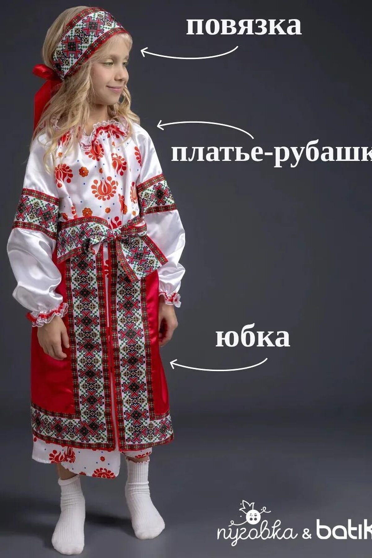 Костюм Агафья — народный образ в традиционном стиле. В комплект входит платье-рубашка, пышная юбка и повязка на голову. Отличный вариант для тематических праздников, фольклорных выступлений и школьных постановок.